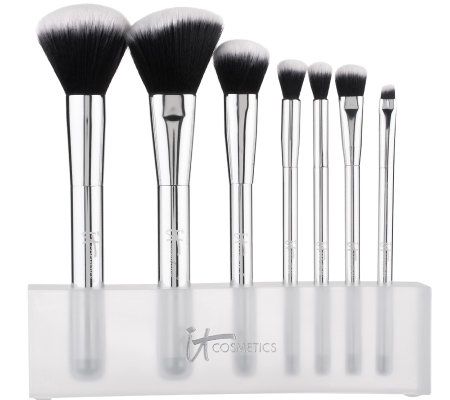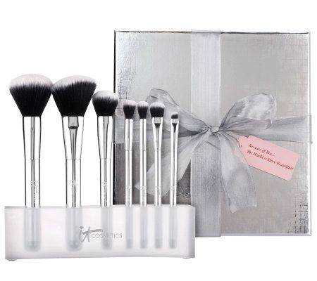 What is it: This ultimate, must-have brush wardrobe collection includes seven full-sized Luxe Blurring Micro-Airbrush brushes, plus a brush stand. All of the brushes included in this full-sized set are designed to give you a flawless airbrushed application. The extremely high brush-hair count makes for an effortless distribution of your favorite IT Cosmetics without tugging on your skin--exactly what IT girls asked for! Glamorously store and display these gorgeous brushes in the ultra-luxe brush stand. Comes complete with box, bow, and gift tag.