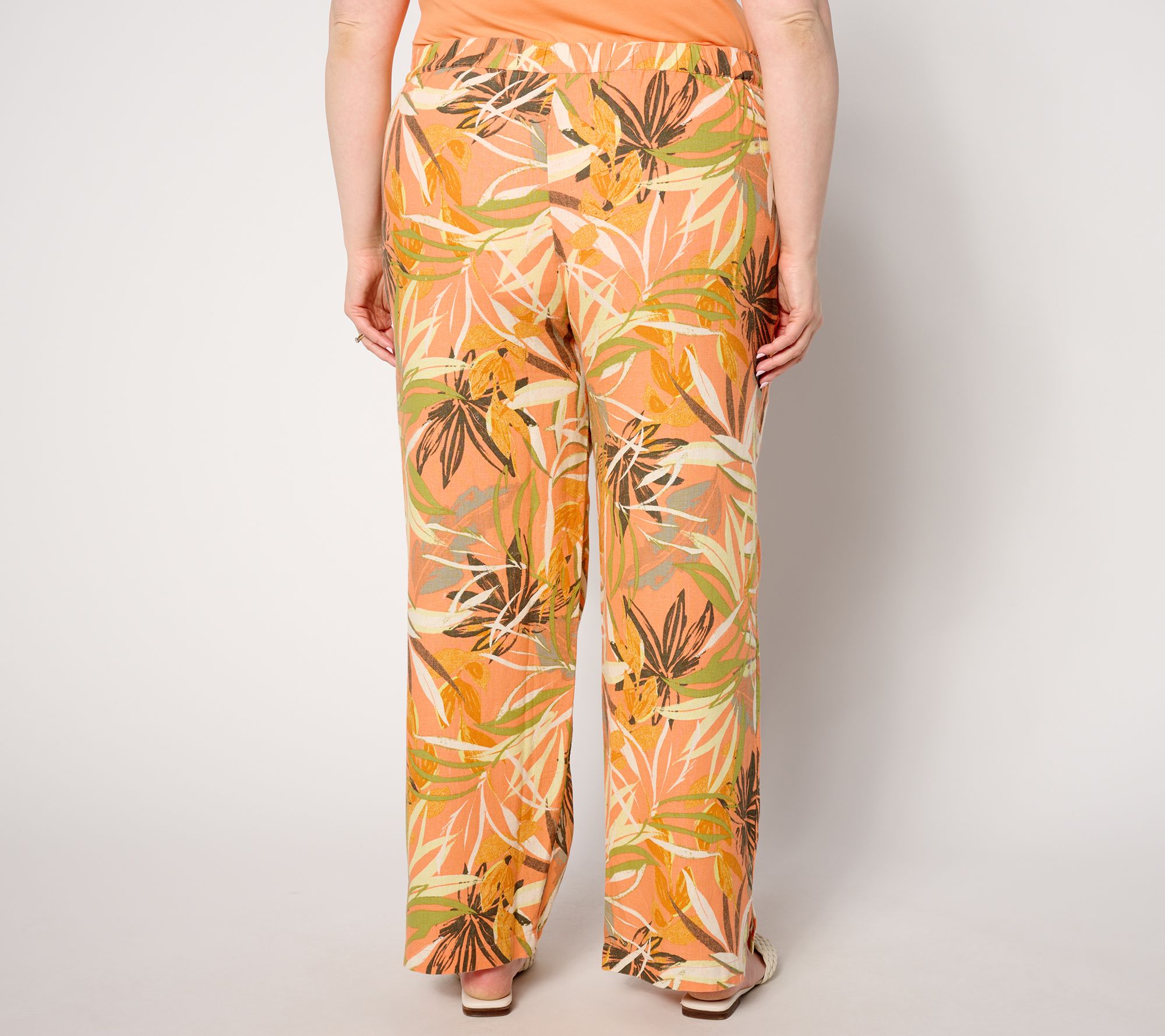 Covered in a bright and bold pattern, these statement-making pants form the foundation of a wonderful warm-weather look. The lightweight linen-blend bottoms gracefully drape over the lower half of the body with a laid-back, relaxed and flowy silhouette. From Denim & Co.® Fashions.