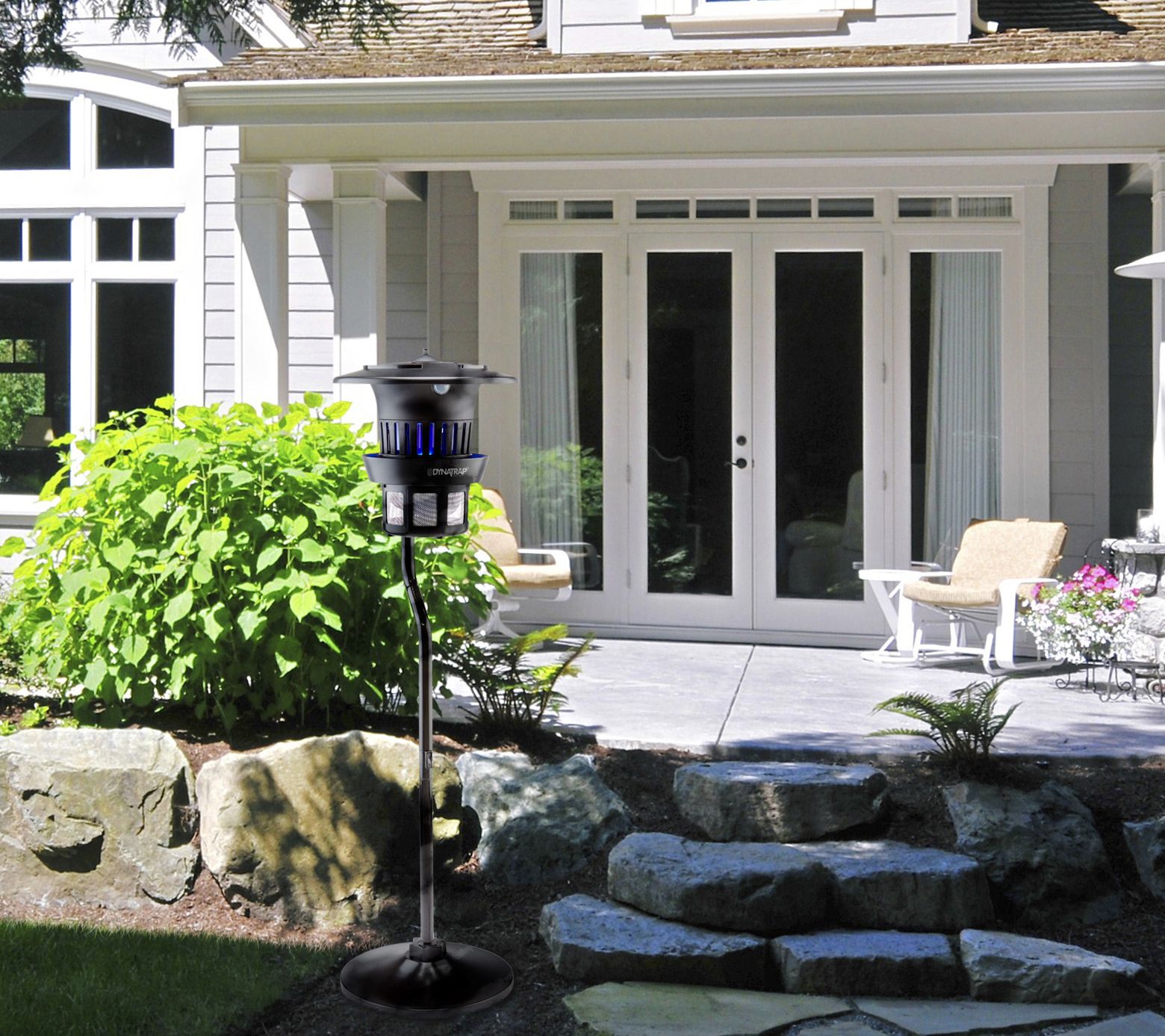 Keep the bugs at bay with the DynaTrap insect trap. Its whisper-quiet design helps capture flying pests with a combination of UV light, carbon dioxide, and a built-in fan.