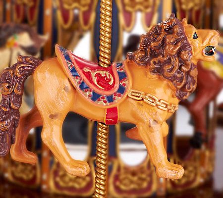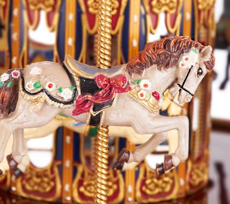A piece to celebrate during the holiday season--and year-round. This 2012 anniversary carousel is beautifully detailed and crafted, right down to the intricately handpainted figures on the wooden base and the flags that move up and down. Enjoy a musical light show courtesy of the LED lights and the 40 festive tunes--20 Christmas songs and 20 year-round favorites. From Mr. Christmas.