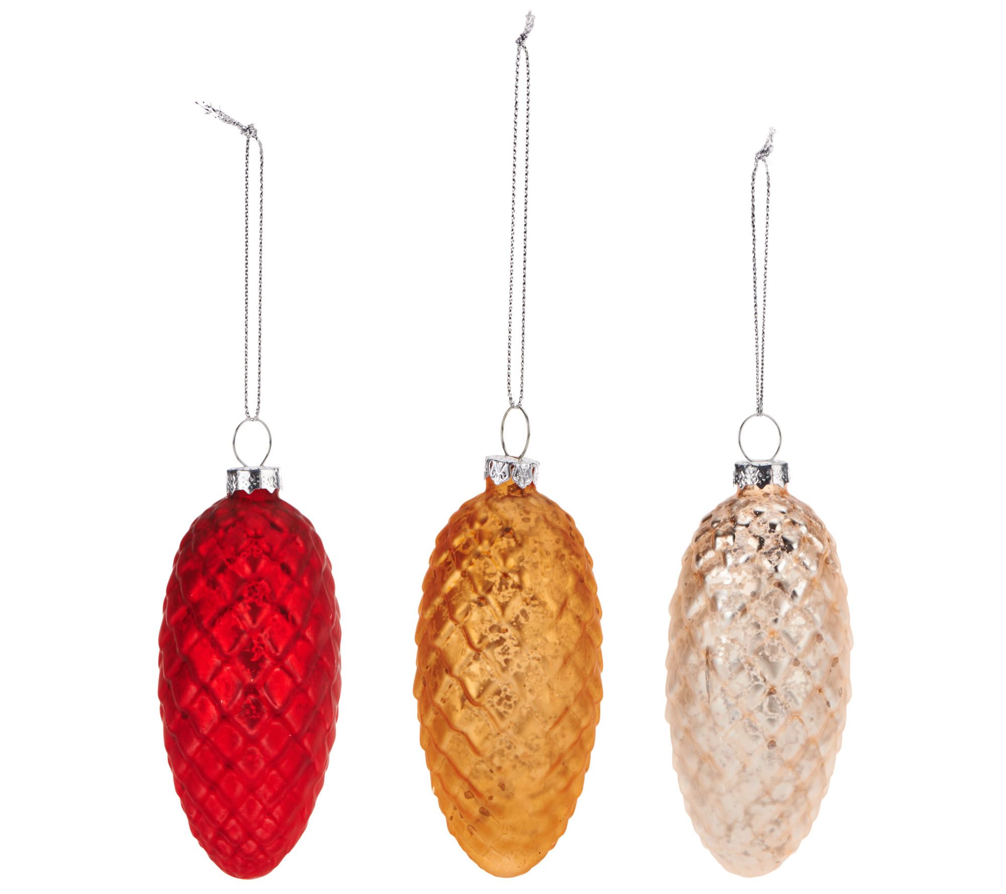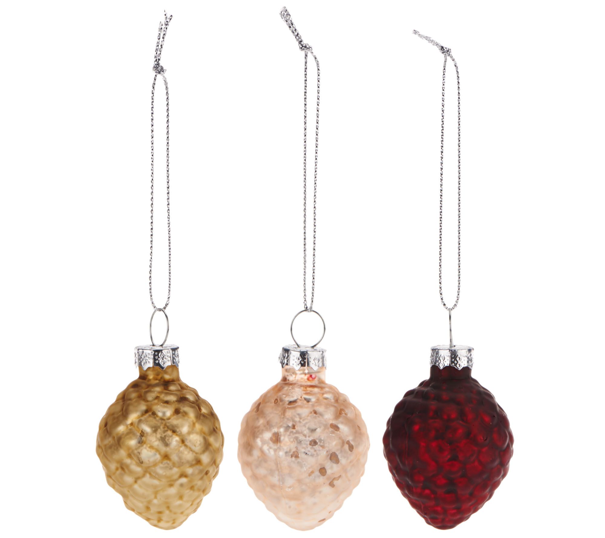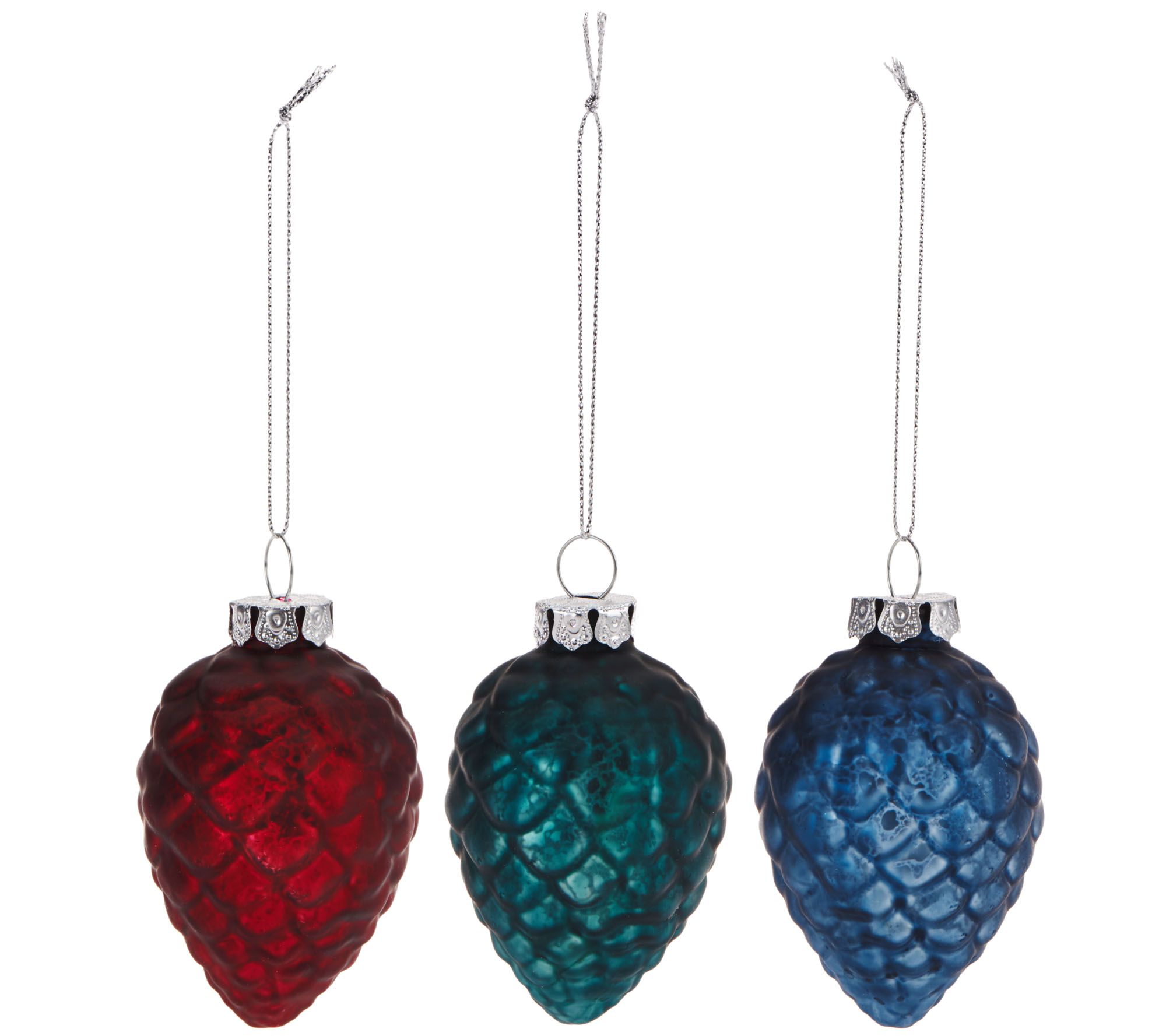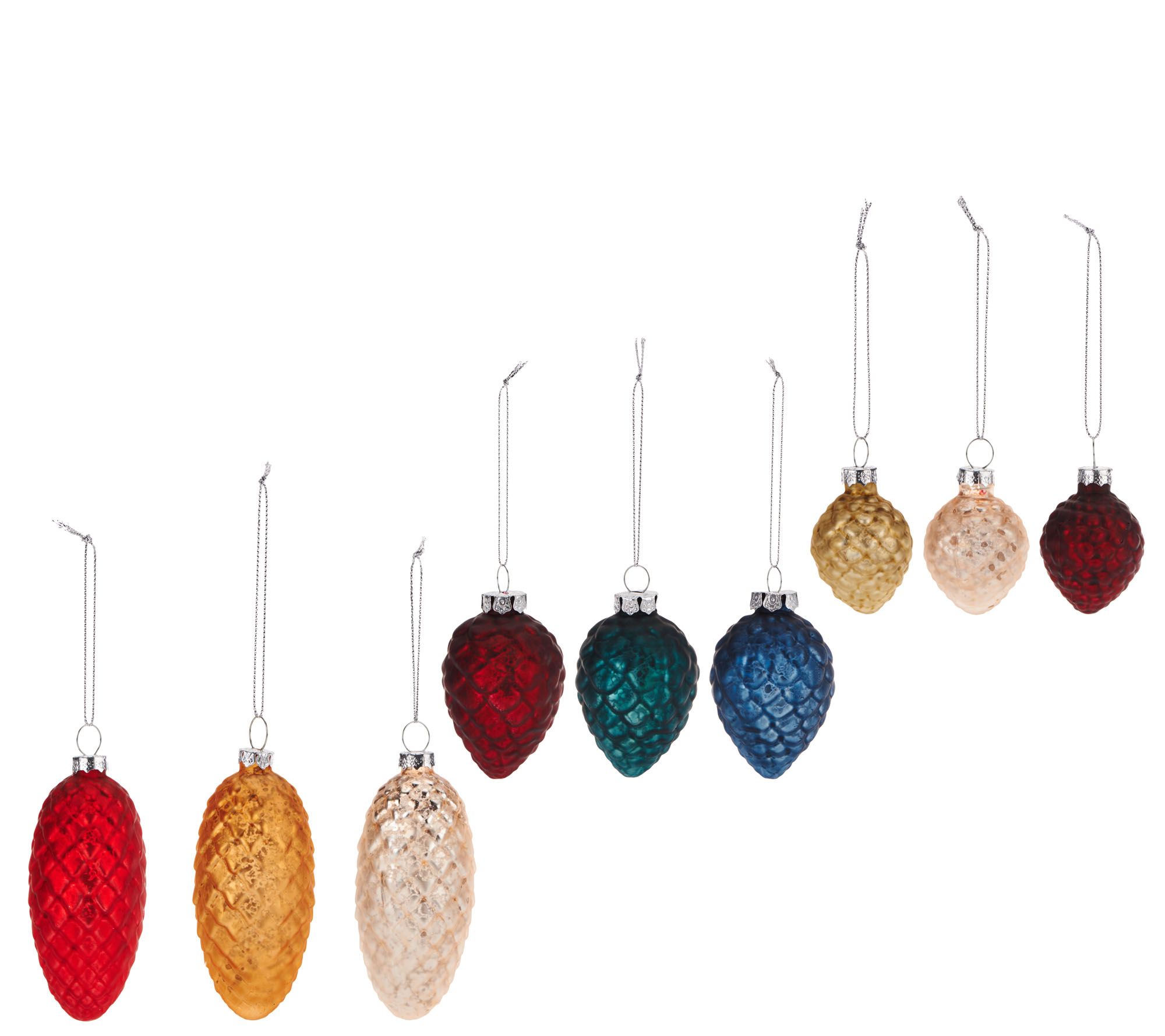 Have yourself a retro kind of Christmas with these vintage-style pinecone ornaments from ED On Air by Ellen DeGeneres. The antiqued finish imparts an heirloom-quality charm to the nine ornaments, which feature three different sizes and vibrant colors. From ED On Air by Ellen DeGeneres.