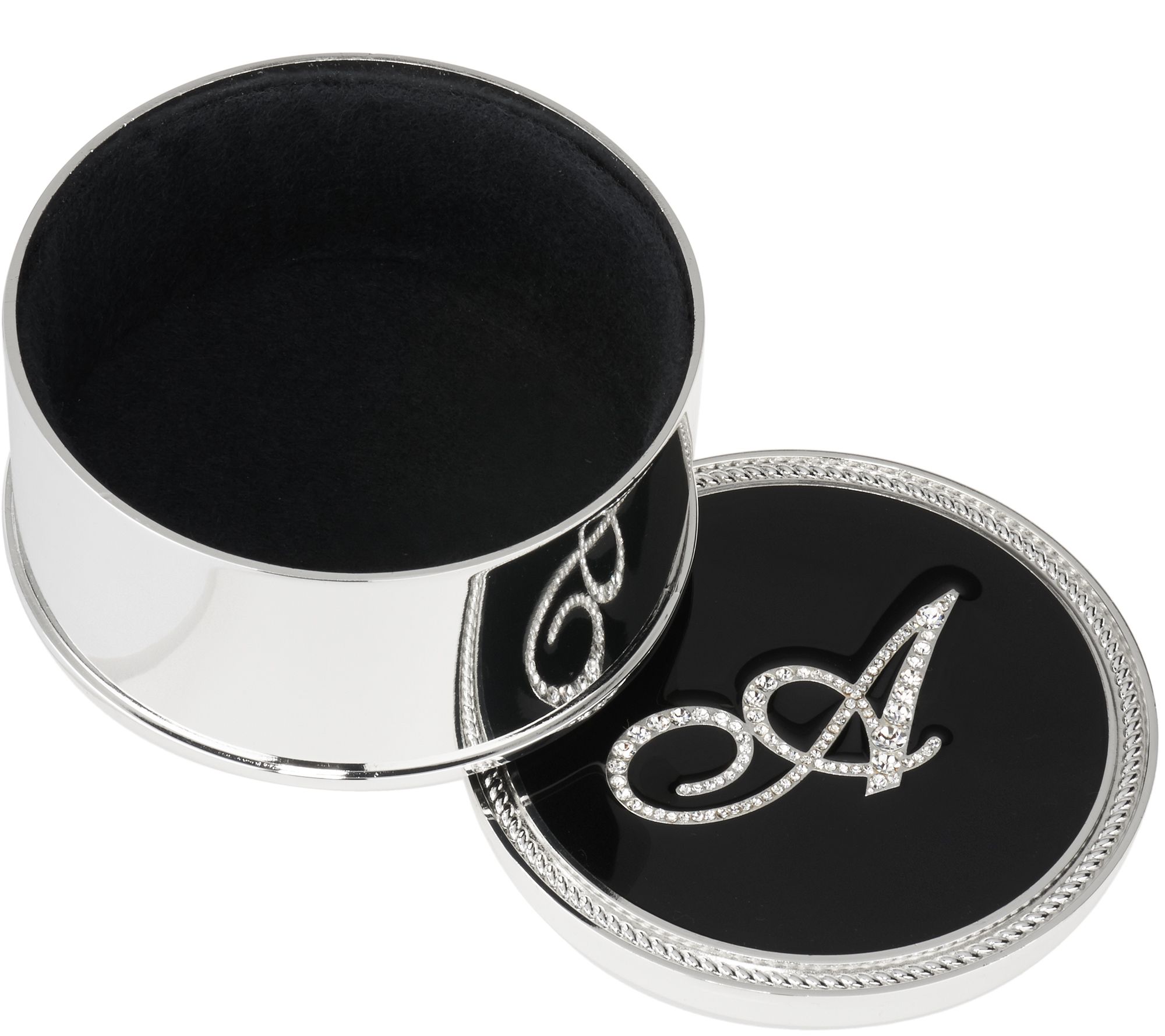 A personal touch for personal belongings. Lori Greiner brings you this beautiful jewelry box, created in a circular design with rope-design trim around the lid. Personalize the box with a crystal initial on top--for you or for someone special. Inside the box, Silver Safekeeper(R) anti-tarnish lining helps keep jewelry tarnish-free for up to 25 to 40 years. From Lori Greiner.