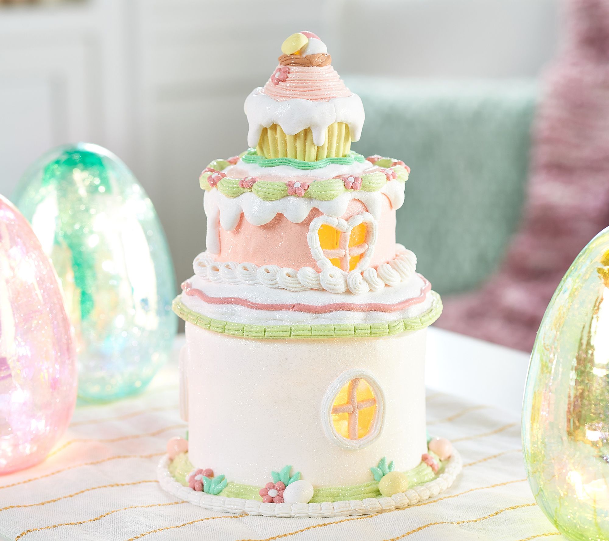 10" Illuminated Easter Layer Cake Cottage by Valerie
