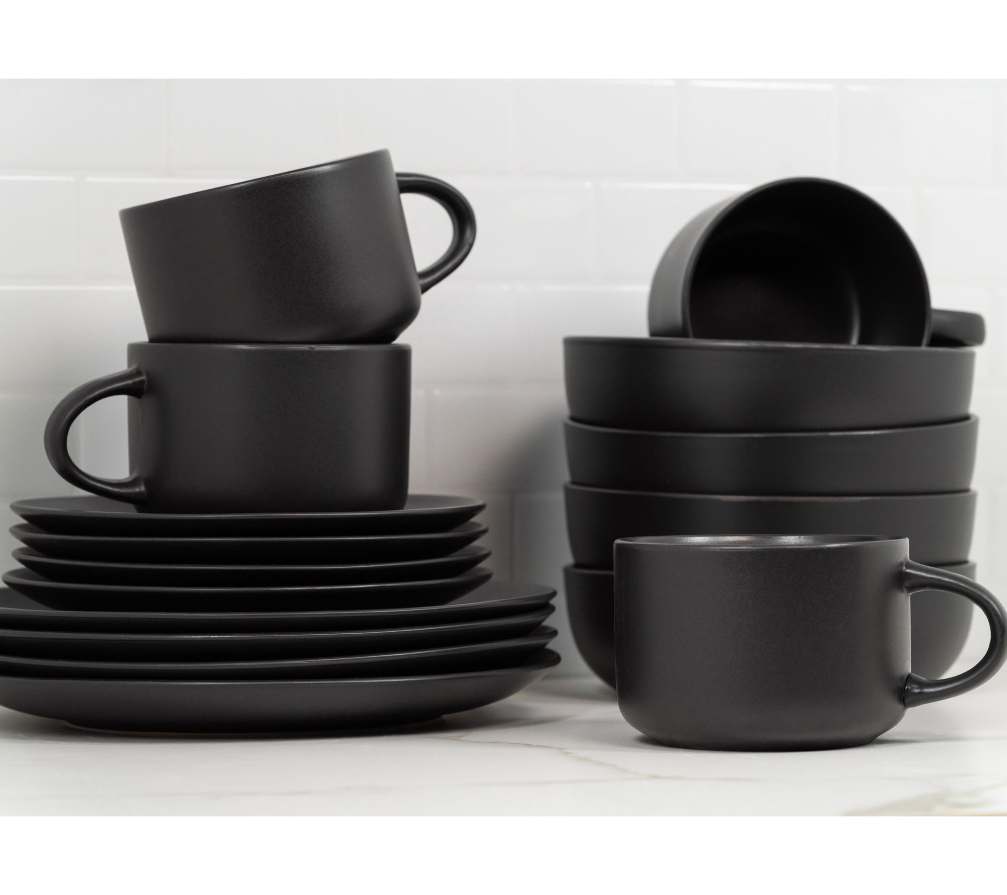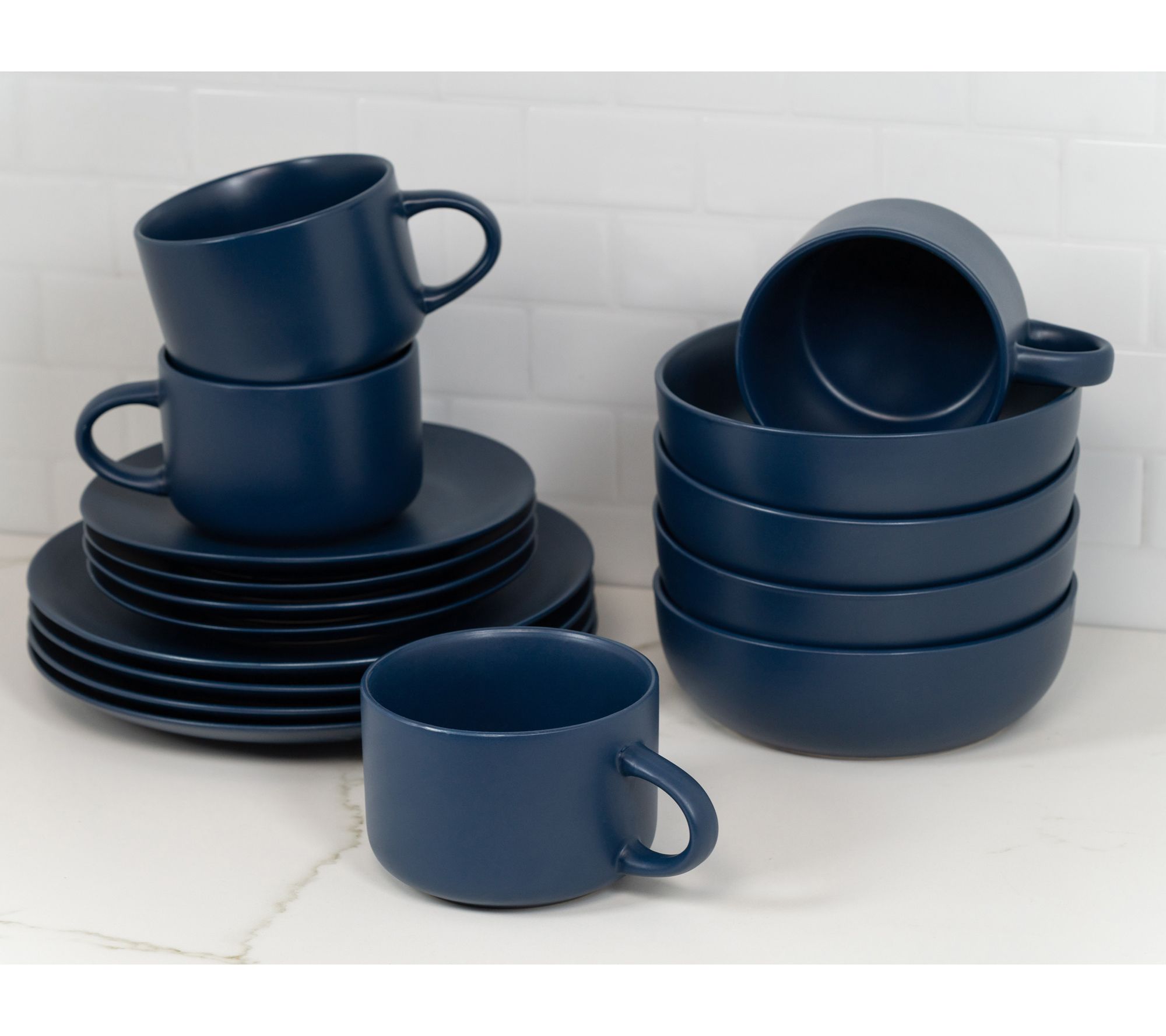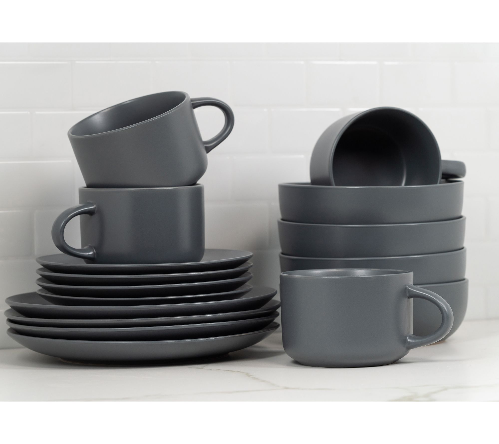 • Includes four 10.5" dinner plates, four 8.25" salad plates, four 32-oz bowls, and four 22-oz oversized mugs