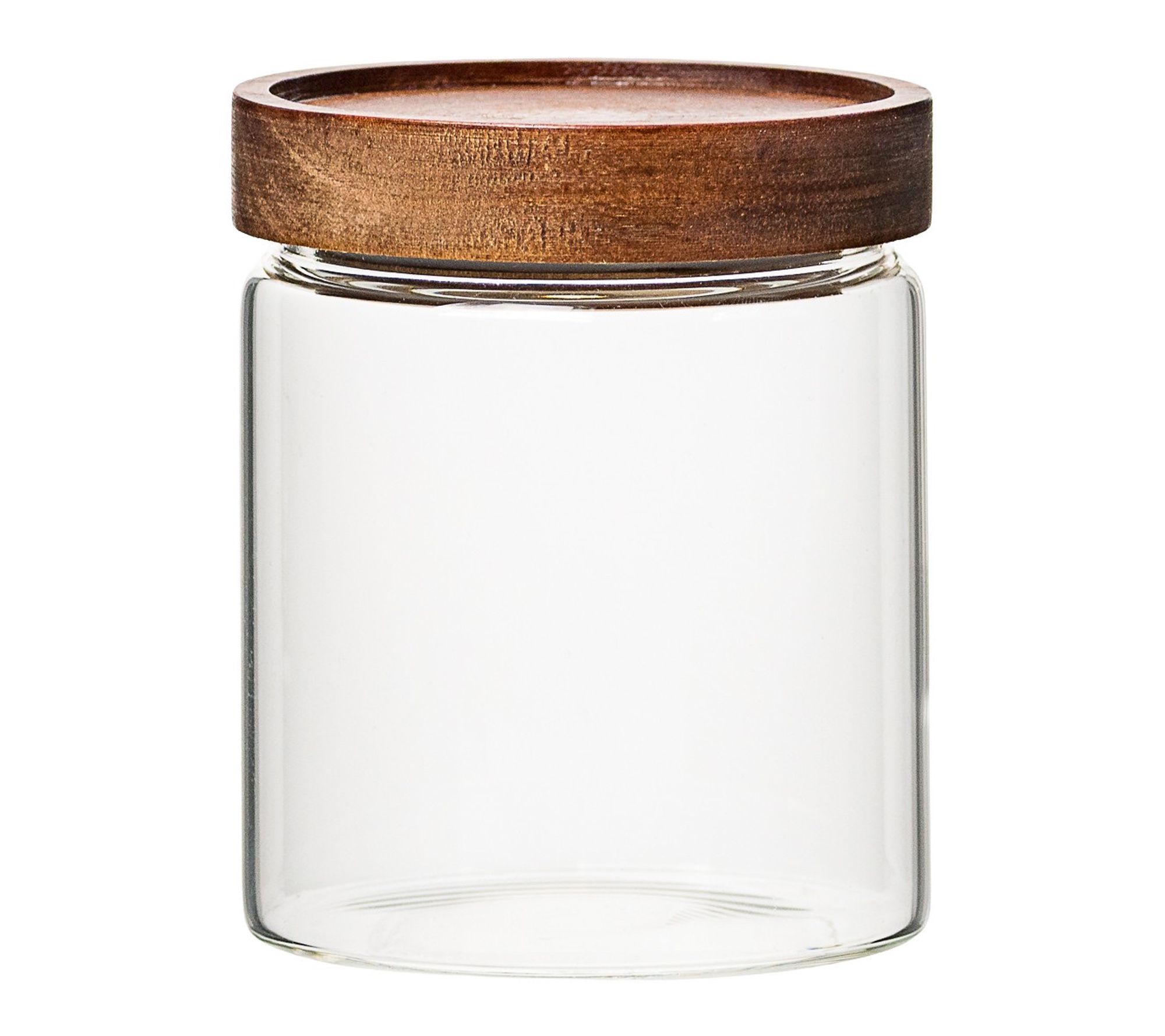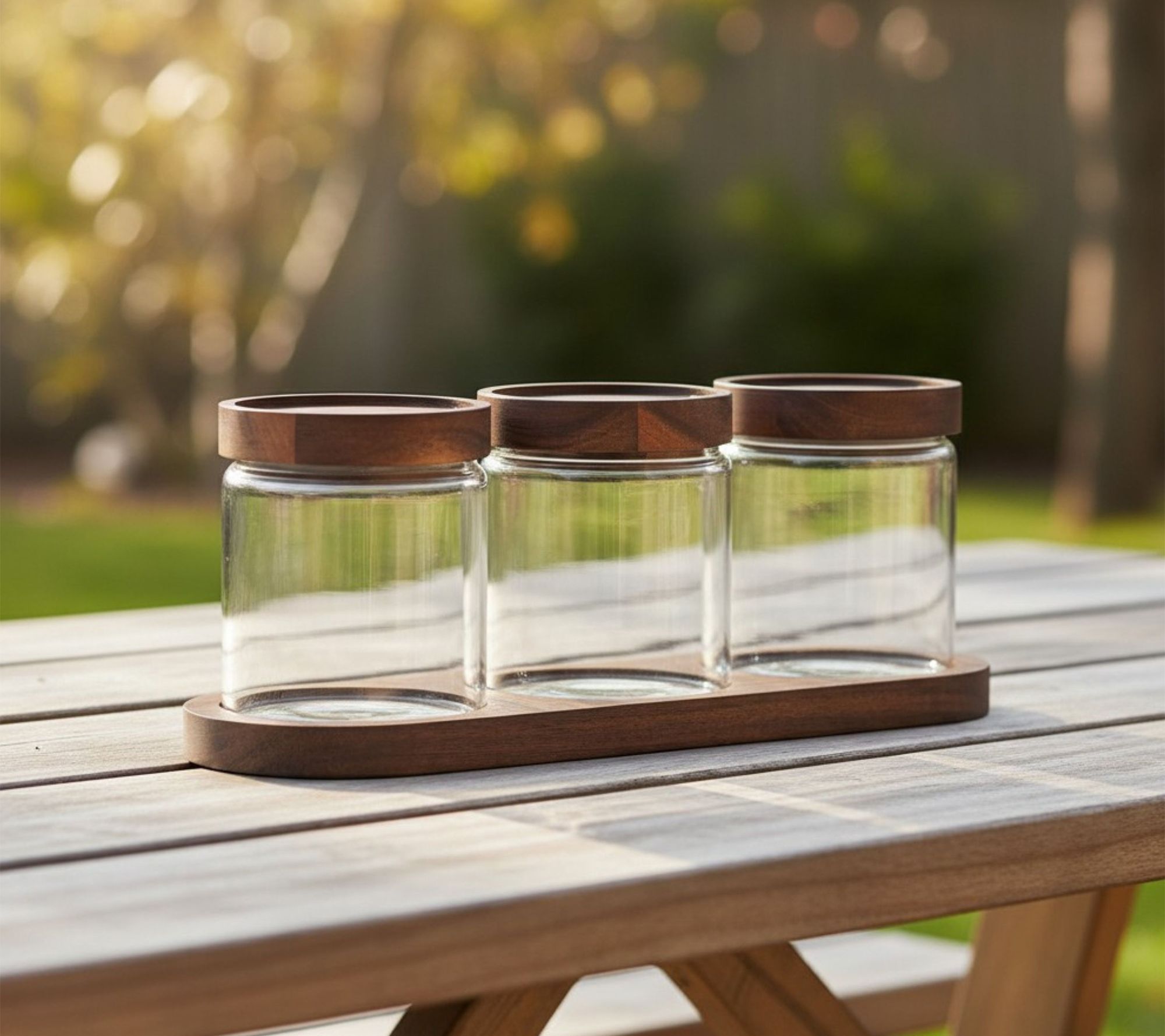 • Includes three 11.7-fl oz glass canisters with wooden lids and one 11.4"L storage tray
