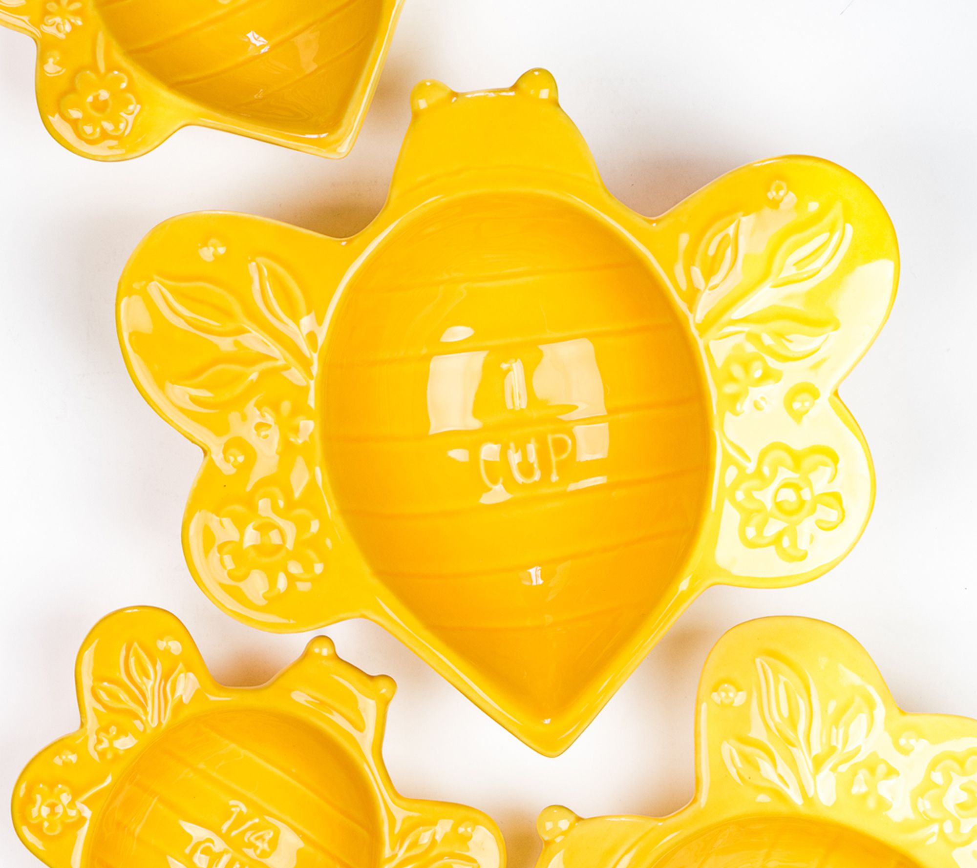 Create a little buzz every time you bake with these bee-shaped measuring cups, designed to sprinkle whimsy into your kitchen routine. Each cup is molded with playful details and vibrant color, making every scoop -- from flour to sugar -- feel like a cheerful occasion while you prep recipes with precision. From 10 Strawberry Street.