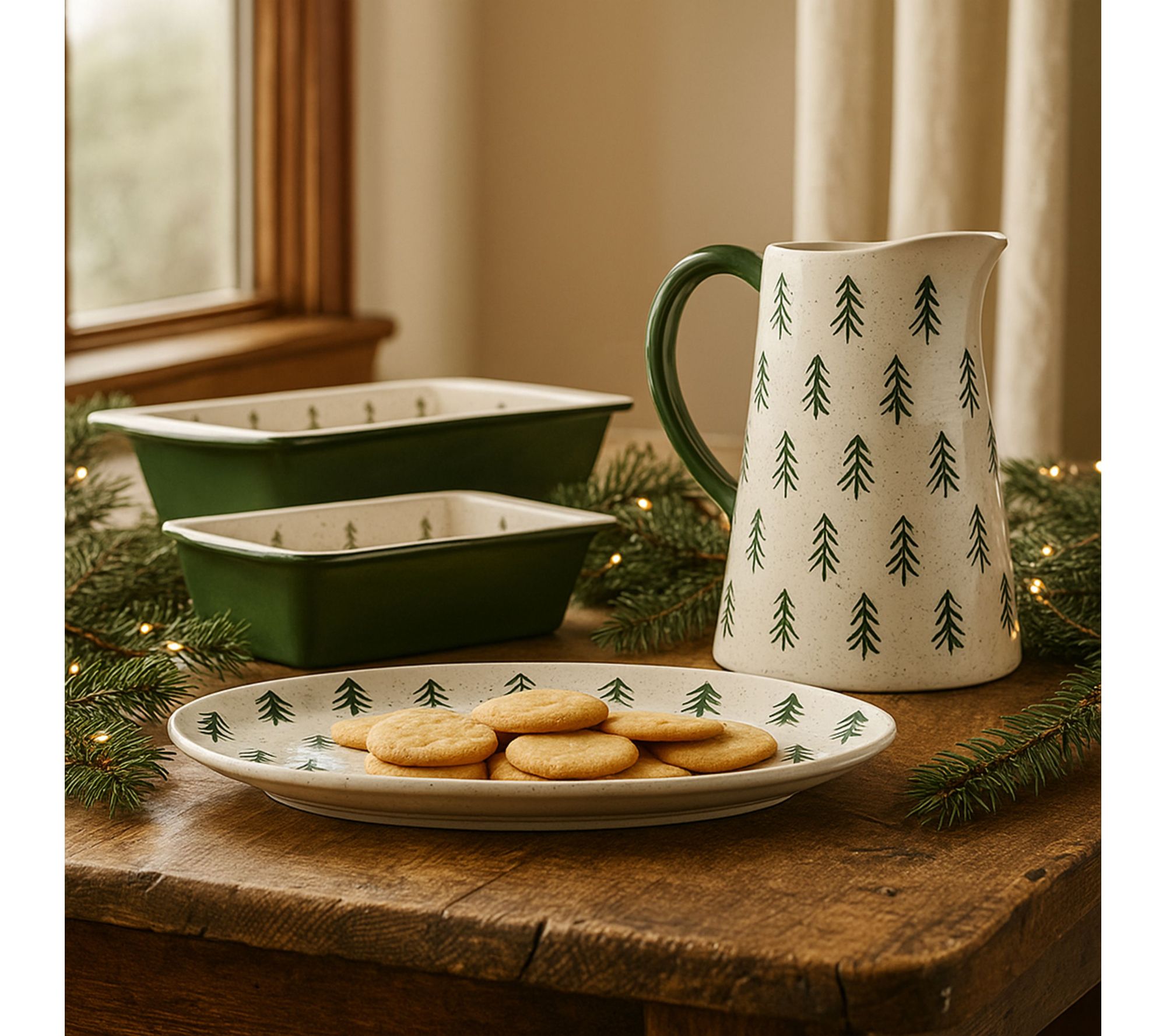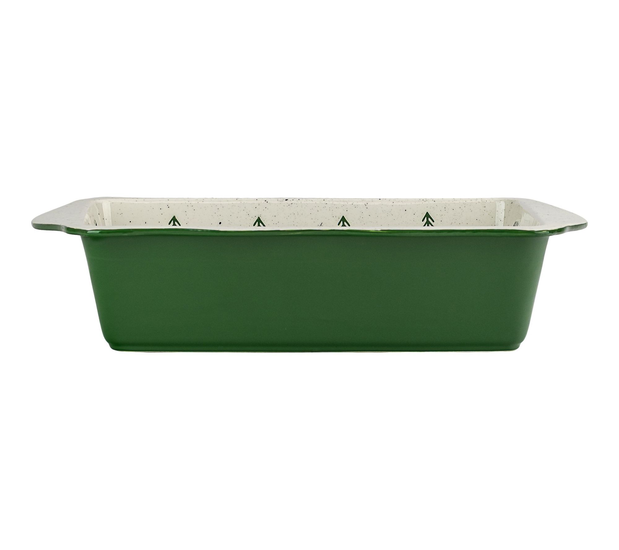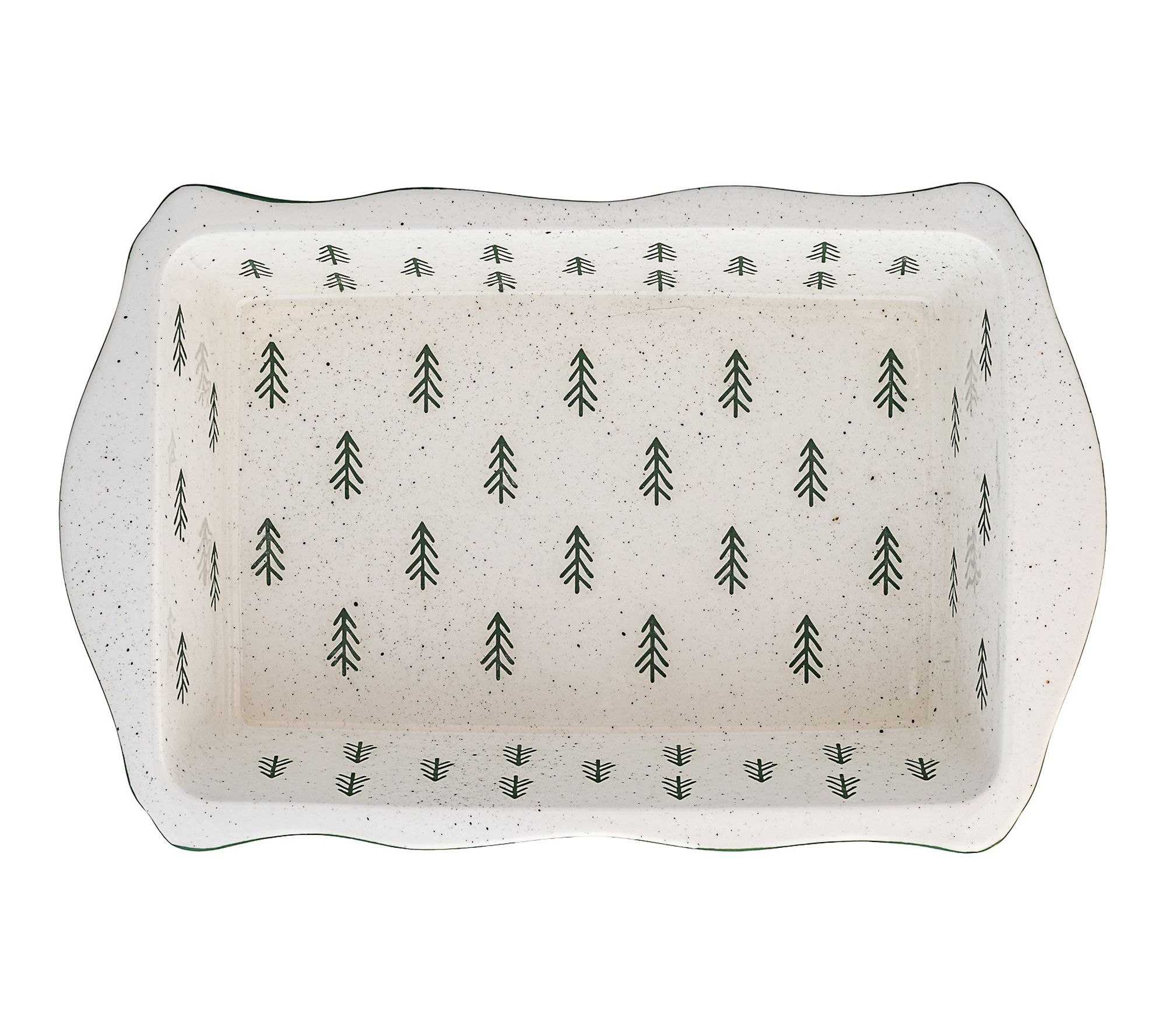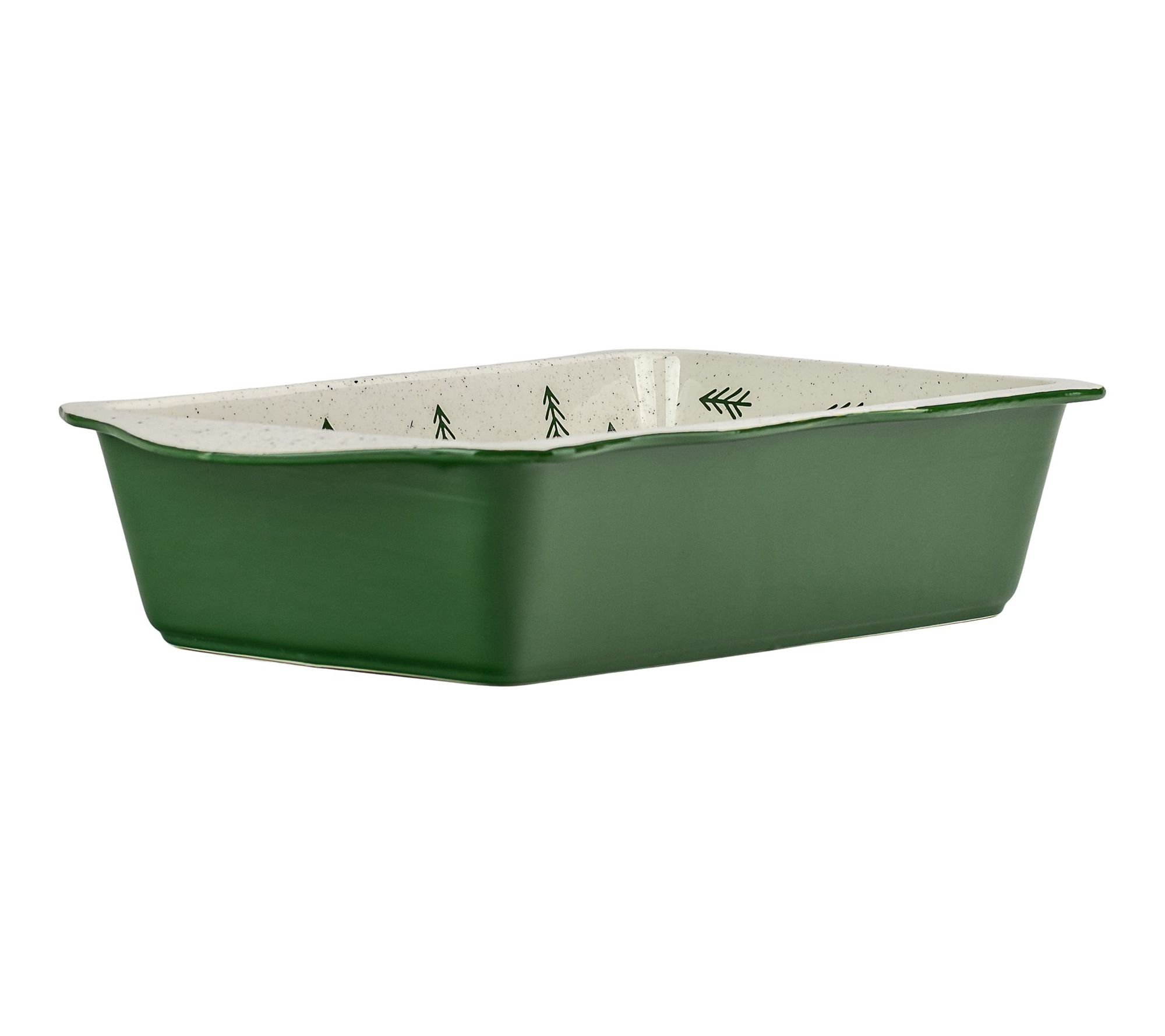 Serve up holiday magic with this festive rectangle baker, adorned with whimsical green Christmas trees and a matching green exterior that instantly brightens any gathering. Perfect for baking and presenting seasonal favorites, its spacious design lets you create generous casseroles or cakes and seamlessly transition from oven to table. From 10 Strawberry Street.