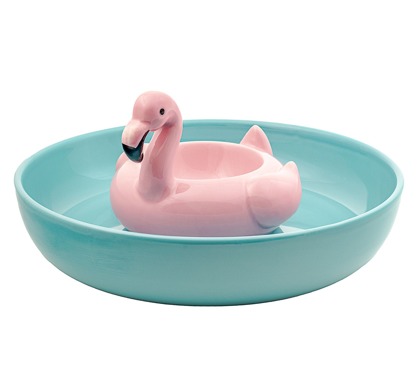 Get ready to wow your guests with this whimsical flamingo pool float chip and dip platter. Perfect for summer BBQs, parties, or any gathering, this vibrant blue platter features a playful pink flamingo float in the center, creating a fun and practical centerpiece for your snacks. It's spacious enough for chips, veggies, crackers, and dips, making entertaining a breeze. From 10 Strawberry Street.