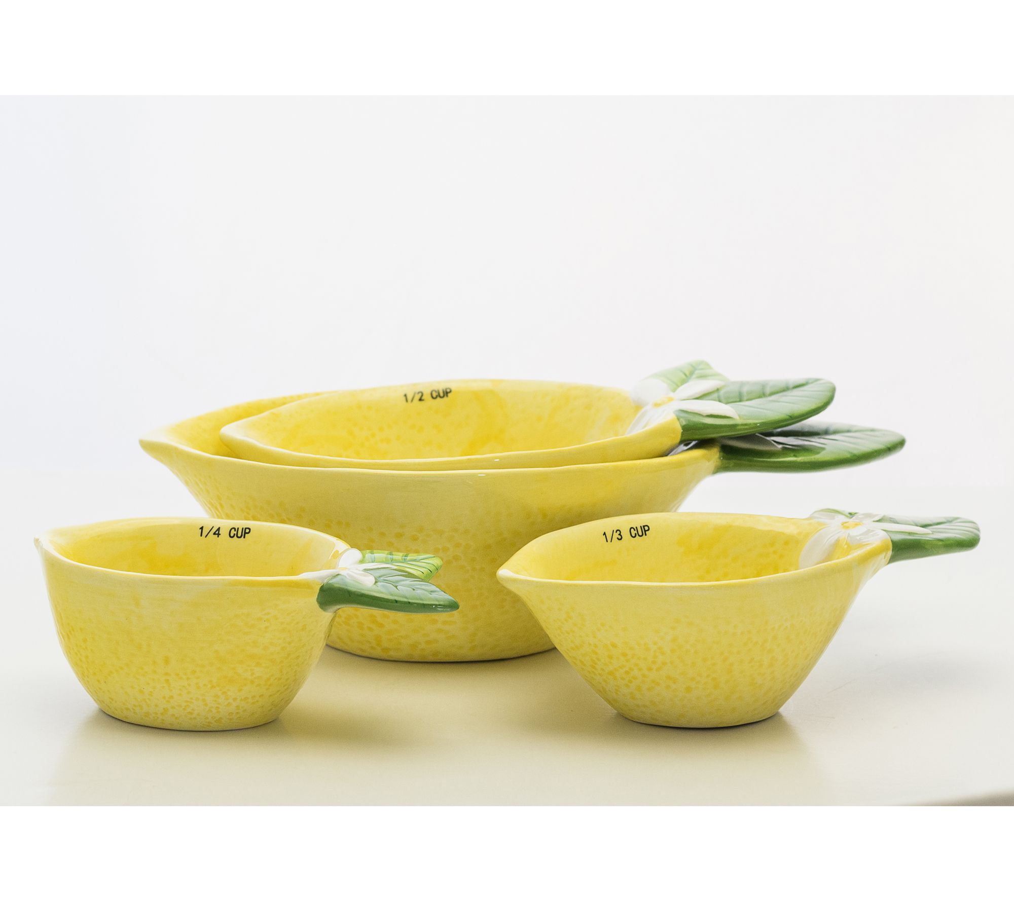 Add a fresh and cheerful touch to your baking with these fruit-inspired measuring cups. Designed to resemble vibrant fruit shapes, they offer both functionality and decorative charm, creating a fun aesthetic in your kitchen. Ideal for bakers of all ages, they make measuring ingredients a delightful task. From 10 Strawberry Street.