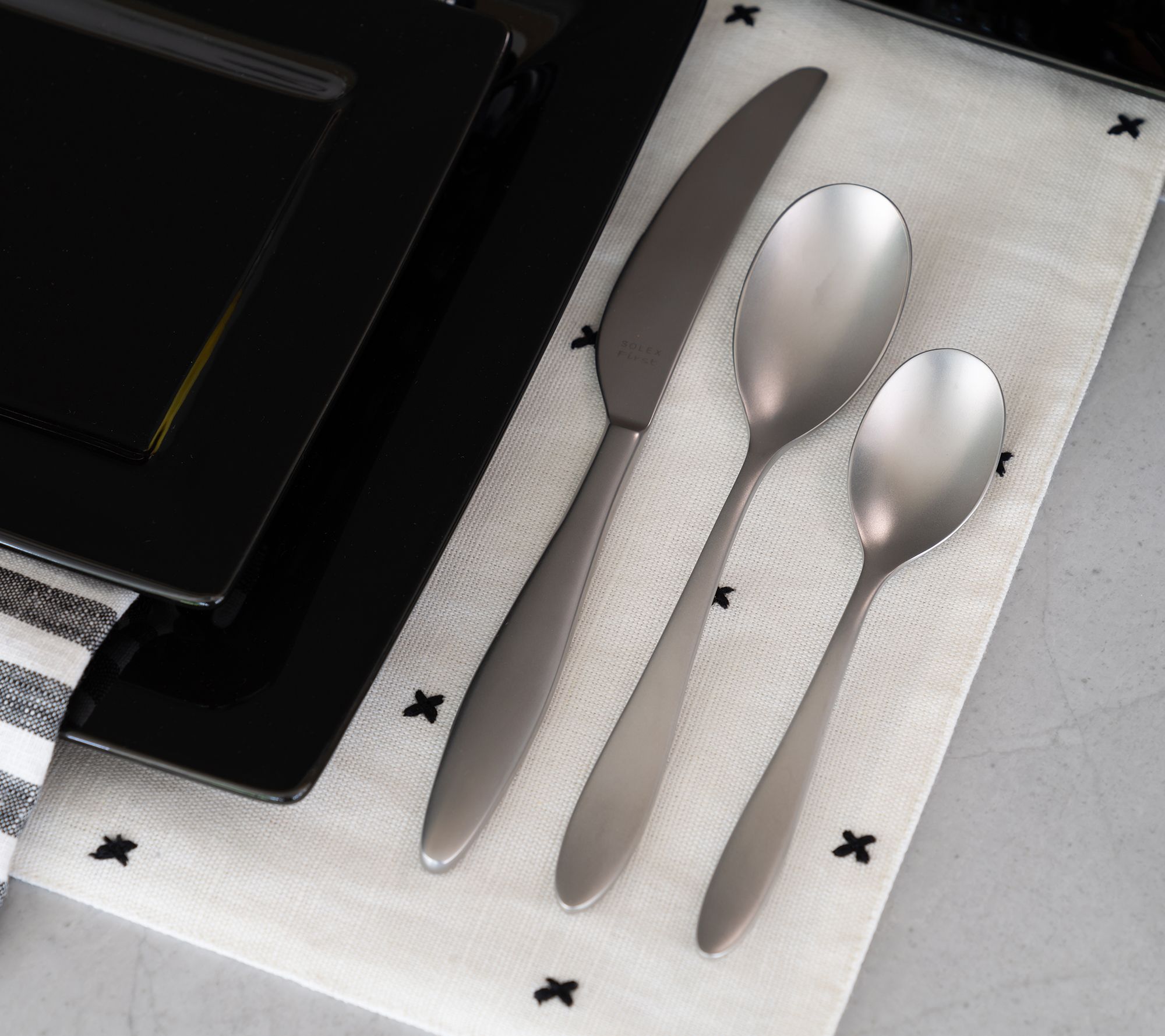 A modern and versatile addition to your dining room table, this dinnerware set has the essential components necessary for both sit down meals and casual entertaining. From 10 Strawberry Street.