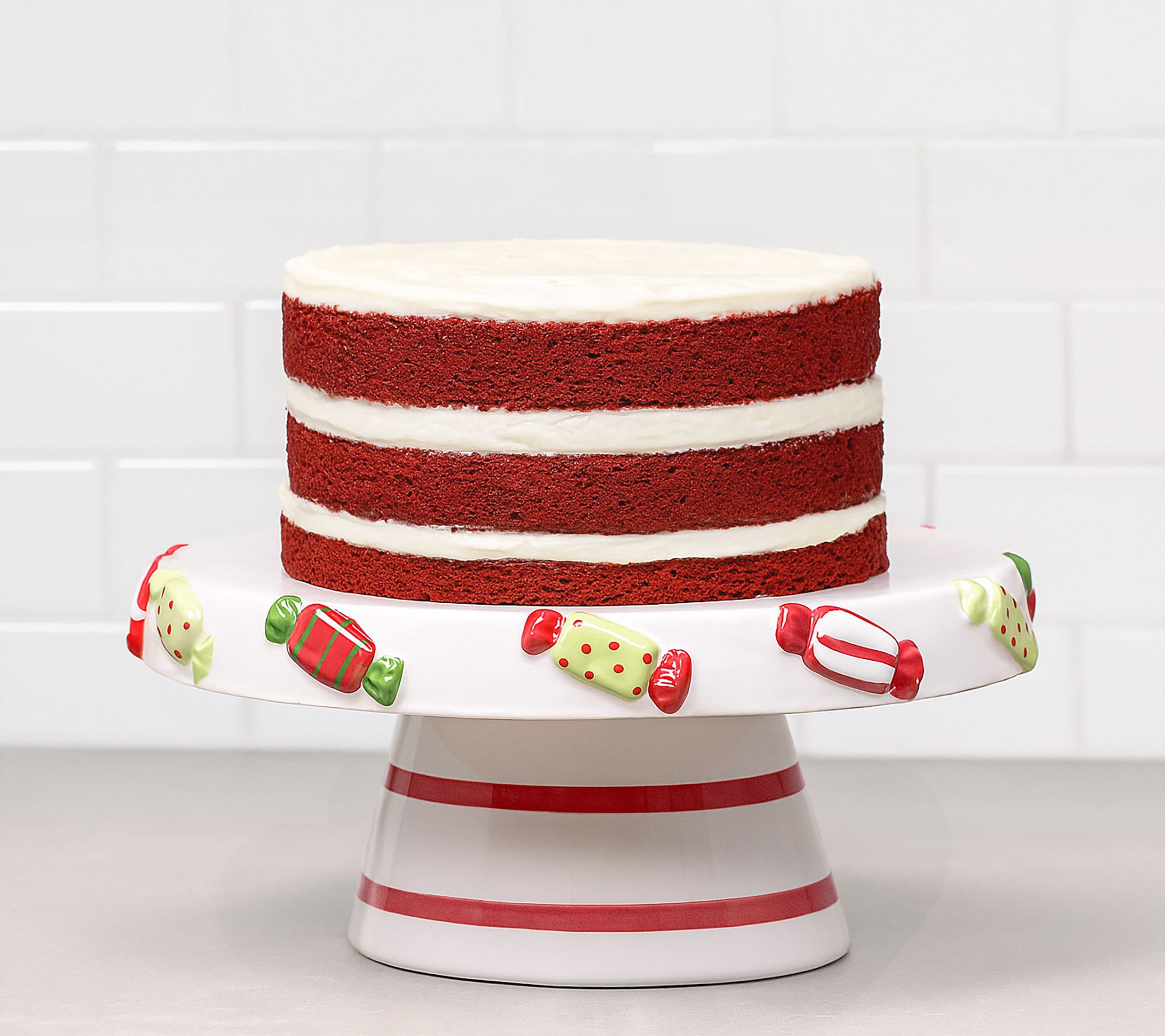 Whether you're sharing sweet treats at a holiday party or enjoying dessert with family, this ceramic cake plate brings festive cheer to your table. The playful peppermint candy print around the edge makes every slice feel special and adds a joyful accent to seasonal gatherings. From 10 Strawberry Street.