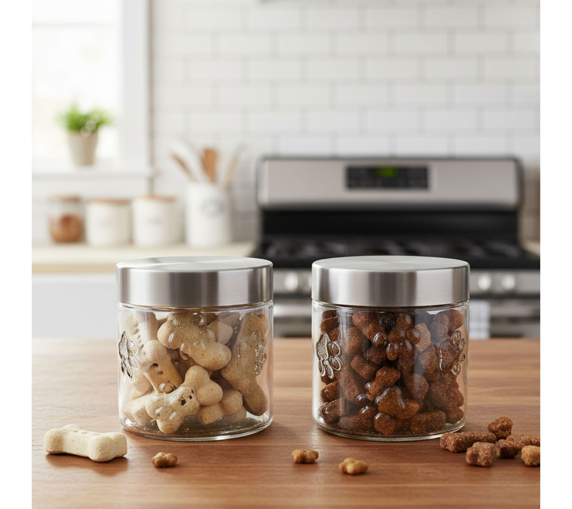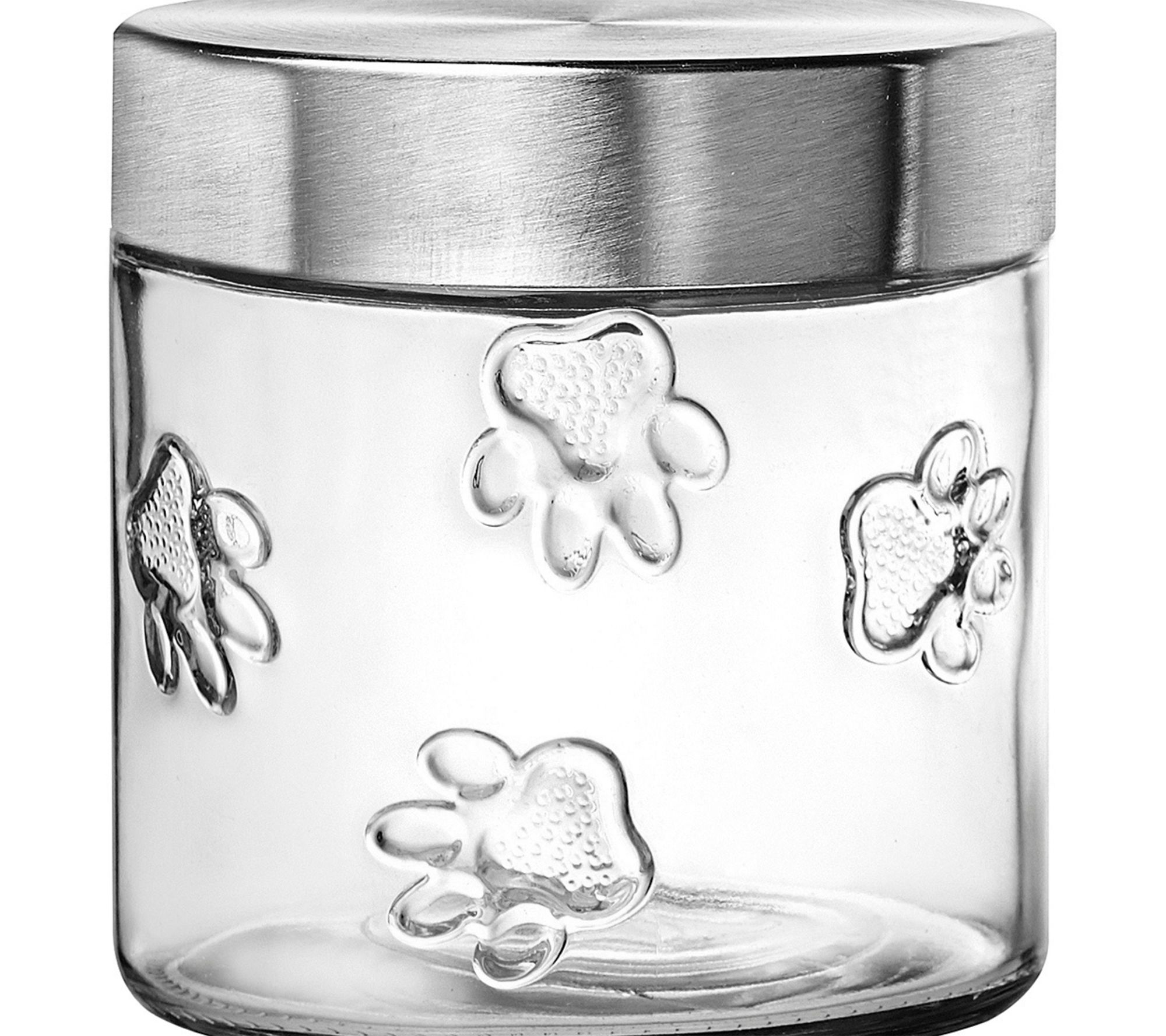 Treat time becomes even more special with this set of two glass storage canisters, each topped with a stainless steel screw lid to lock in freshness. The charming pawprint reliefs add a playful touch, making it easy to spot your pet’s favorite snacks whether they’re stored in the kitchen, family room, or study. From 10 Strawberry Street.