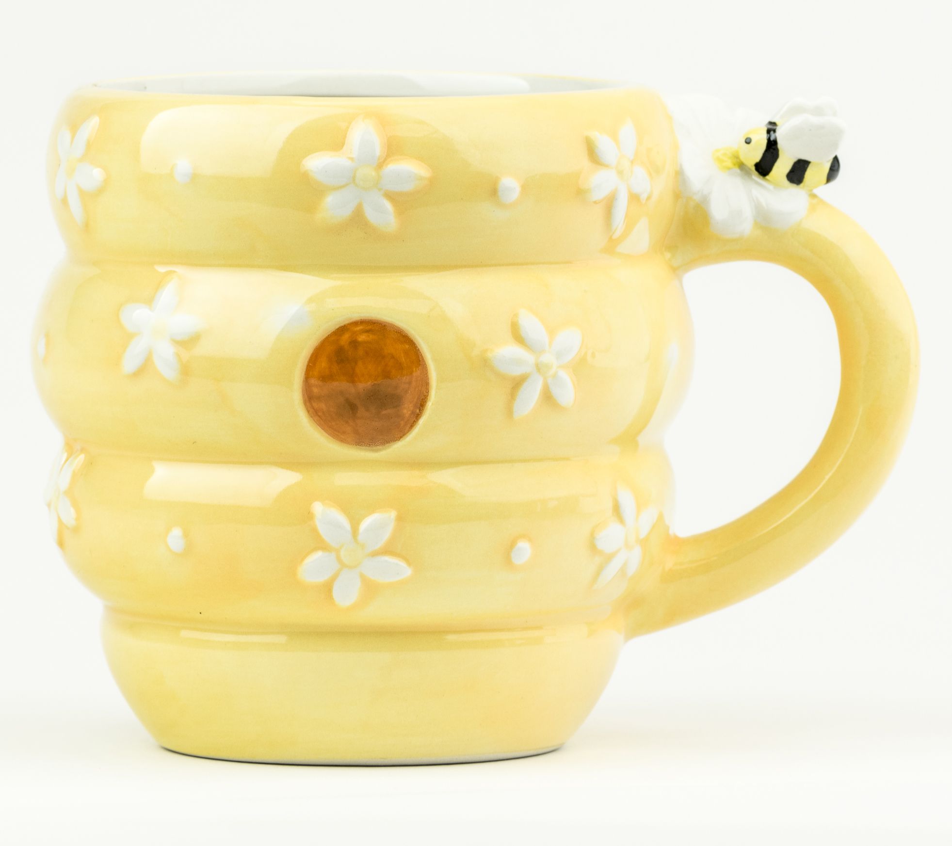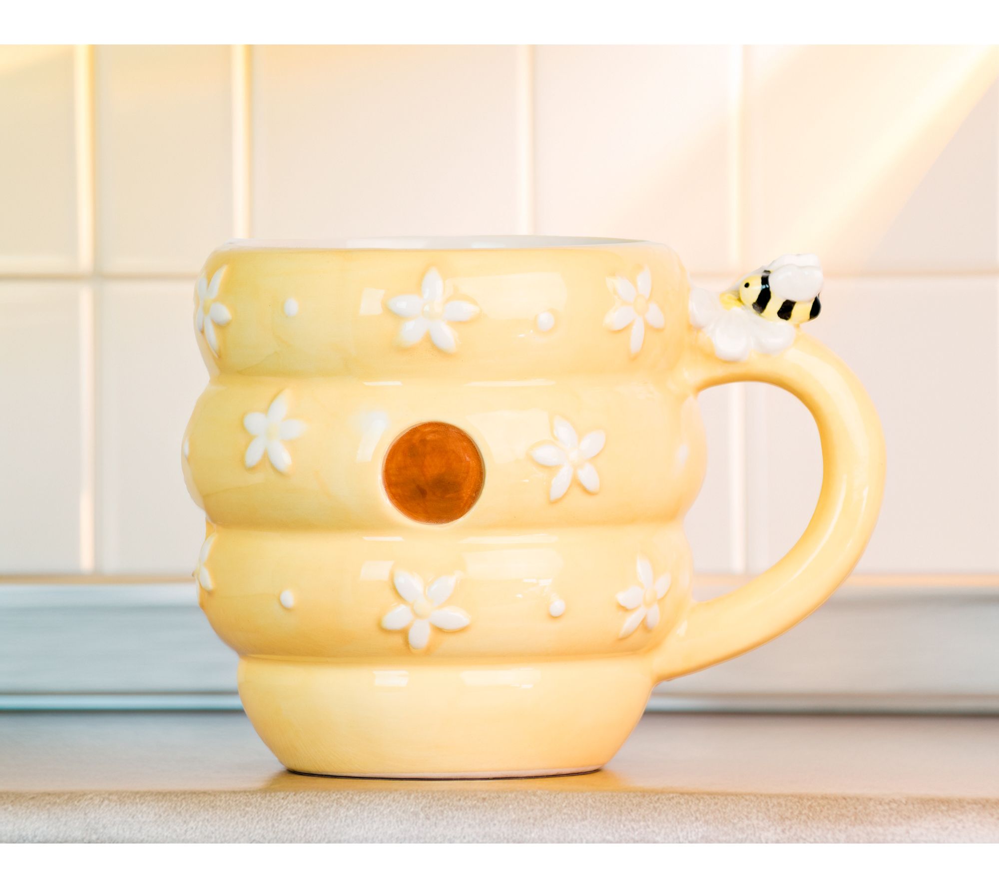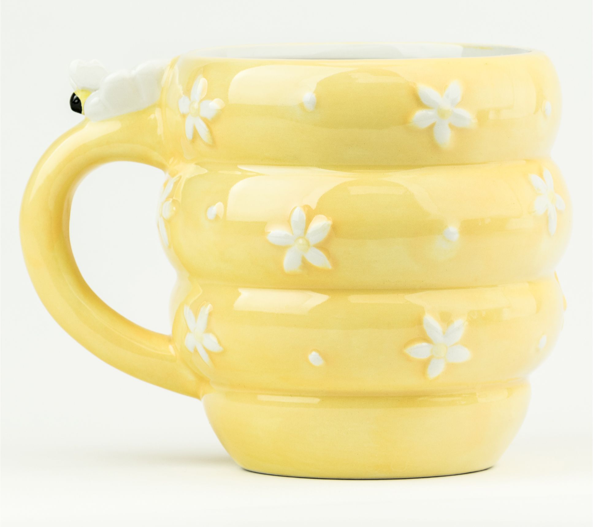 Morning coffee gets a playful twist when these figural mugs brighten your table, each shaped like a charming beehive with daisy accents and a buzzing 3D bee perched on the handle. Whether you're sharing a cozy breakfast or winding down with hot cocoa, these generously sized cups bring a little sunshine to your daily sip. From 10 Strawberry Street.