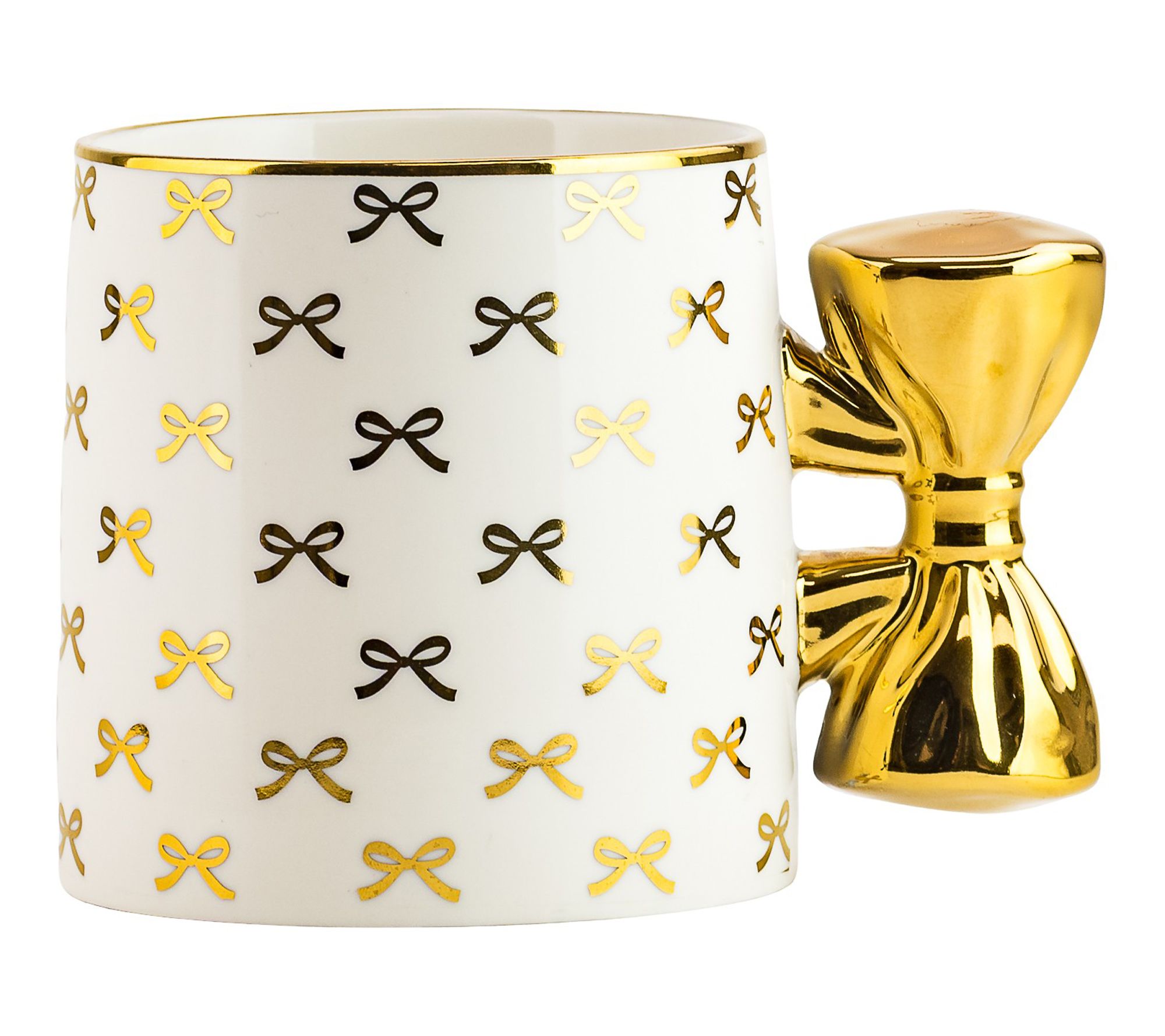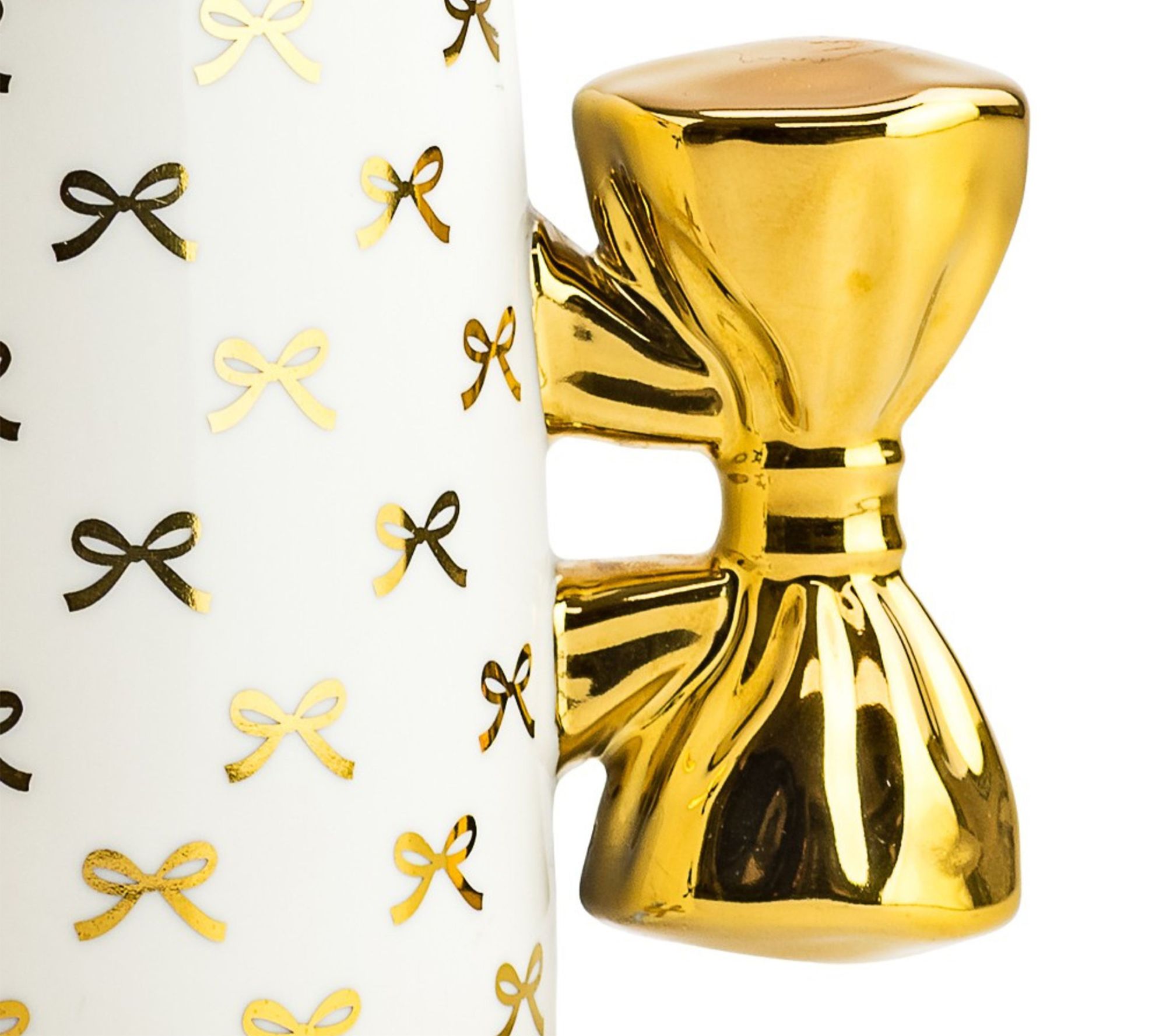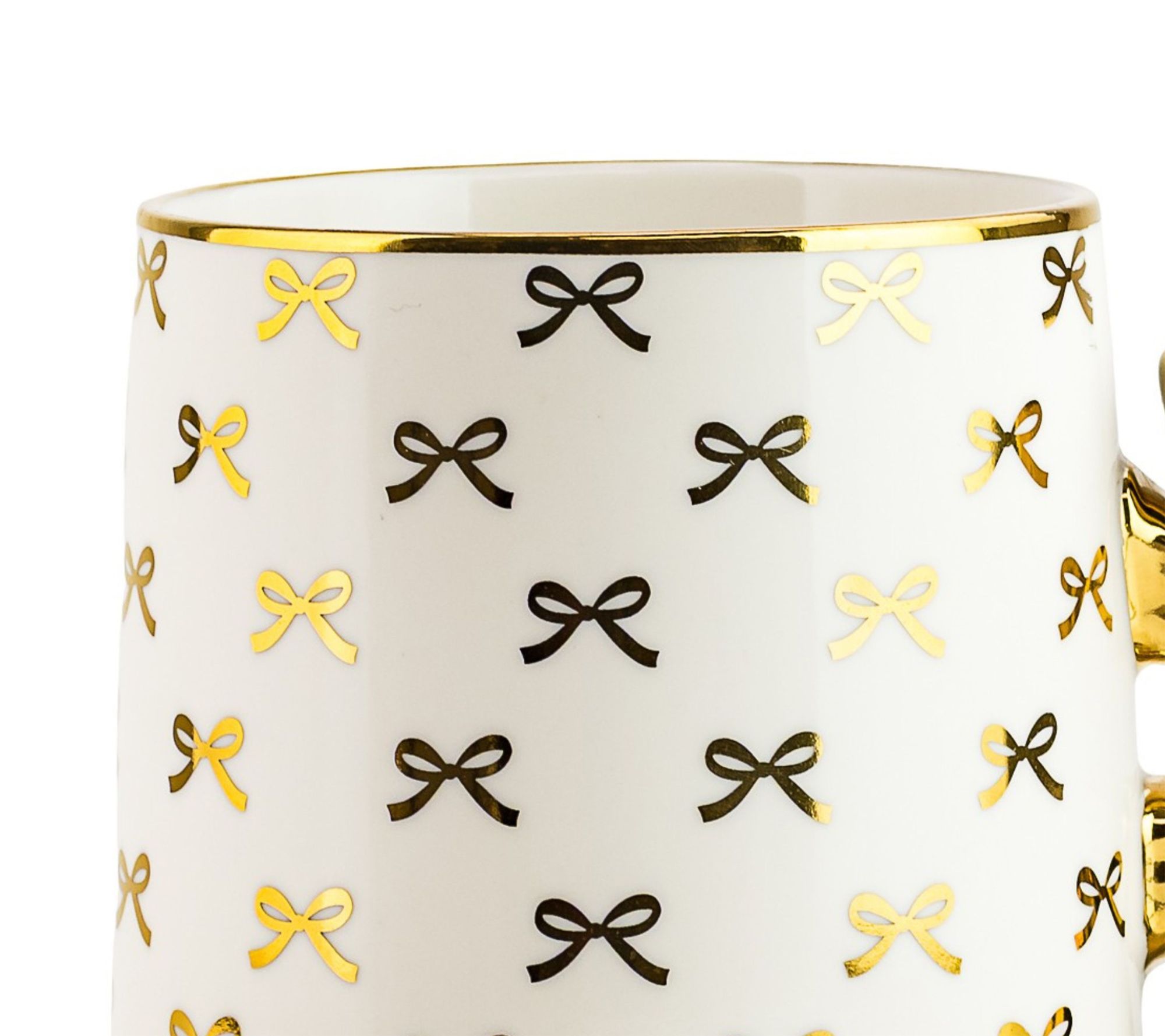 Brighten up your coffee breaks or gatherings with this set of 16-oz mugs, each adorned with an allover gold bow pattern and a playful figural bow handle. Whether you're enjoying a cozy cup of cocoa or serving guests during the holidays, these mugs add a sparkling touch of charm and chic style to your table. From 10 Strawberry Street.