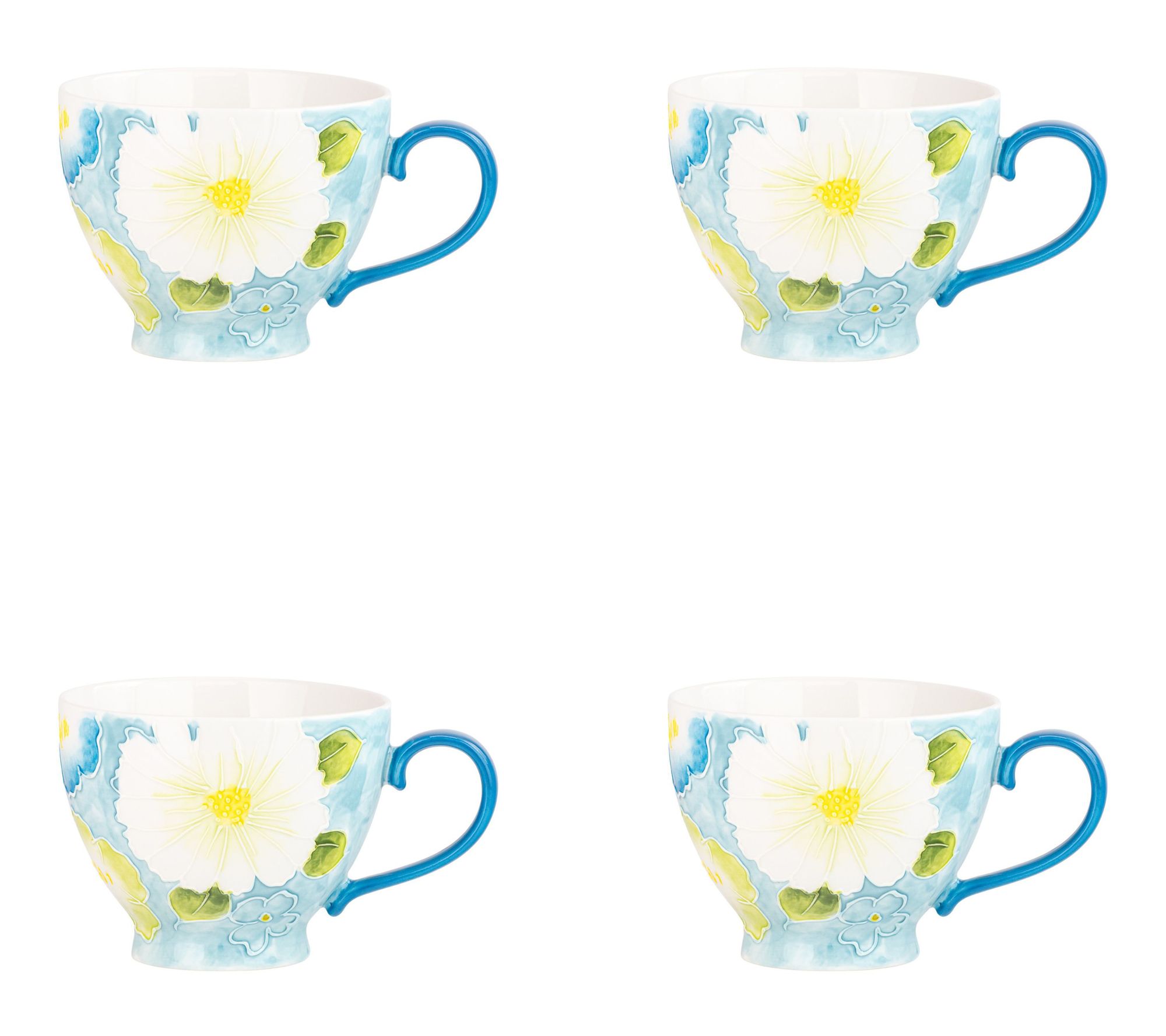 Brighten up your mornings or unwind in the evening with a set of Petaluxe mugs that bring a touch of charm to every sip. With delicate styling and ample capacity, these mugs are just right for sharing coffee with friends or indulging in a cozy moment with your favorite tea. From 10 Strawberry Street.