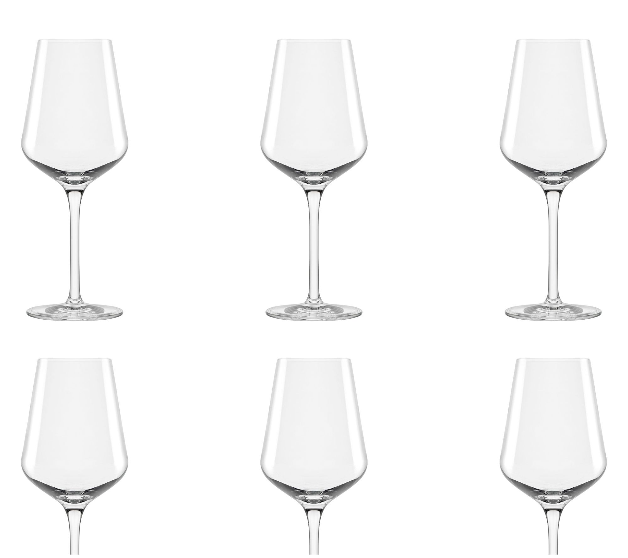 Toast celebrations big and small with this set of six white wine glasses, each featuring a sophisticated silhouette that blends timeless design with modern flair. Whether you're hosting a dinner party or enjoying a quiet evening in, beautifully crafted glass construction makes every sip feel special while seamlessly complementing your tabletop. From 10 Strawberry Street.