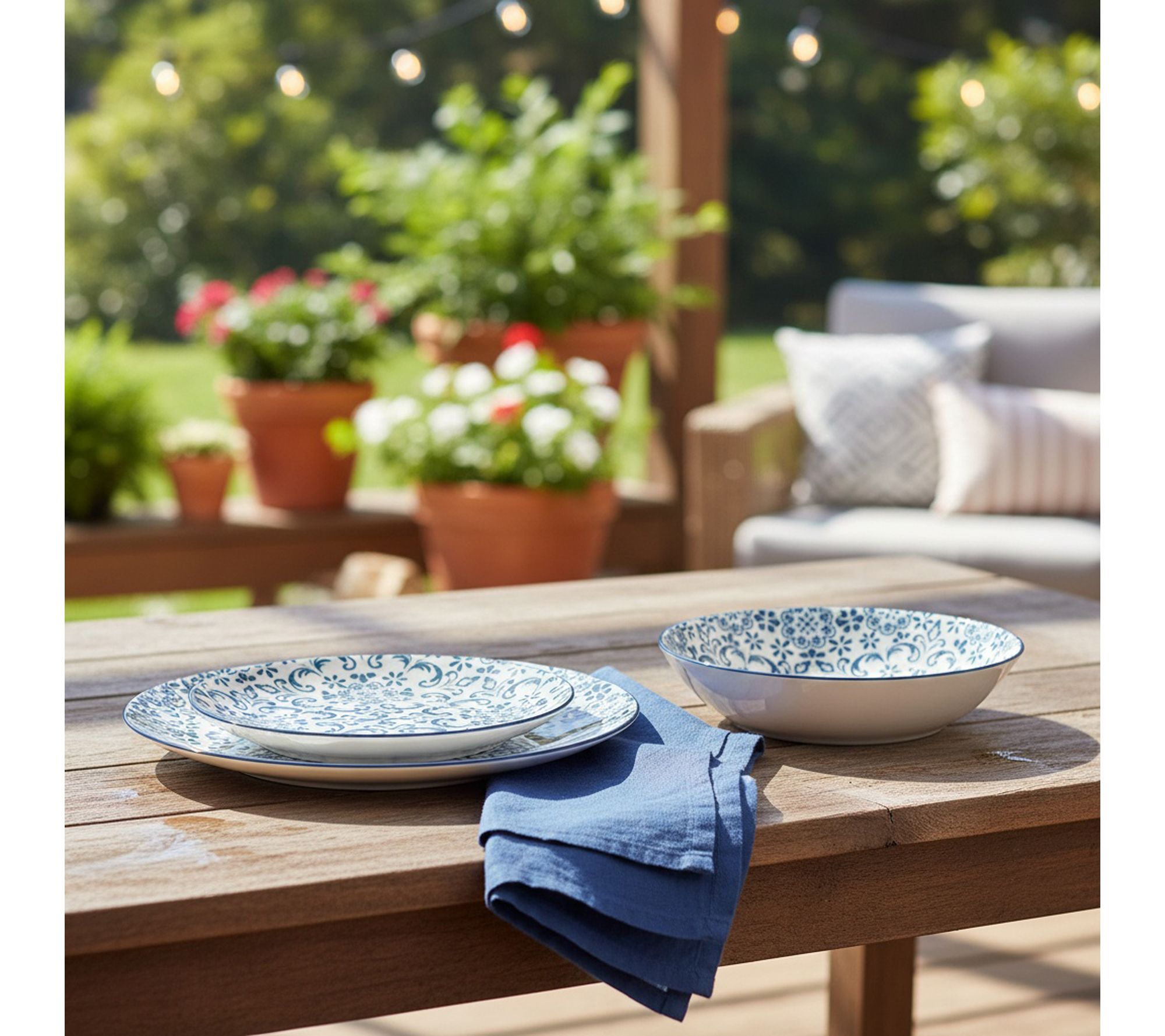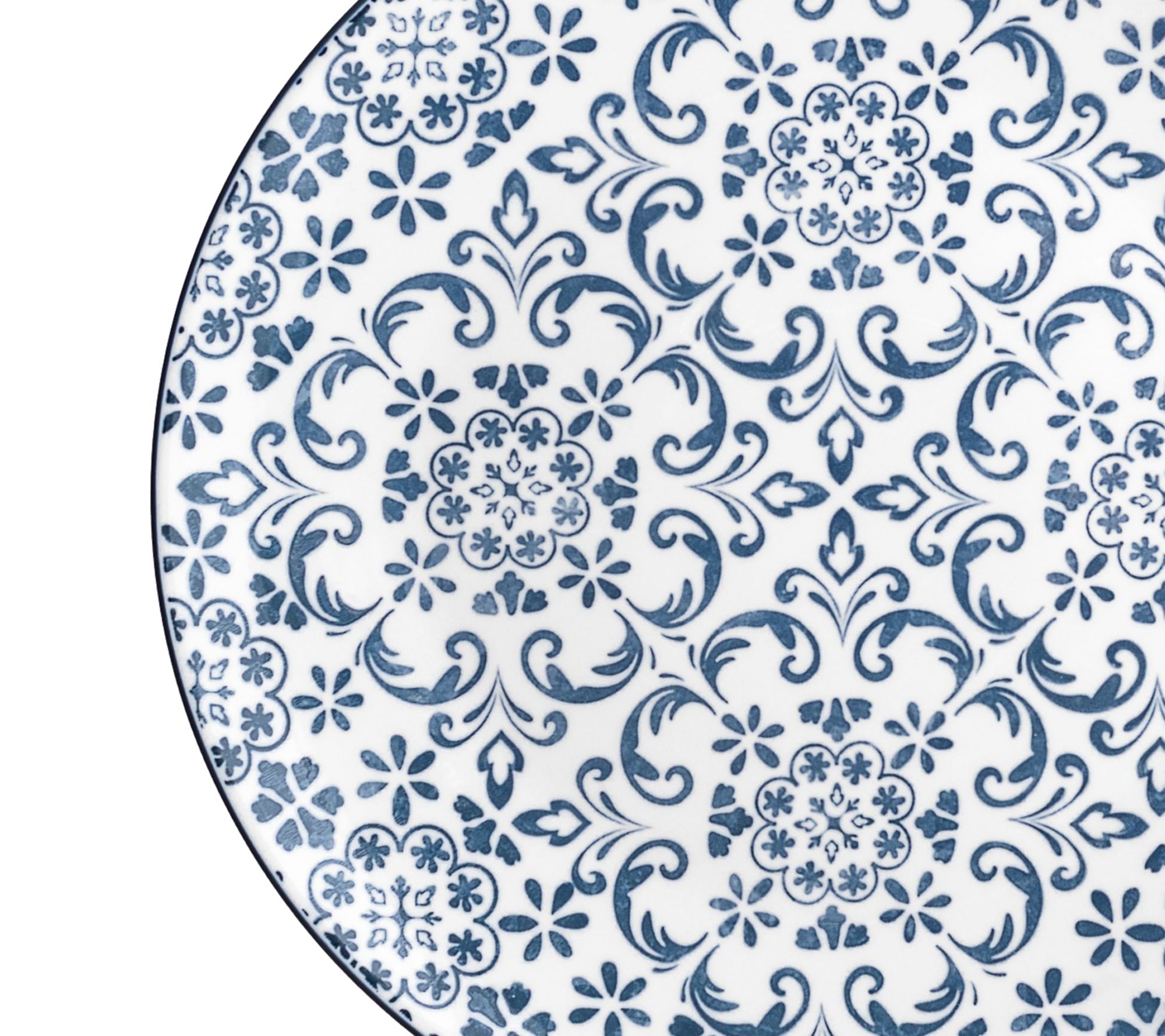 • Features a blue tile-inspired pattern on crisp white ceramic for a Mediterranean look