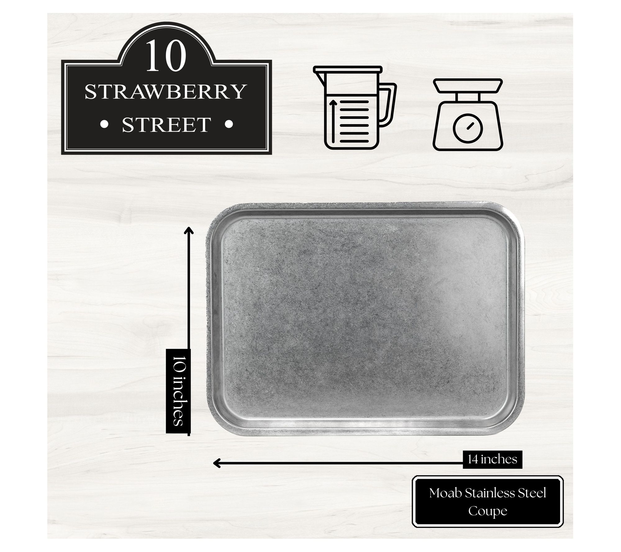 Dinner parties get a bold upgrade with these sleek rectangular plates, offering an industrial touch that catches the eye at any meal. Whether serving up creative appetizers or your favorite entrees, the contemporary stainless steel design lends style and versatility for both everyday use and special occasions. From 10 Strawberry Street.