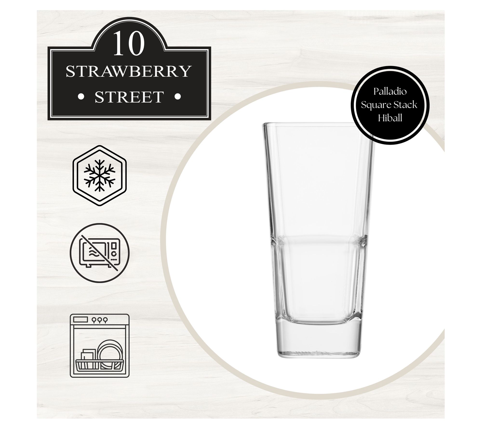 Set a stylish tone for every gathering with these Palladio highball glasses, thoughtfully crafted from glass to blend modern elegance with everyday practicality. The stackable square base design makes storing them a breeze, while their dishwasher-safe construction brings effortless cleanup after memorable evenings. From 10 Strawberry Street.