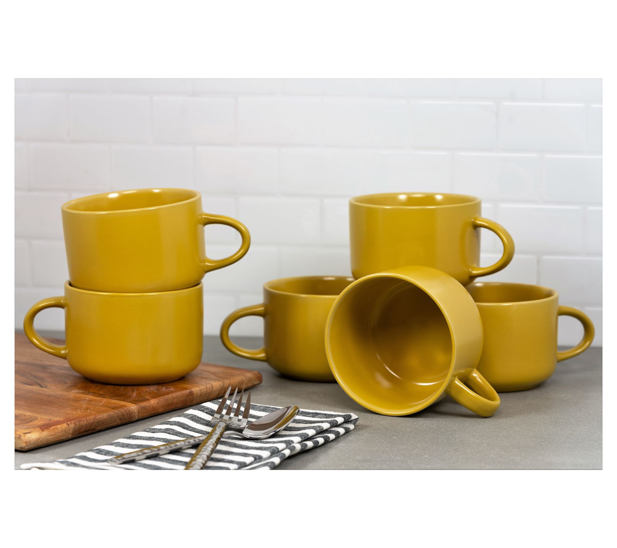 • Includes six 20-oz matching mugs