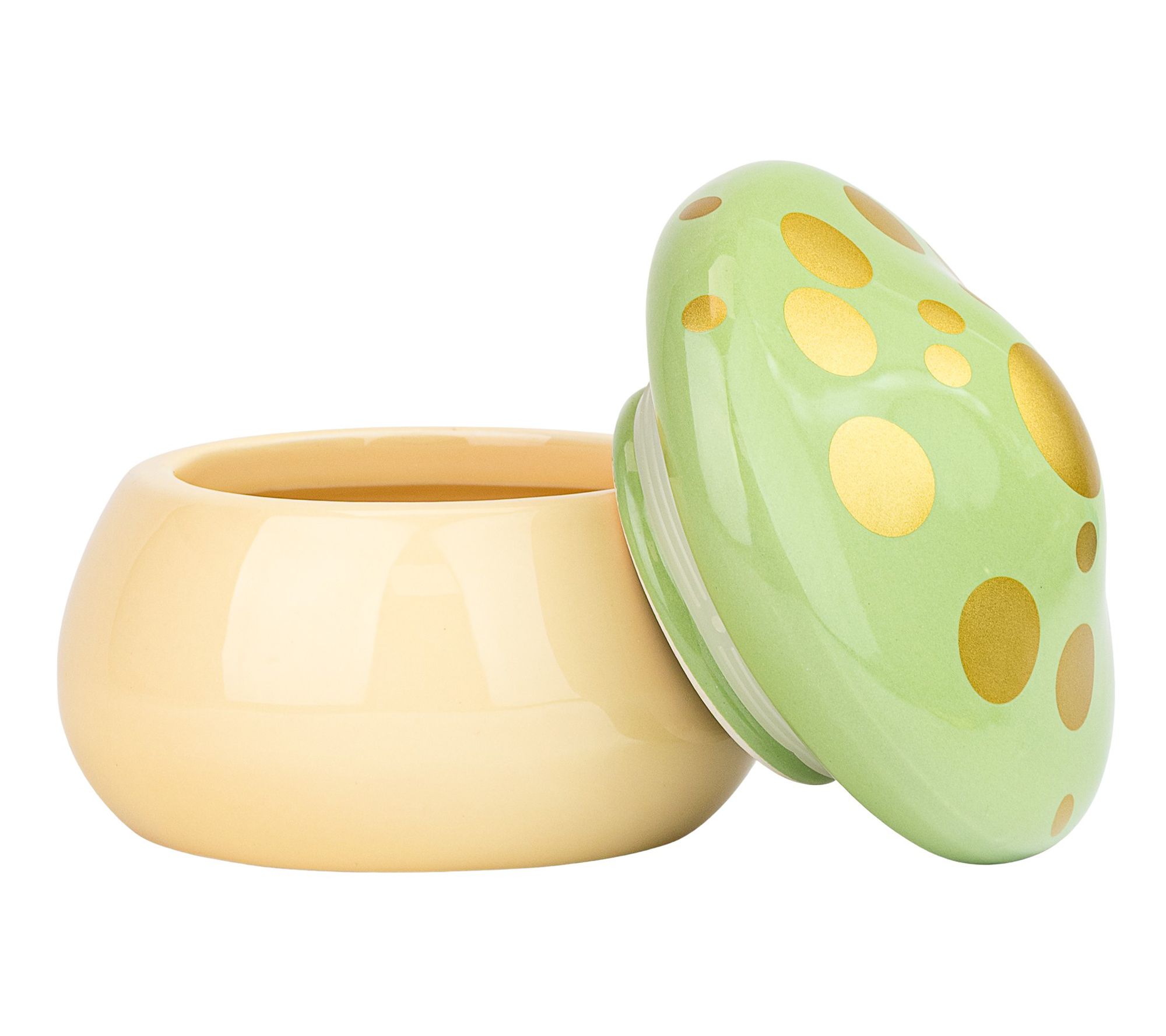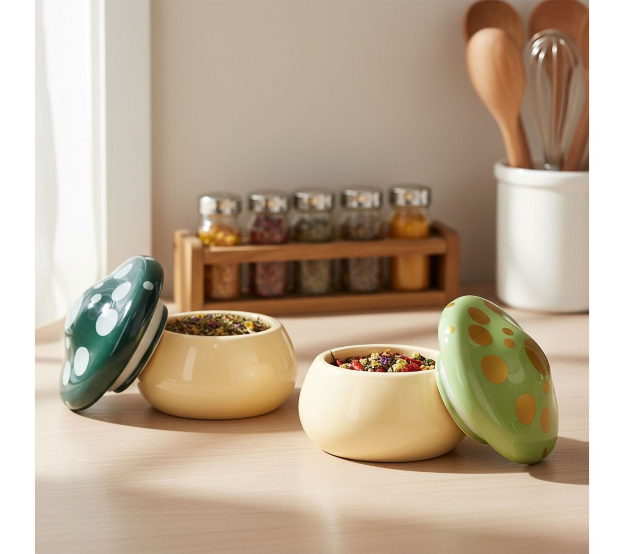 Invite a touch of storybook magic to your kitchen with these mini toadstool canisters, blending charming woodland decor with practical storage for your sugar, spices, or tea. Their mushroom-shaped bodies and whimsical green-capped lids create a cozy, nature-inspired vibe that's as delightful to display as it is handy for everyday use. From 10 Strawberry Street.