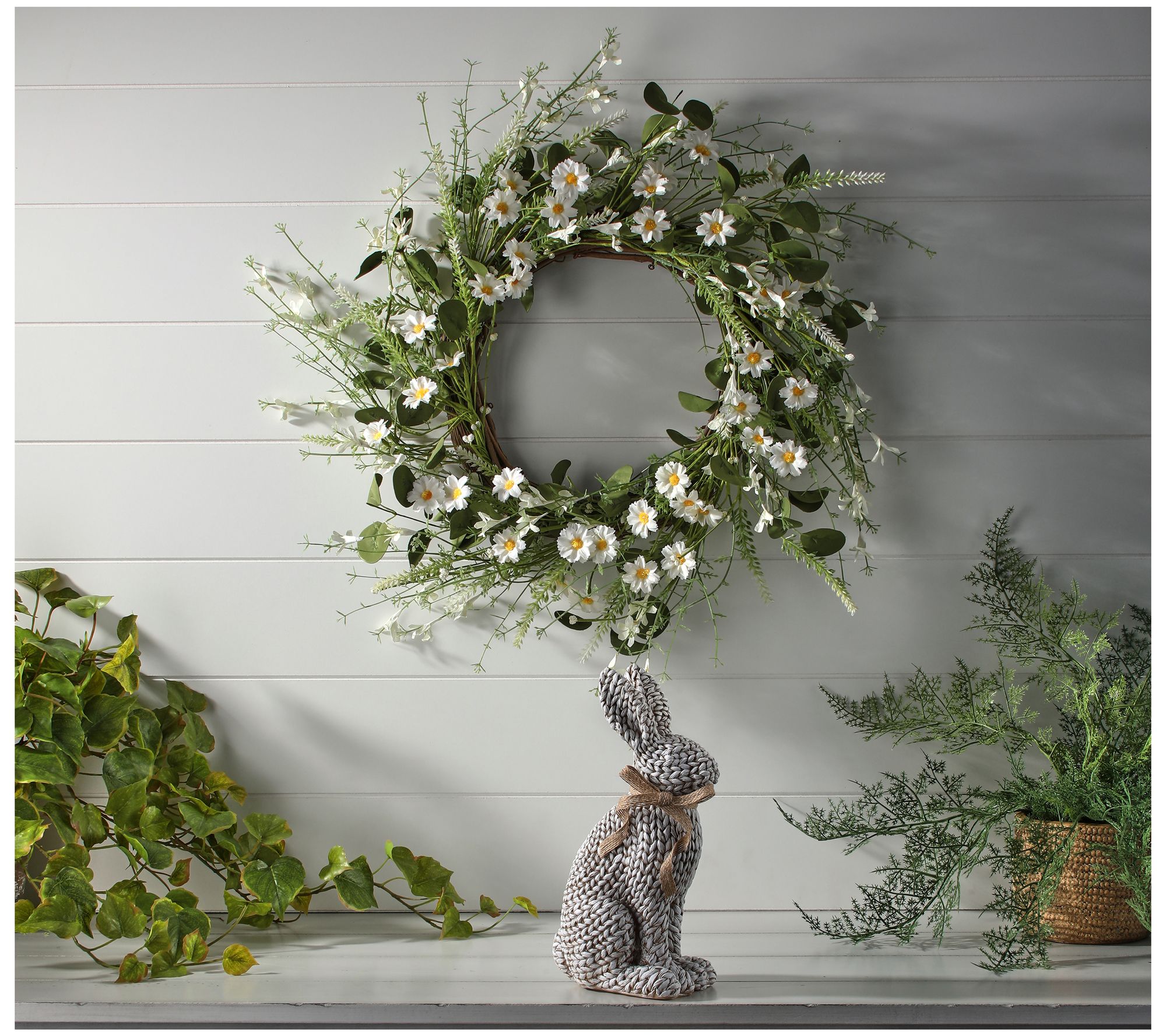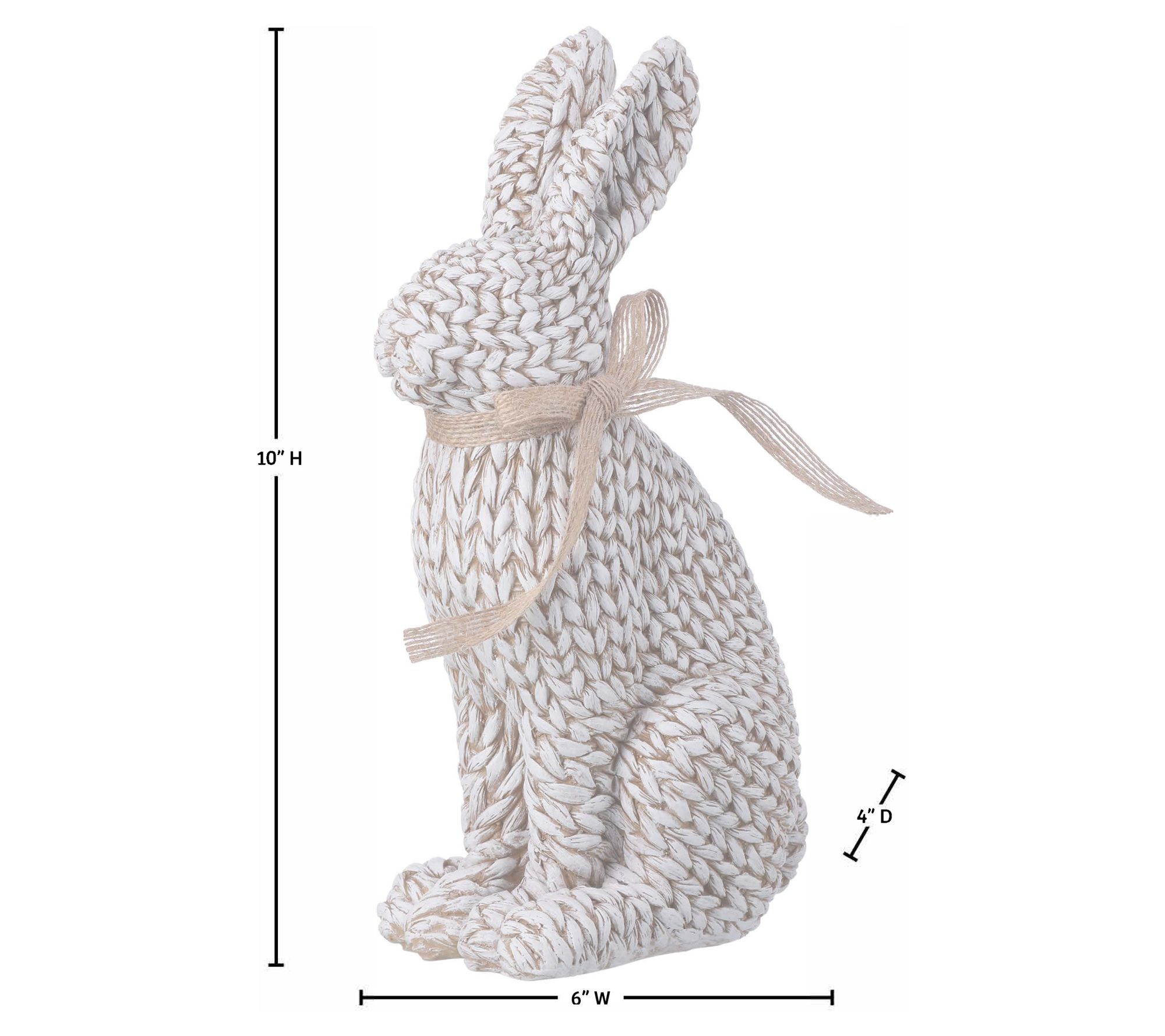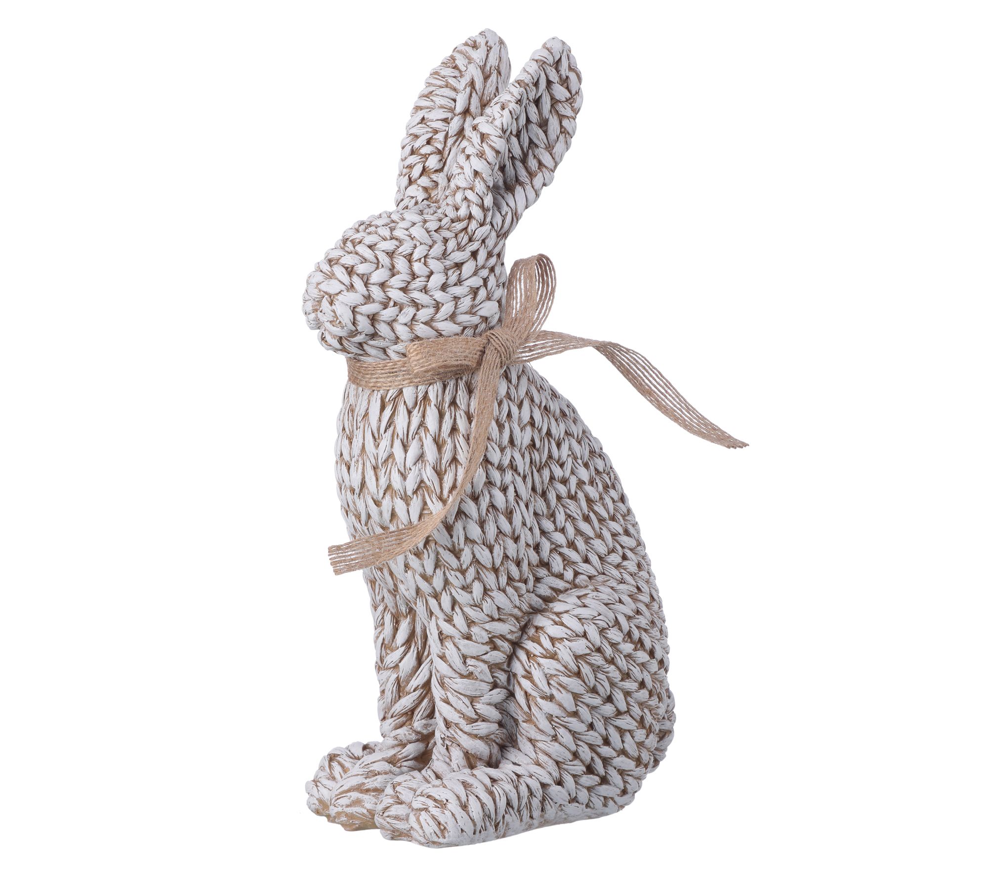 Hop into the festive spirit with this charming 10" woven rabbit by Valerie. Crafted from durable resin, it boasts a unique woven texture that adds a touch of rustic charm to any setting. With its delicate details and a twine bow, this rabbit is perfect for sprucing up your home during Easter, spring, or year-round. Ideal for mantels, tabletops, or shelves, it's an inviting addition to your decor. From the Valerie Parr Hill Collection.