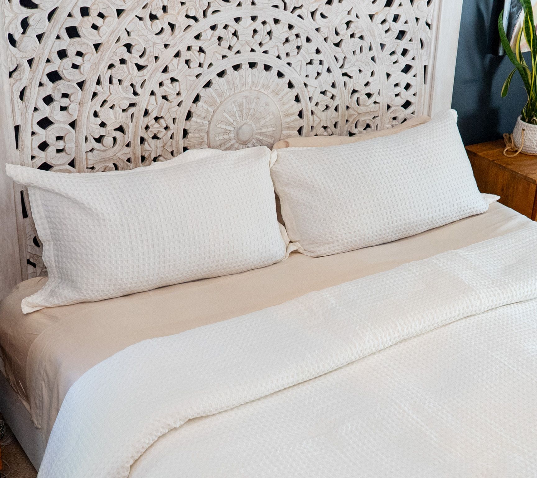 Transform your bedroom into a cozy retreat -- inspired by Kim Gravel's approachable style -- with this waffle comforter and sham set. Switching up your look is simple thanks to a textured waffle weave on one side and soft brushed cotton on the other, offering both appealing style and comfort for every season. Machine washable for easy care, this inviting set is ideal for everyday lounging or guest visits. From Kim Gravel.