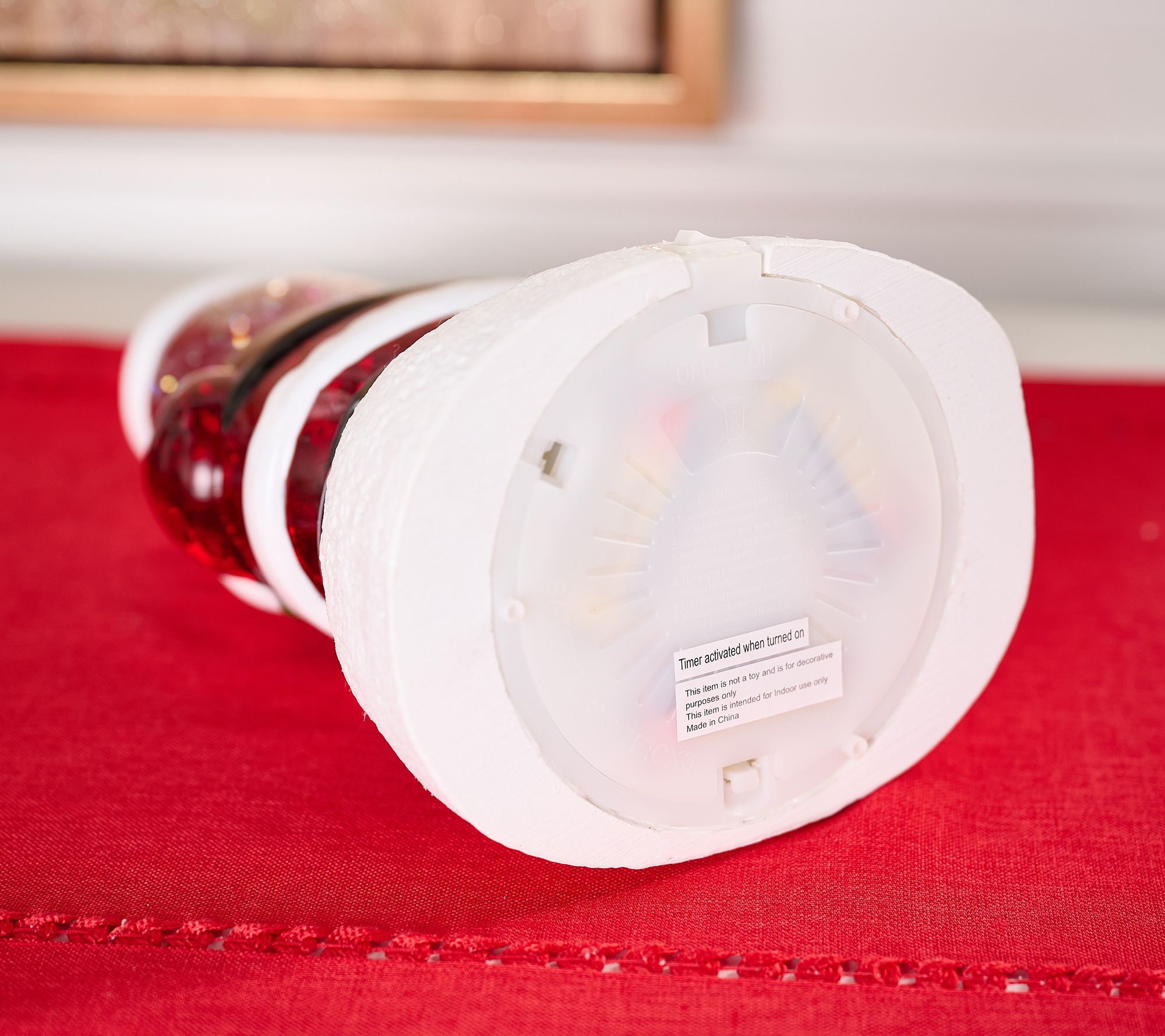 Hello, festive fellow! Illuminated with a soft glow and captivating with swirling glitter, this sweet holiday figure brings on the cheer! A four-hour timer means it conveniently turns on and off at the same time each day. From the Valerie Parr Hill Collection.