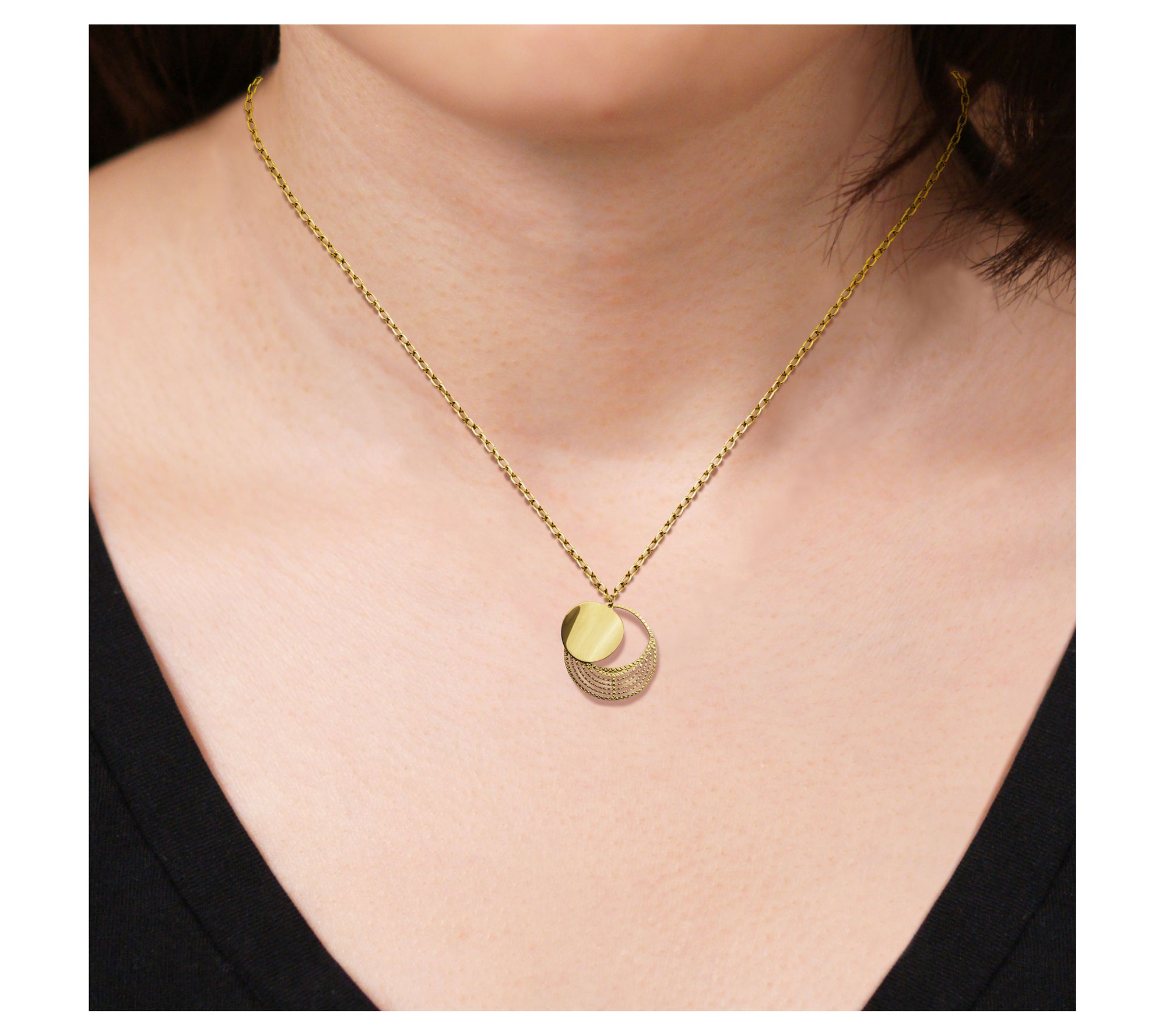 Elevate your look with this exquisite 10K Gold Layered Circle Pendant, featuring a double circle design that gracefully hangs from an 18-inch cable chain with a 1" extender. Its timeless elegance and the radiant glow of 10K yellow gold make it a versatile accessory for any occasion. From casual days to celebratory evenings, this pendant will add a touch of sophistication to your ensemble.