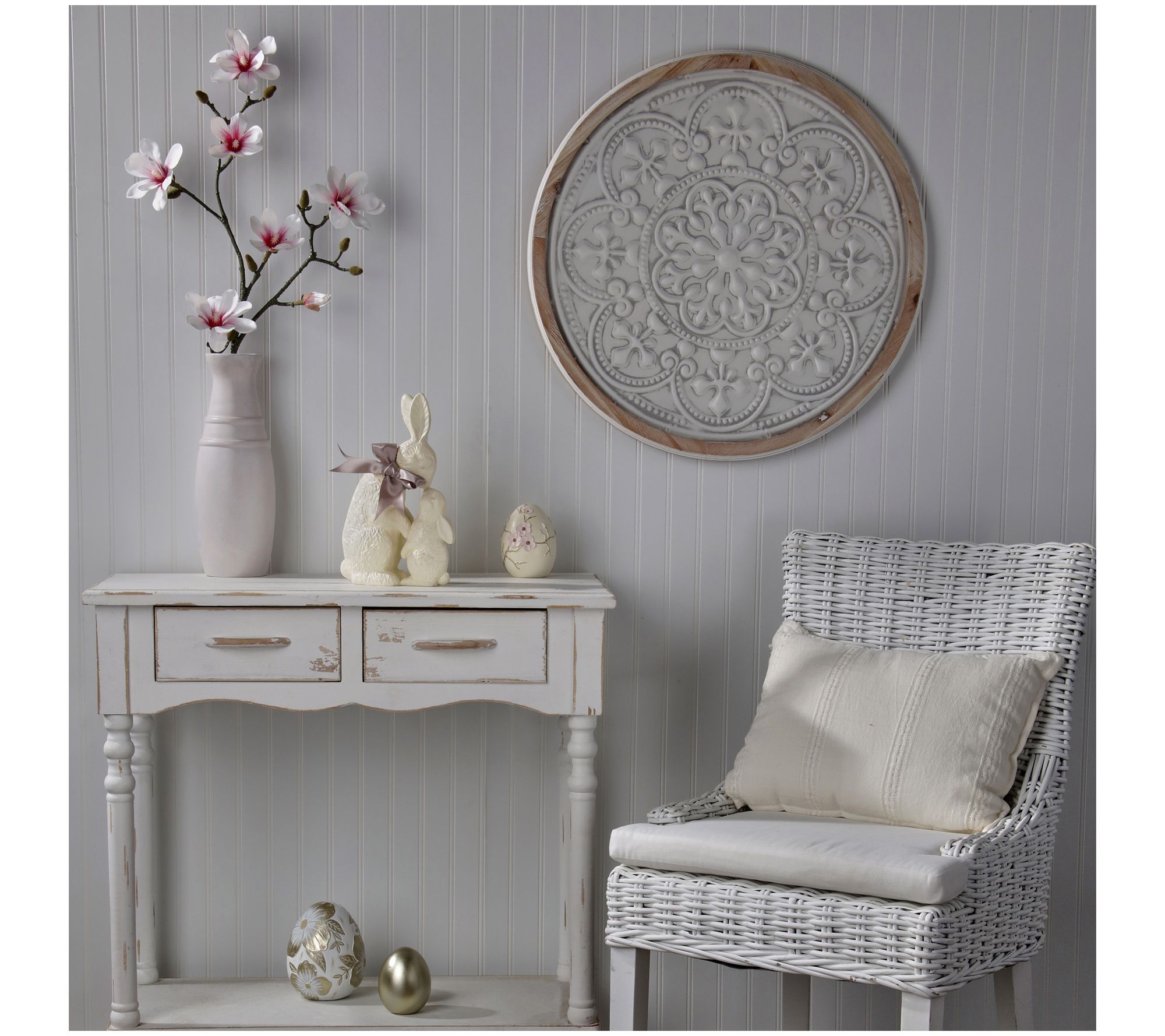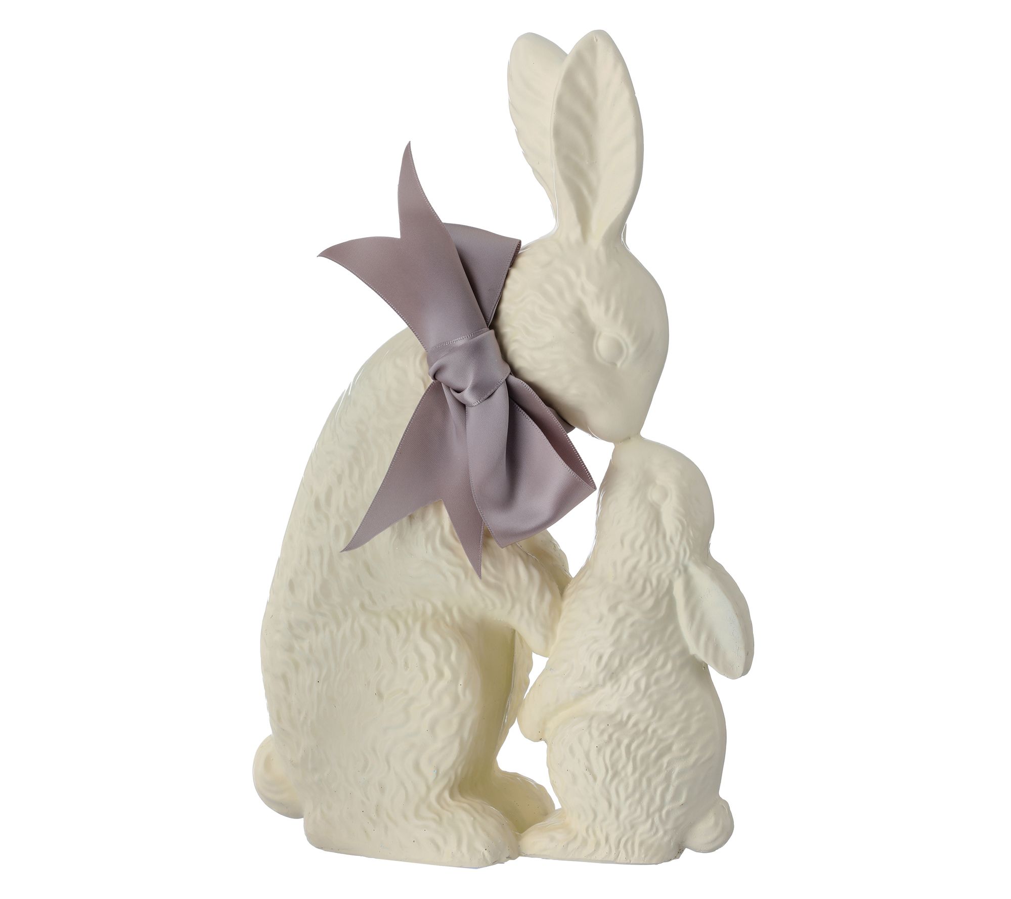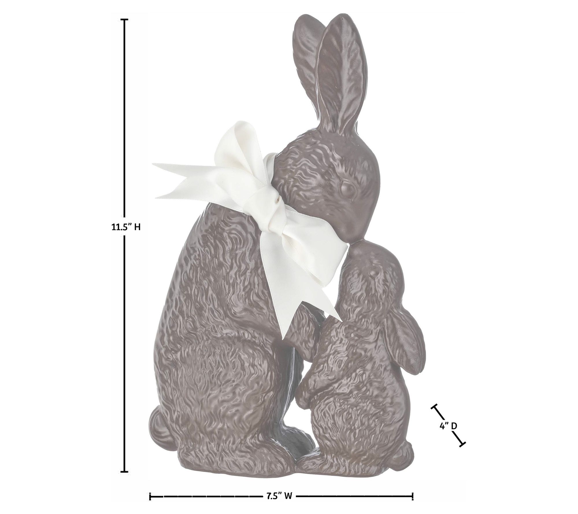 Hop into the spirit of Easter with this charming Chocolate Bunny figure by Valerie. Dressed in a chocolate colored finish, the endearing piece features a a bunny cradling a baby in its arms, capturing the tender bond between mother and child. Perfect for mantelpieces or tabletops, this delightful sculpture adds warmth and whimsy to your springtime decor. From the Valerie Parr Hill Collection.