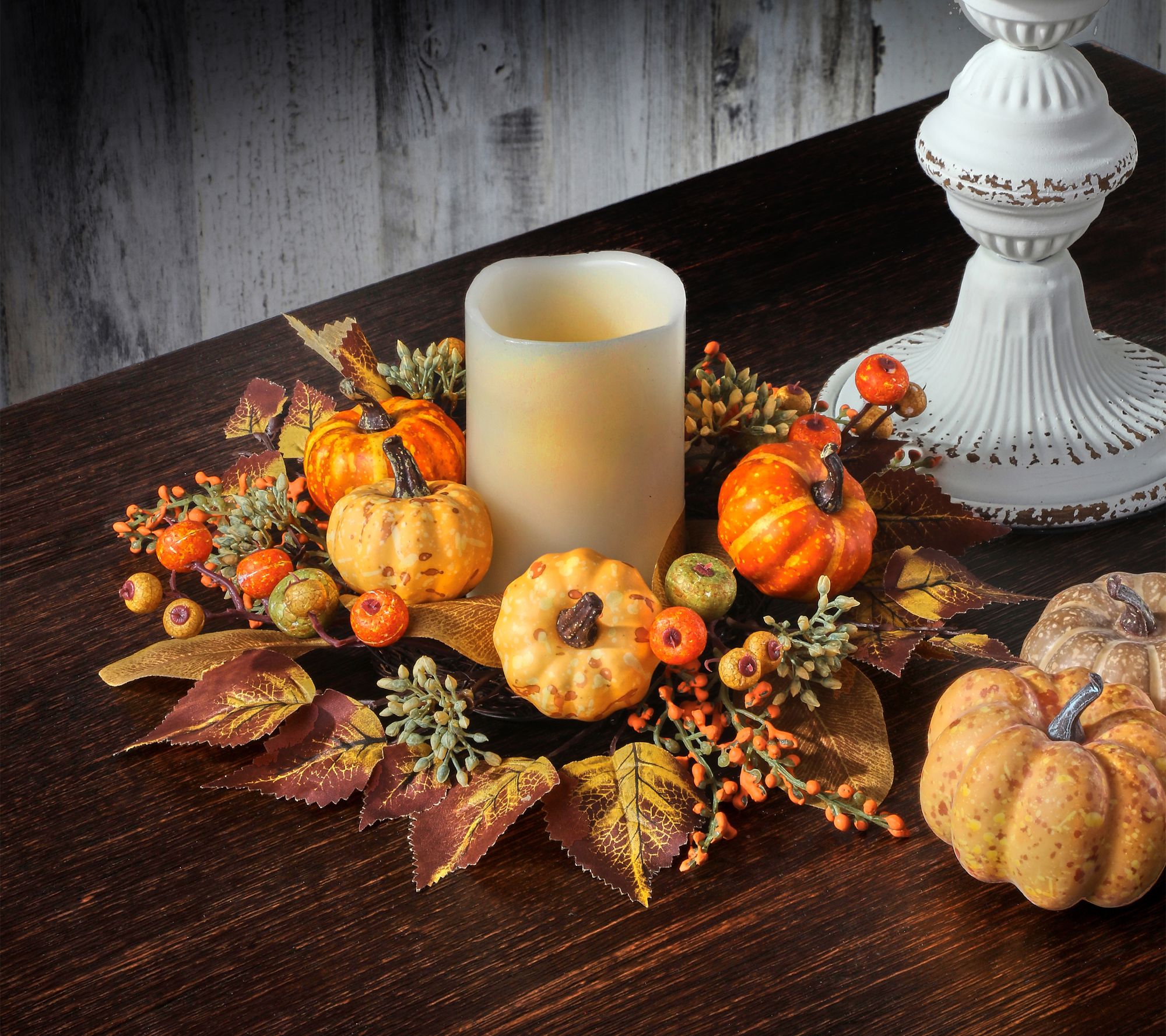 12" Berry Pumpkin Leaf Candle Ring by Valerie
