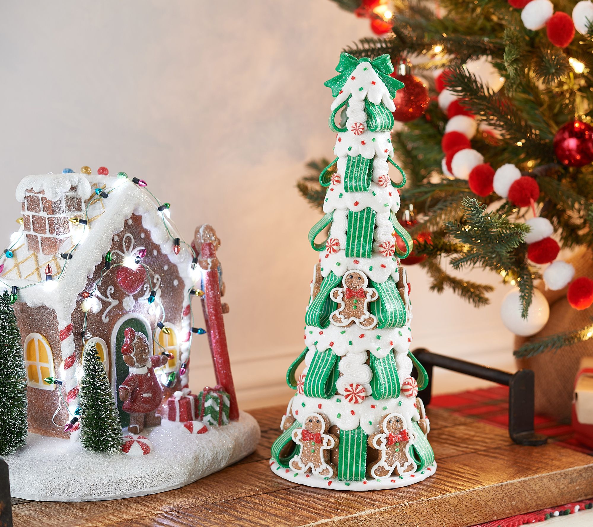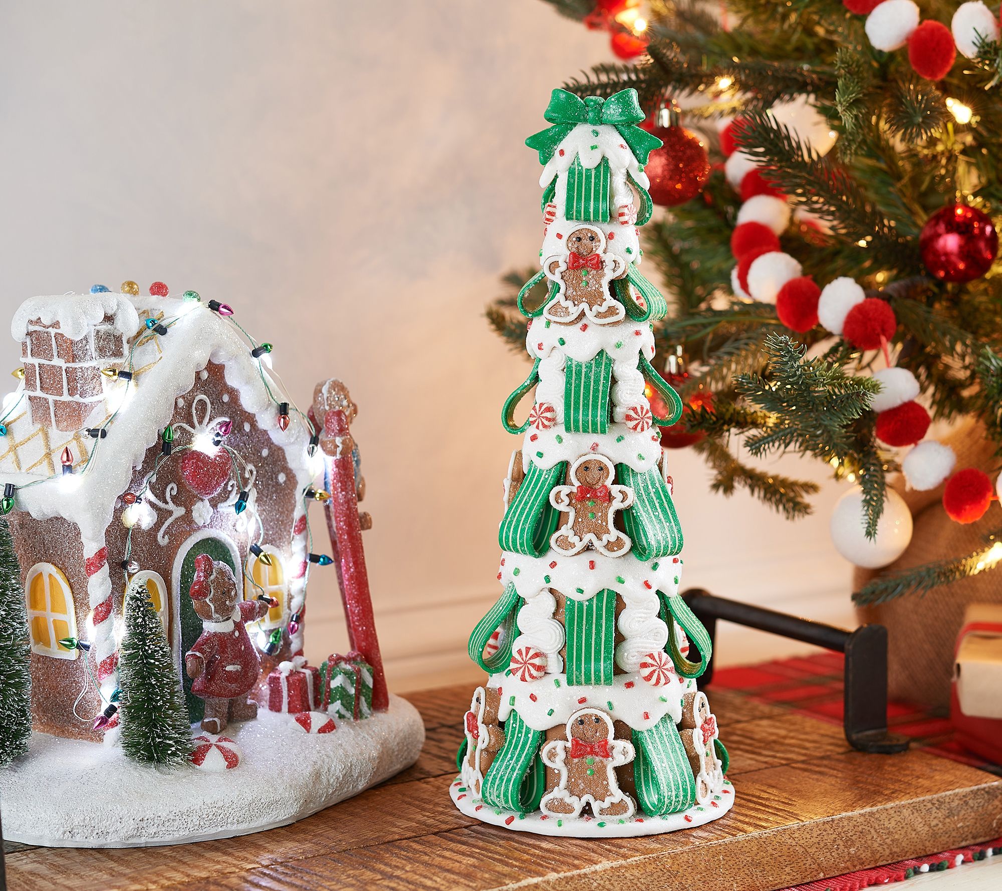 Big on holiday sweets? Incorporate them into your decor (and get everyone excited for dessert) with this candy tree, accented with yummy gingerbread details. From the Valerie Parr Hill Collection.