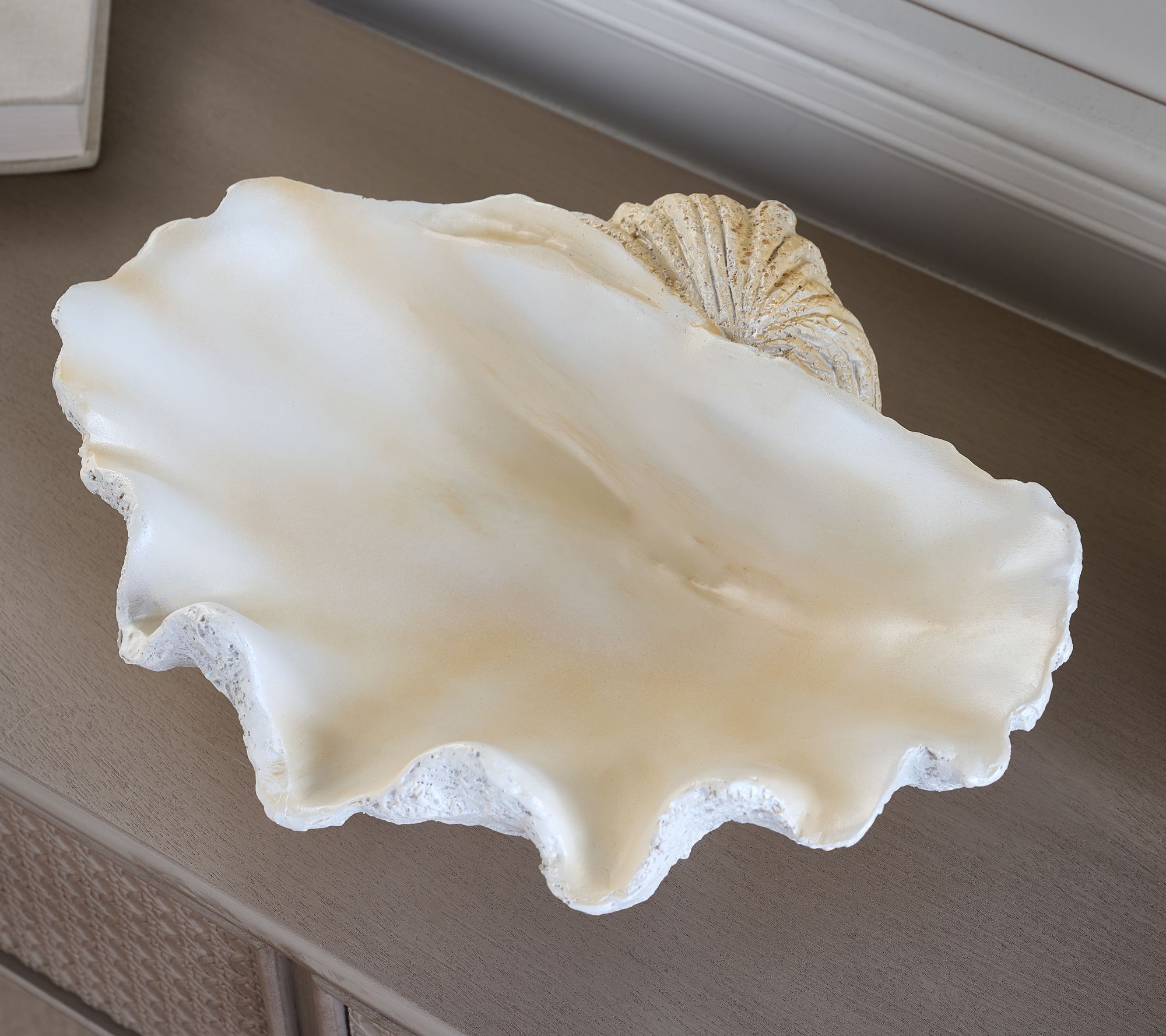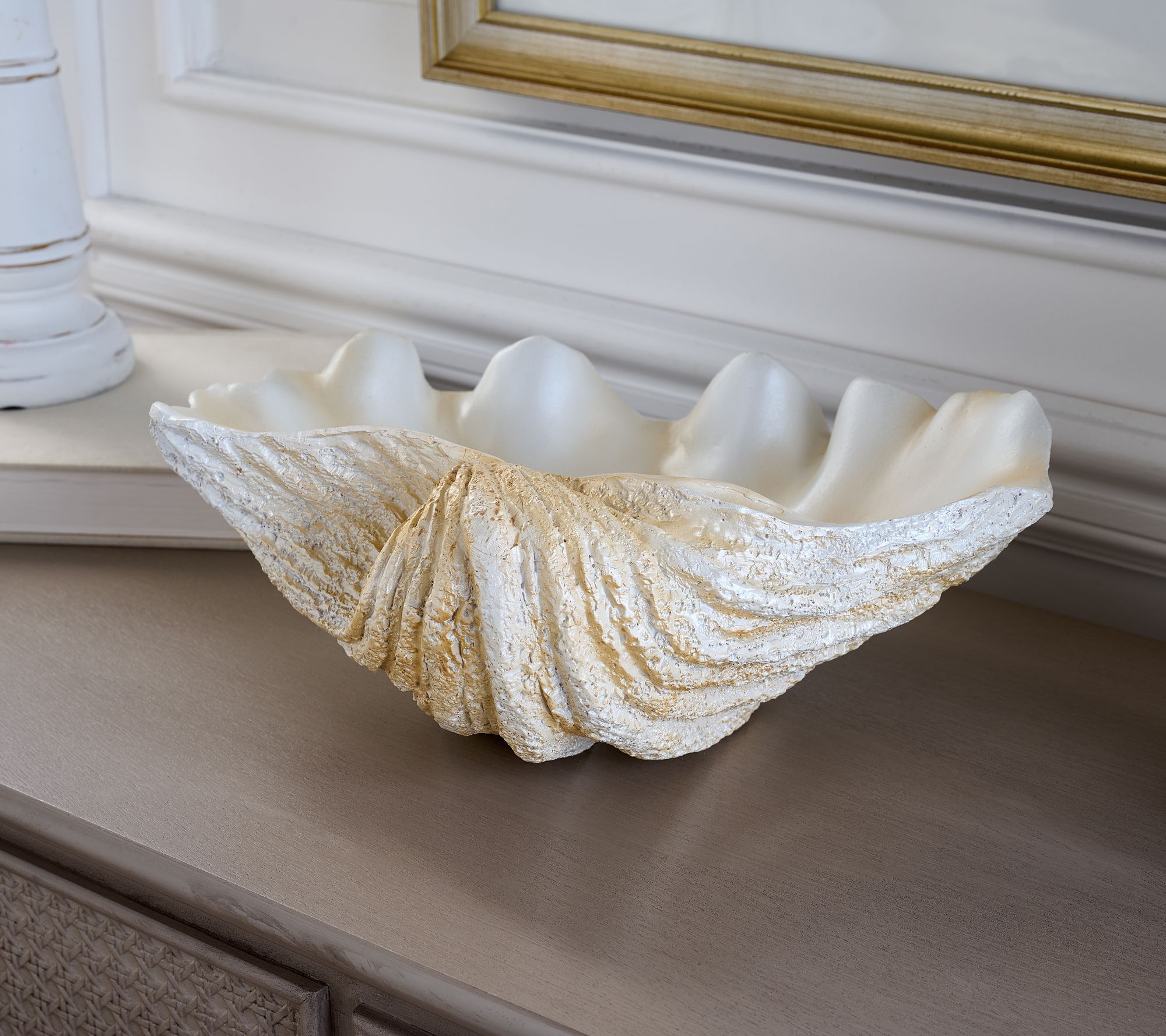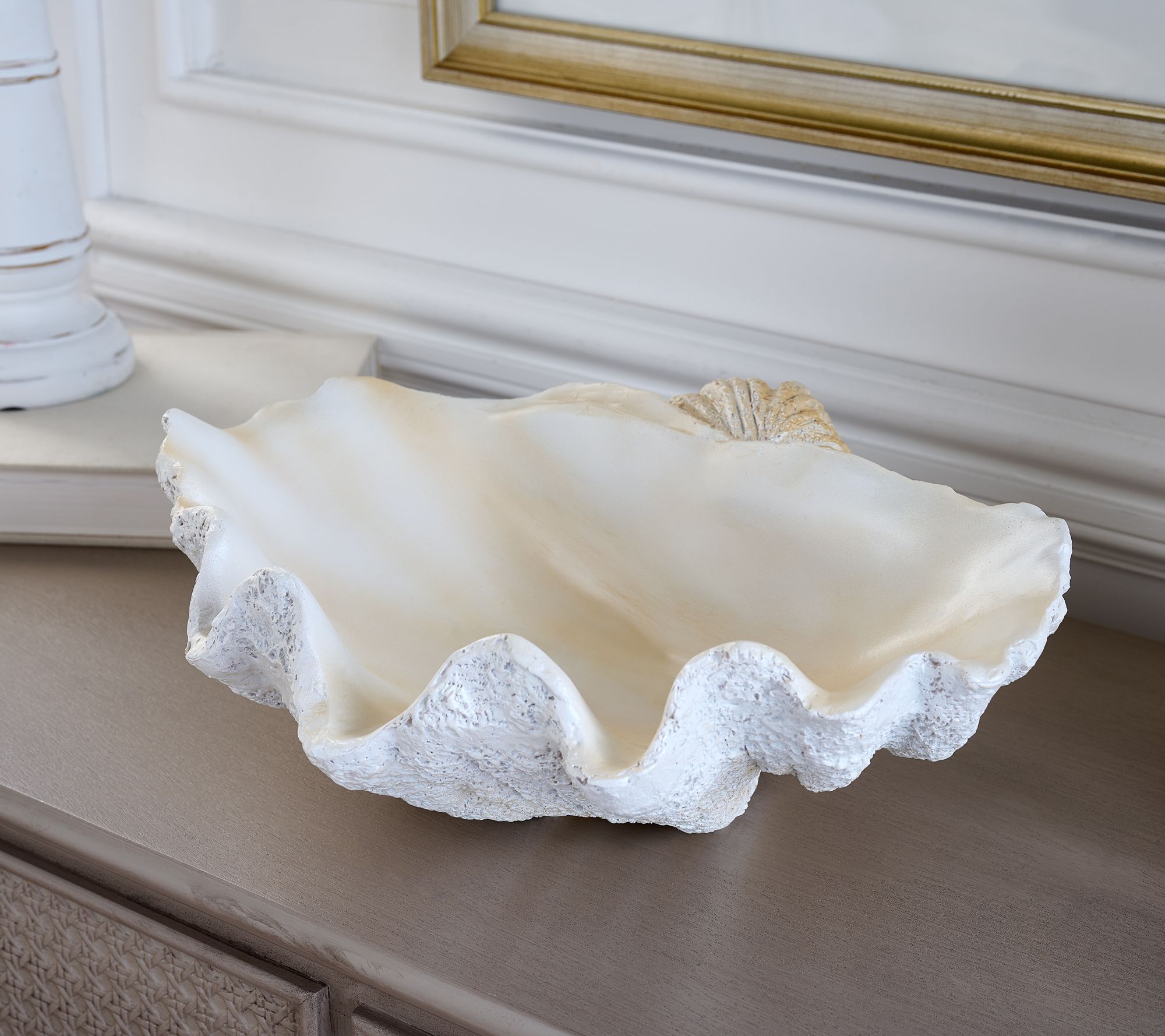 Bring on the by-the-sea vibes with this scallop shell decoration on display. Carefully crafted to simulate a real shell with a textured exterior and iridescent interior, it's stunning as a stand-alone piece or as a canvas for creativity when you add your own festive fillers. From the Valerie Parr Hill Collection.