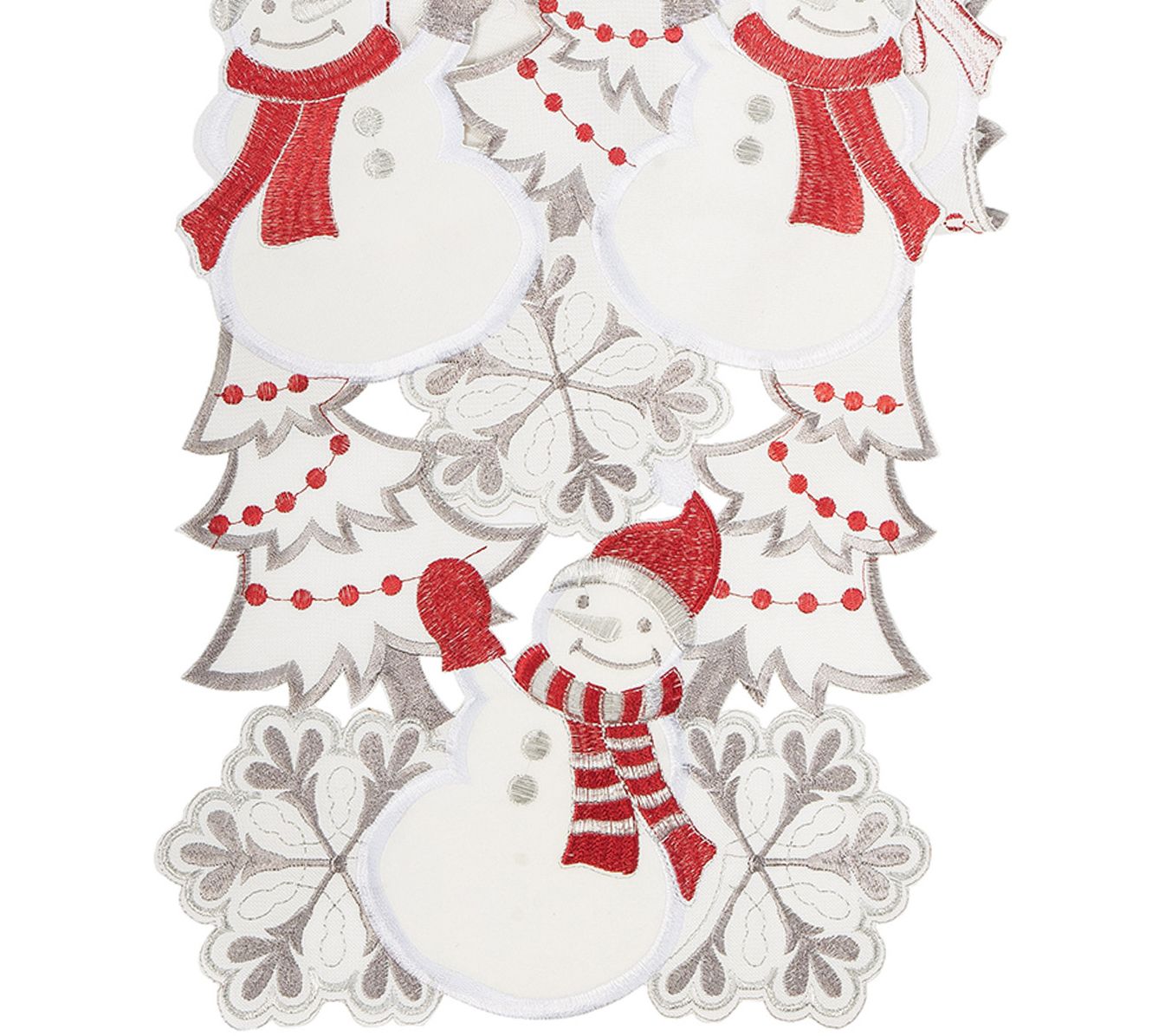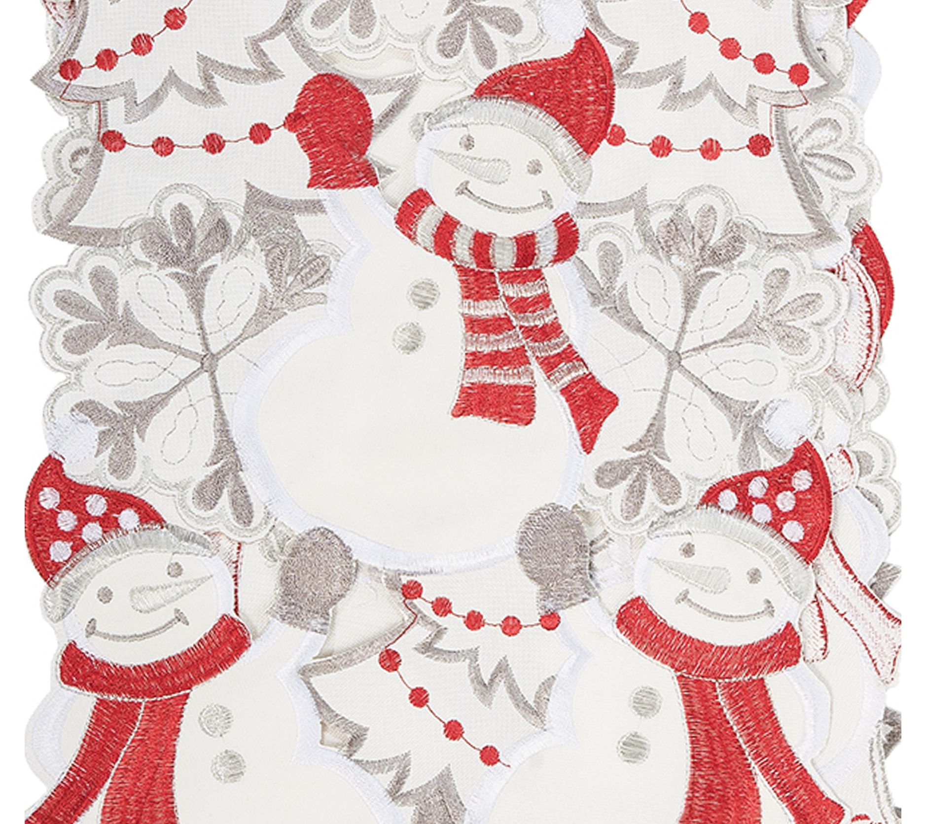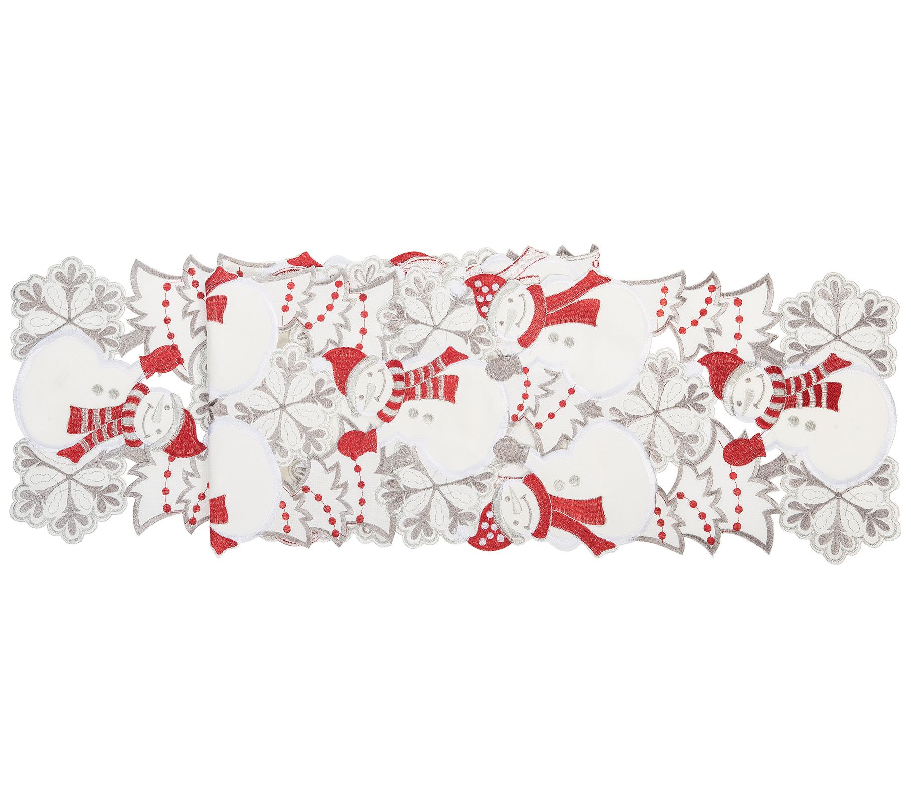 With its cutout pattern and just a little retro-winter style, this snowmen table runner fits right in with your holiday decor. From the Valerie Parr Hill Collection.