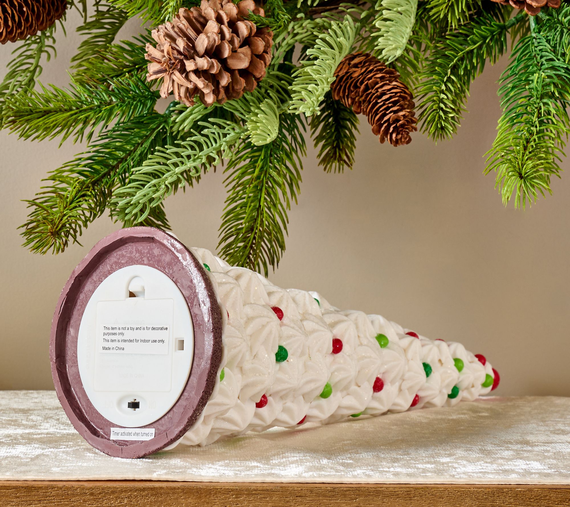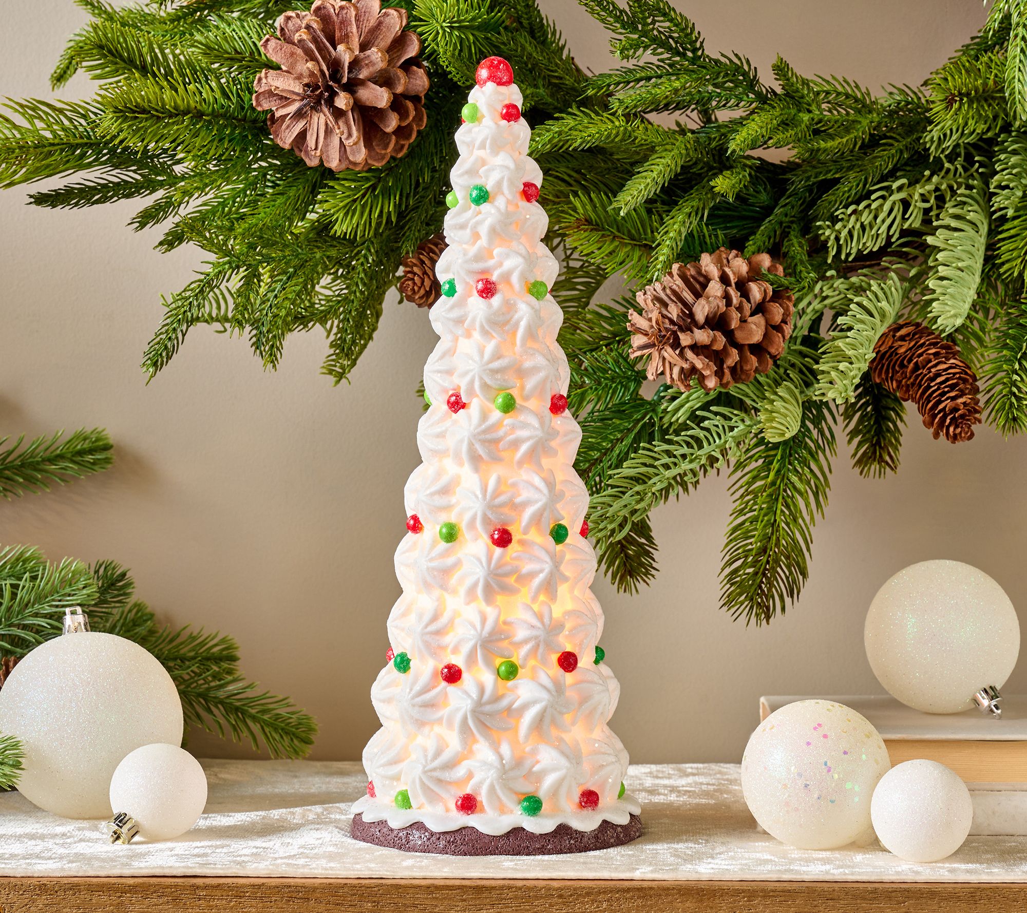 Decoration or dessert? Brighten up your holiday decor in delicious style with this illuminated tree by Valerie. With white meringue details and candy dots in red and green, it's a festive feast for the eyes and adds a splash of fun to your home. From the Valerie Parr Hill Collection.