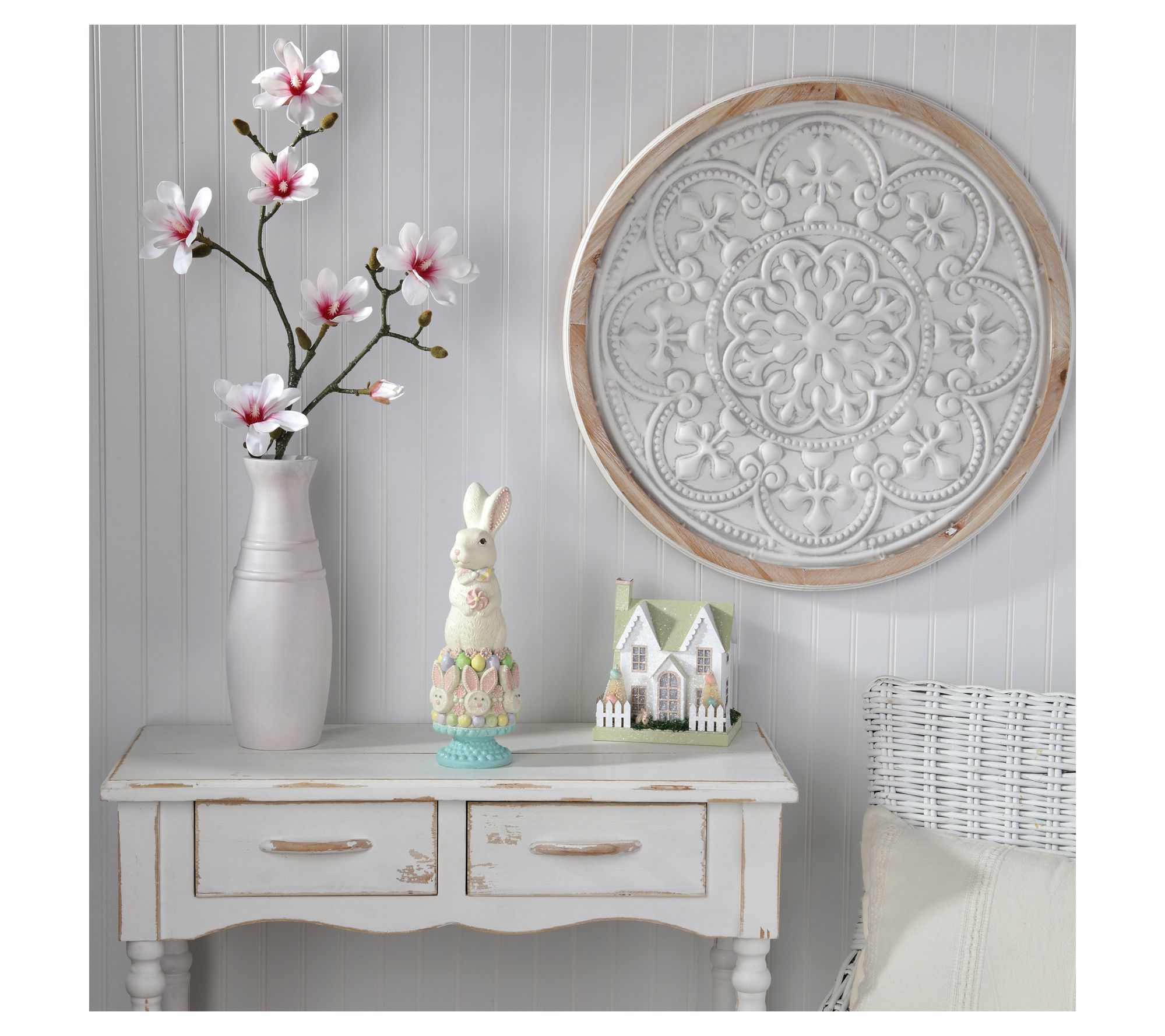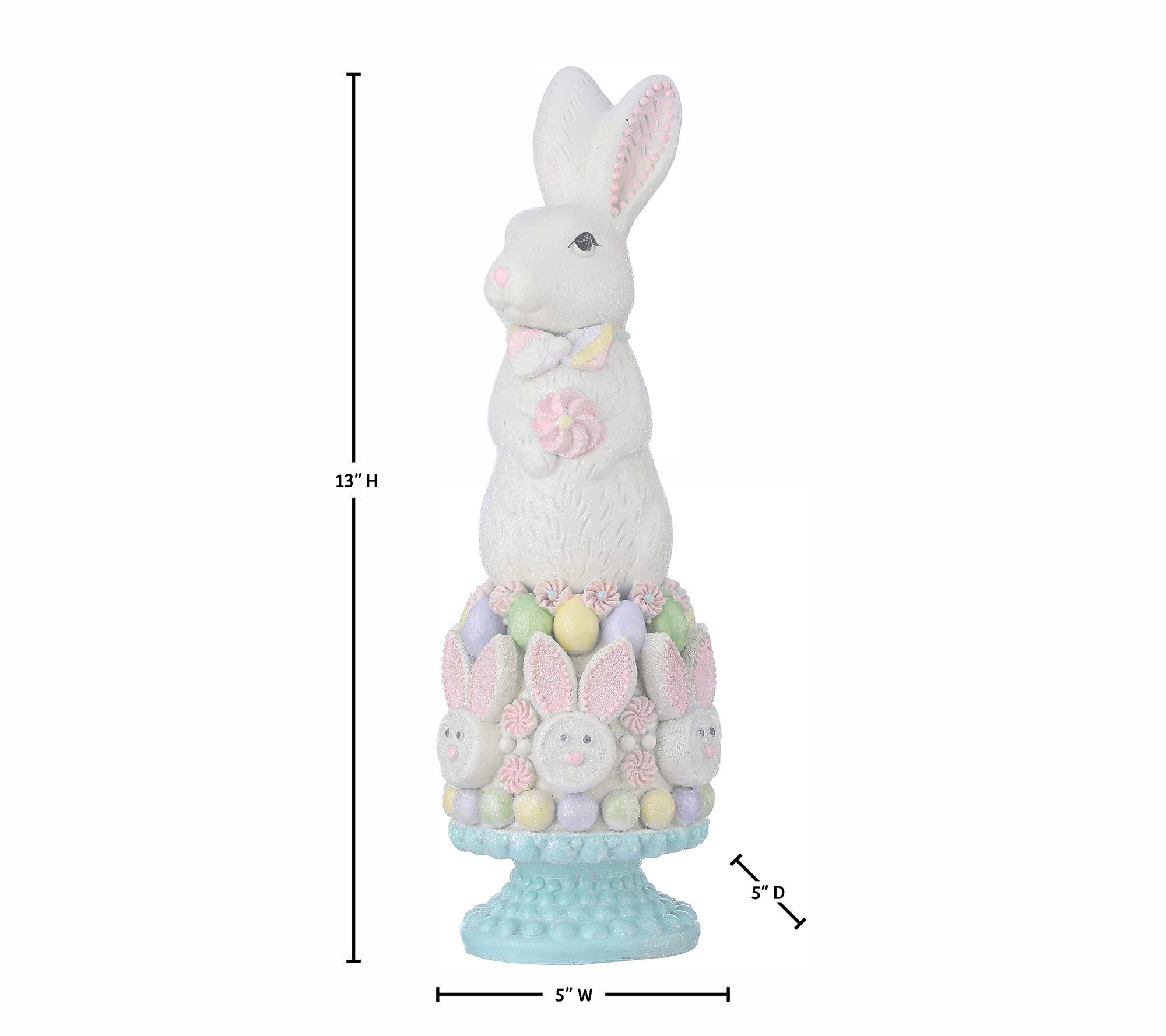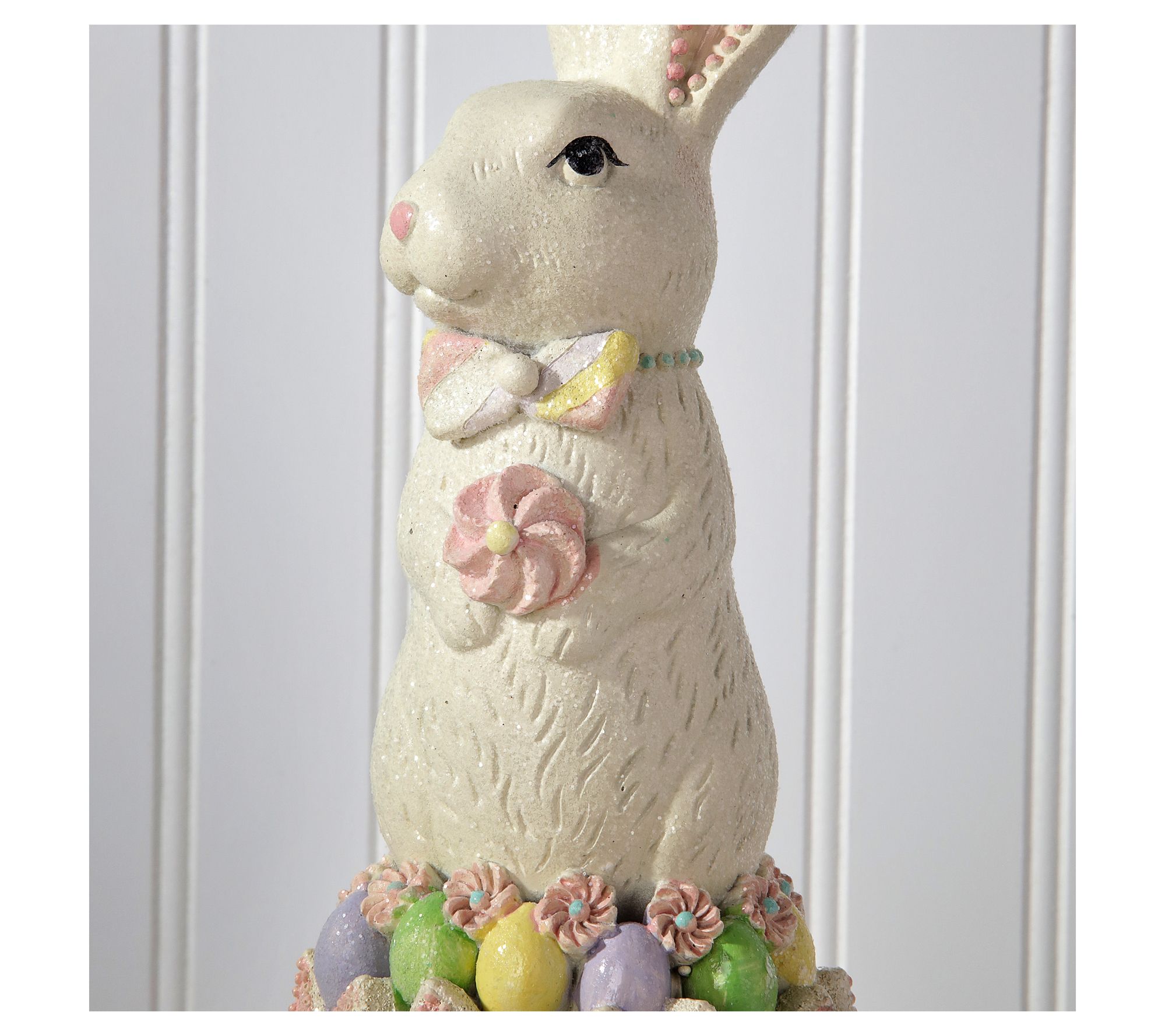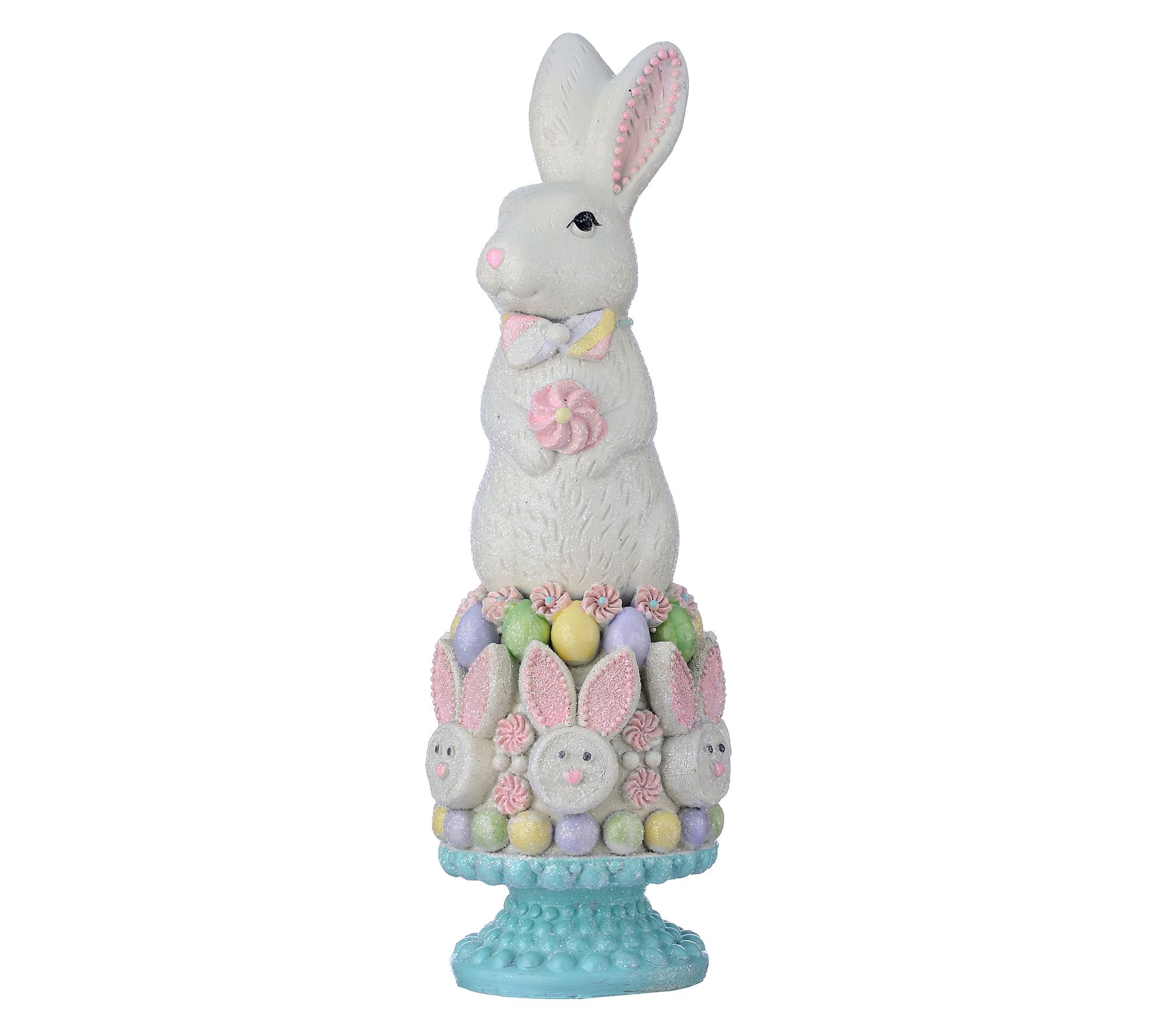 Add a touch of sweetness to your seasonal decor with this delightful sugared cake with bunny figure. The charming bunny sits atop a detailed cake, dusted with a sugary finish to enhance its whimsical appeal. Ideal for Easter or spring, it brings a playful ambiance to any tabletop or shelf. From the Valerie Parr Hill Collection.