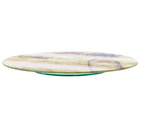 One delicious turn deserves another. Serve cake, hors d'oeuvres, or cheese like a professional! This tempered glass turntable's eye-pleasing artwork will elevate the look of your table or buffet, and its precision ball-bearing mechanism is designed for years of use. It also makes a great hostess gift.