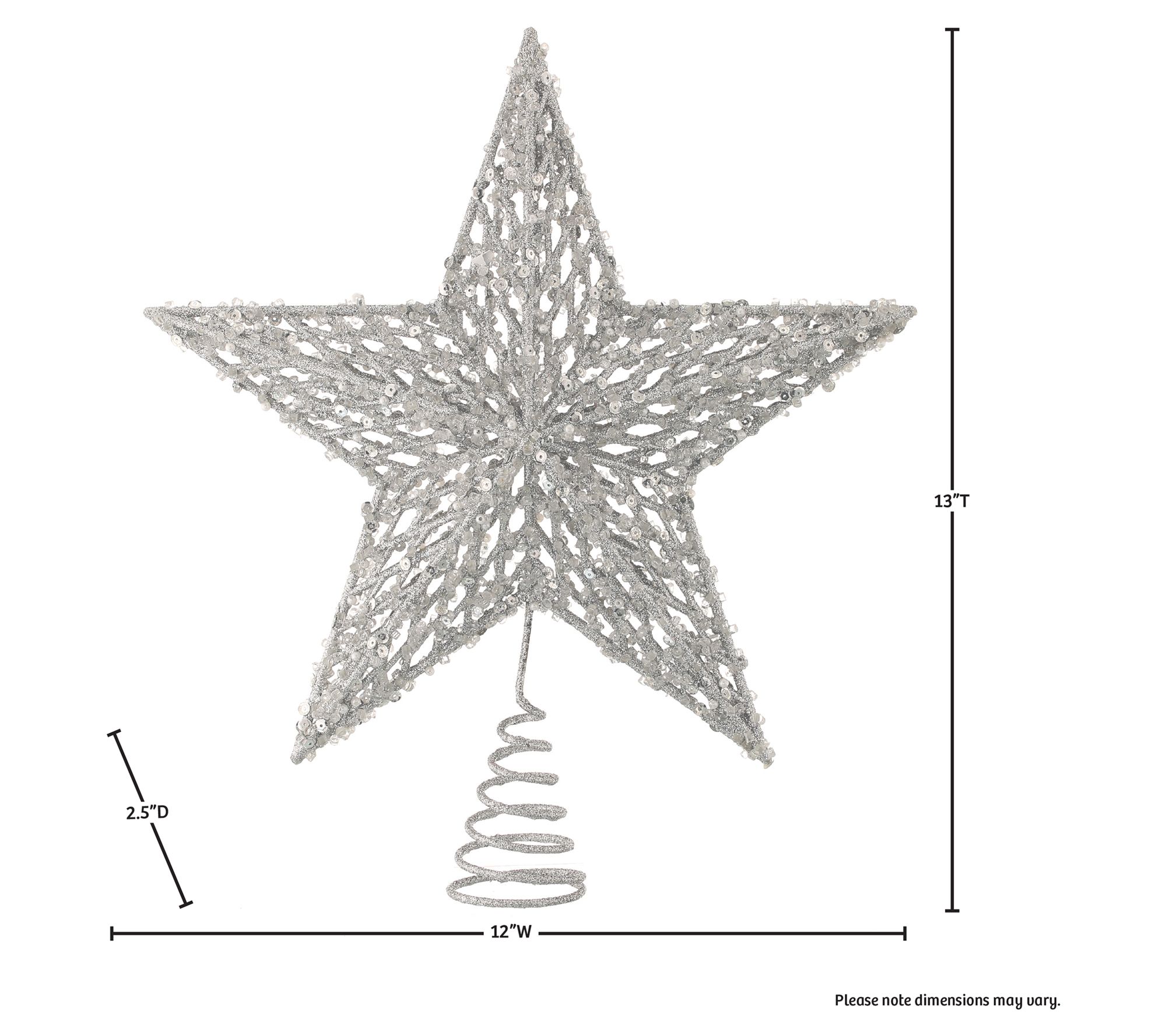 Add a touch of sparkle to your holiday decor with this 13" Tree Topper by Valerie, featuring sequin and beaded detail for a glitzy finish. Perfect for any style, from rustic to modern, it brings the final glamorous touch your Christmas tree needs. From the Valerie Parr Hill Collection.