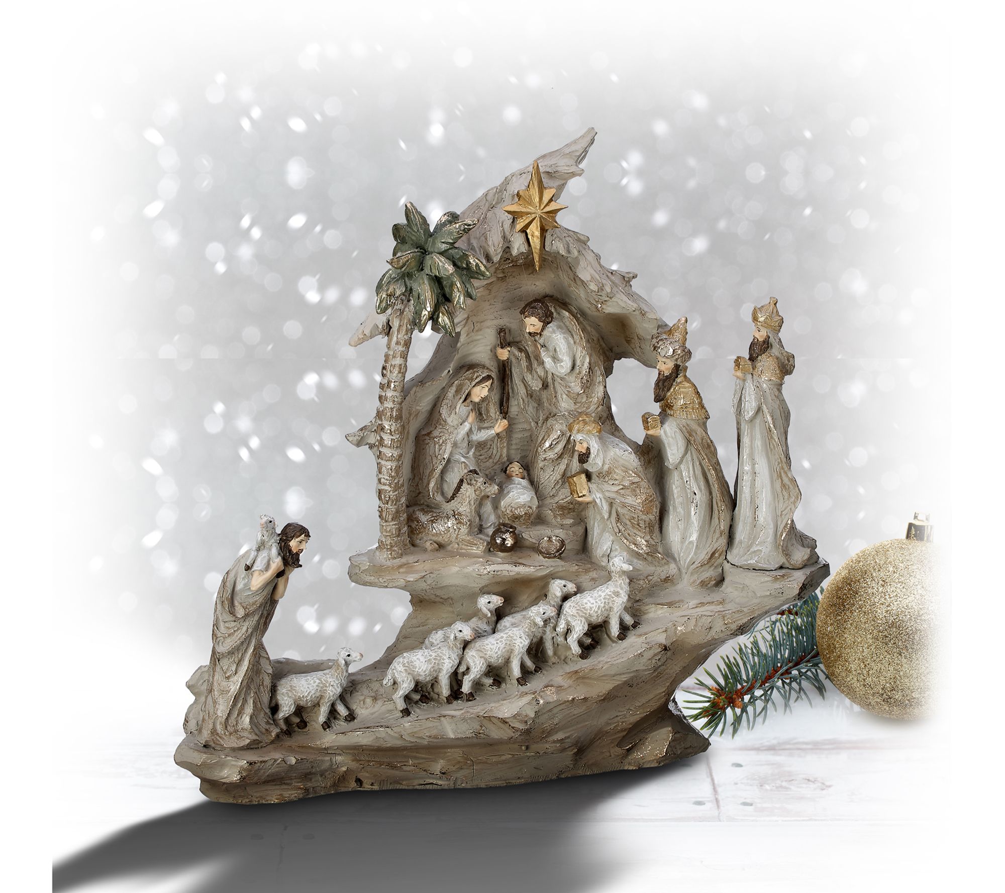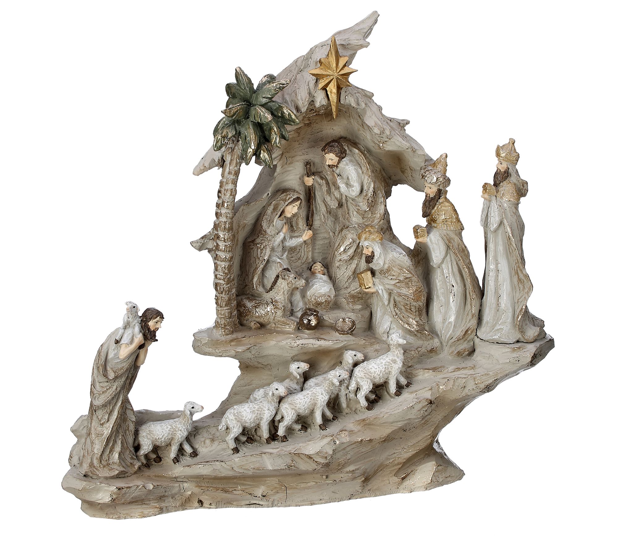 13.5" Stairway Nativity With Sheep Herd by Valerie