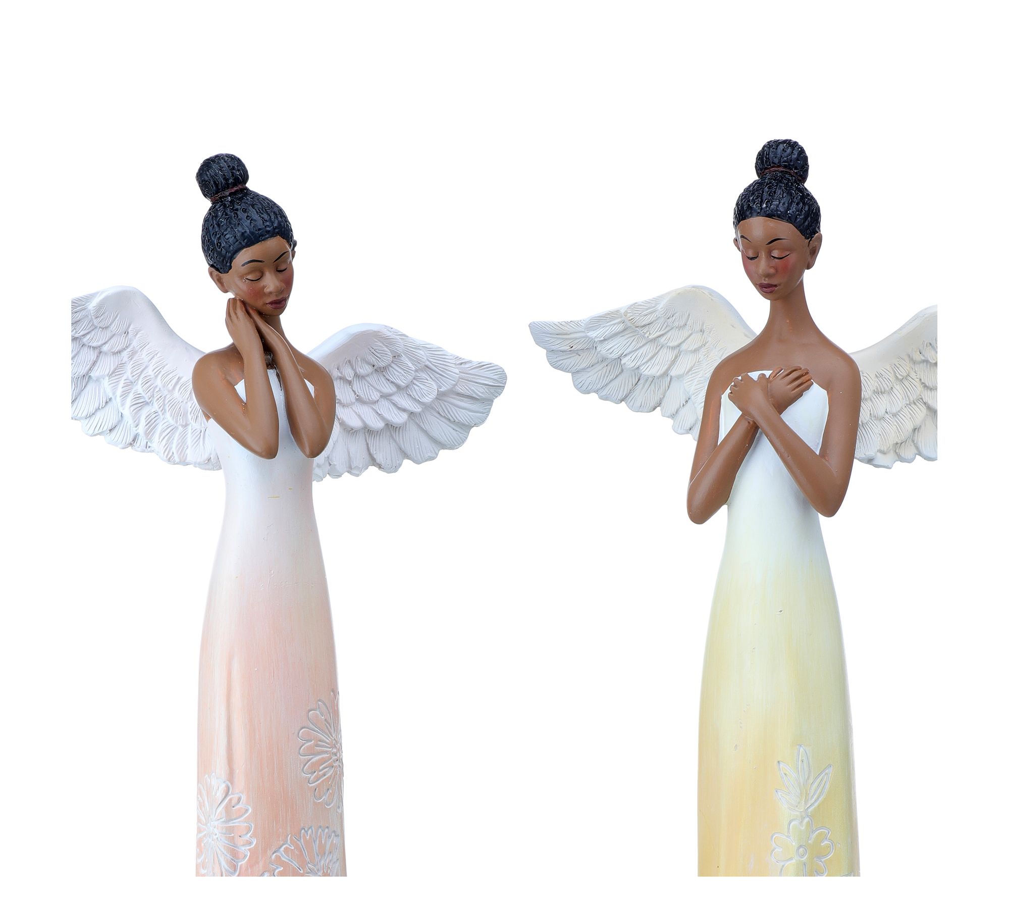 Add serenity to your sanctuary with this pair of graceful garden angels by Valerie. Beautifully crafted in resin with intricate detailing, the figures harmonize perfectly with any setting, adding a sense of peace. Place them near flower beds, along garden paths, or as a patio centerpiece. Or bring them inside to transform any space into a tranquil haven. From the Valerie Parr Hill Collection.