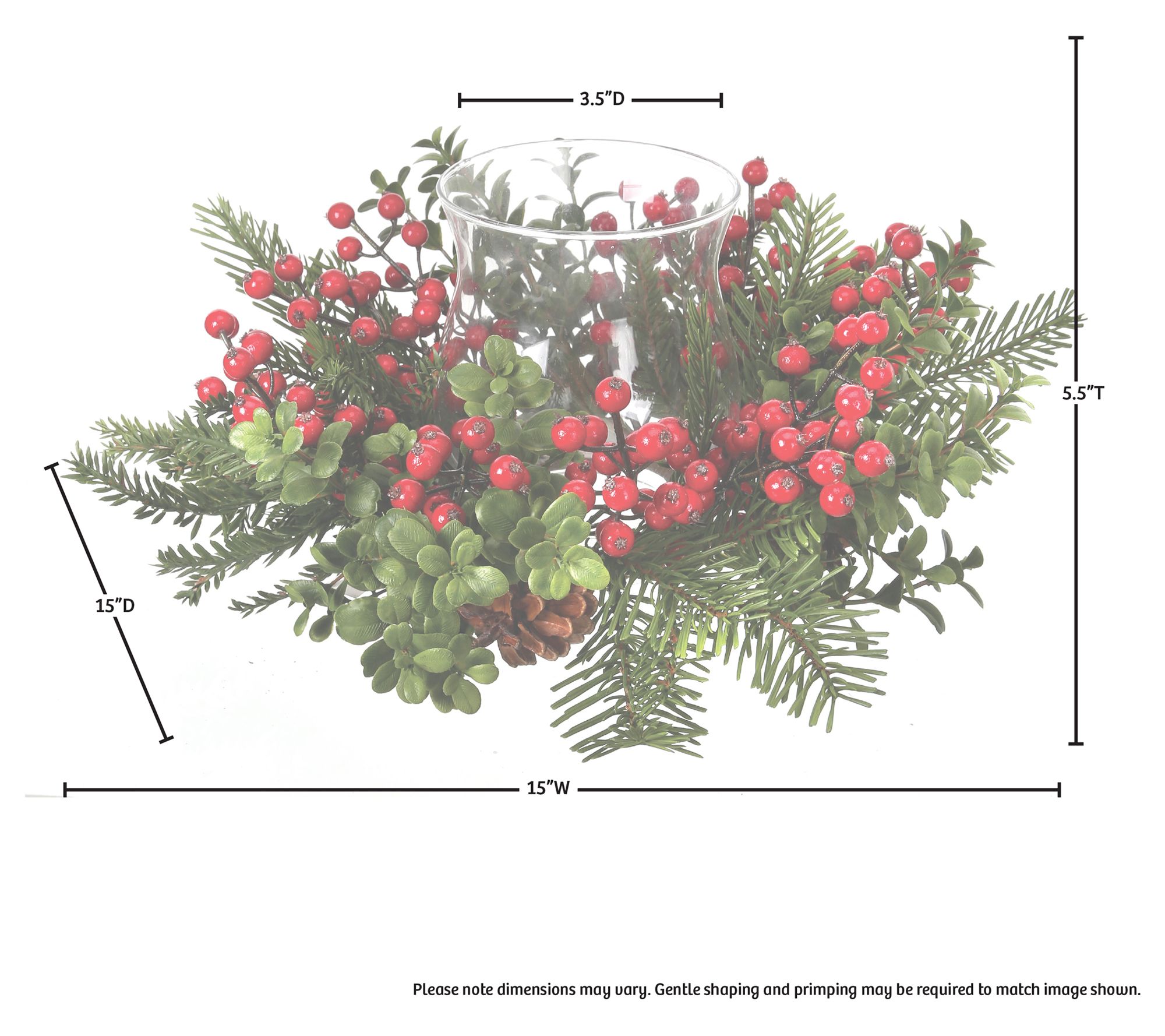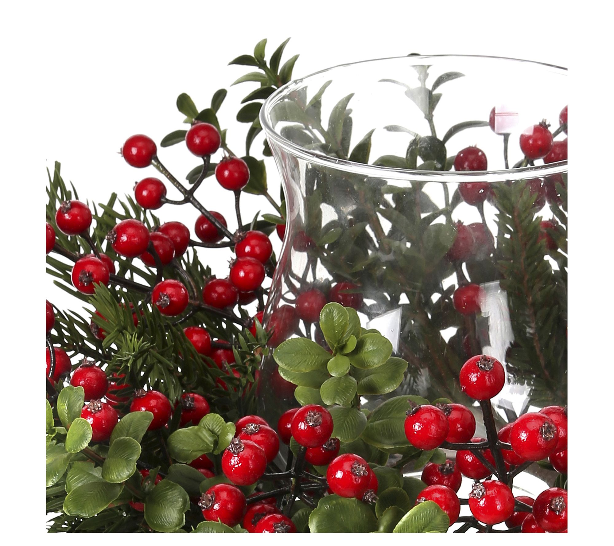14" Waterproof Berry Boxwood Glass Candleholderby Valerie