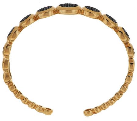 1.40 ct tw Black Spinel Pave' Circle Sterling Hinged Cuff