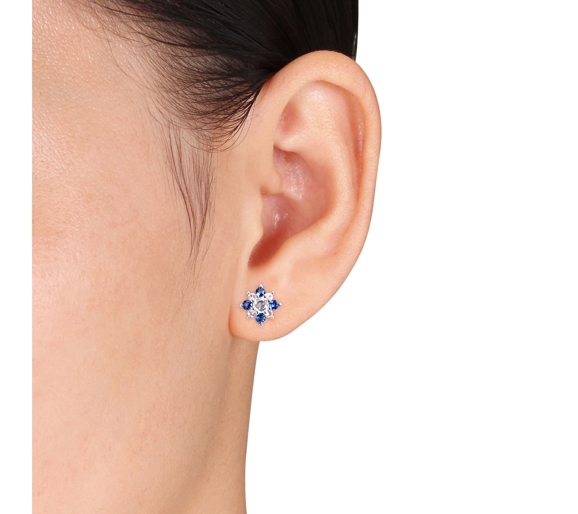 14K 1.55 cttw Blue & White Sapphire Flower Earrings