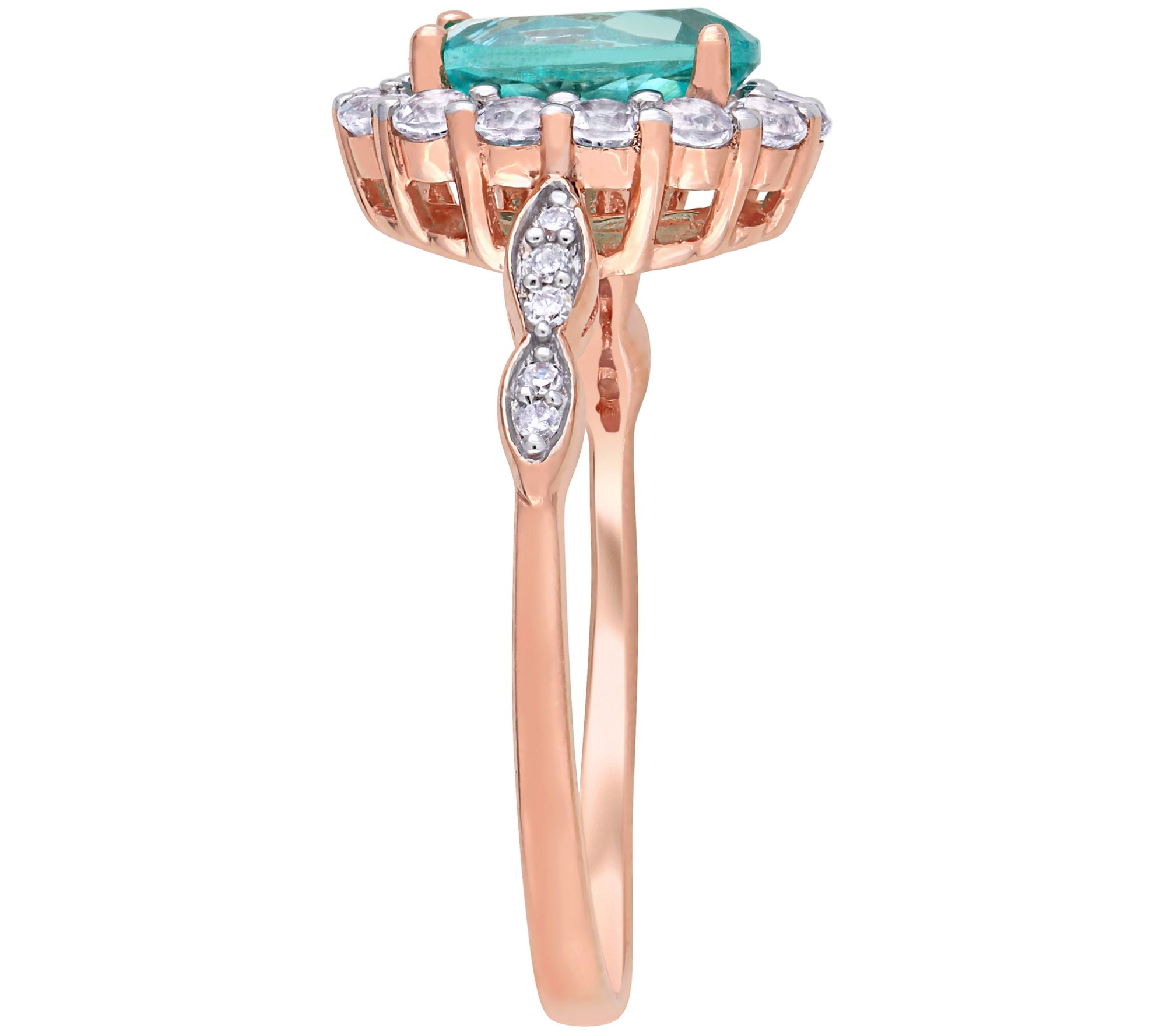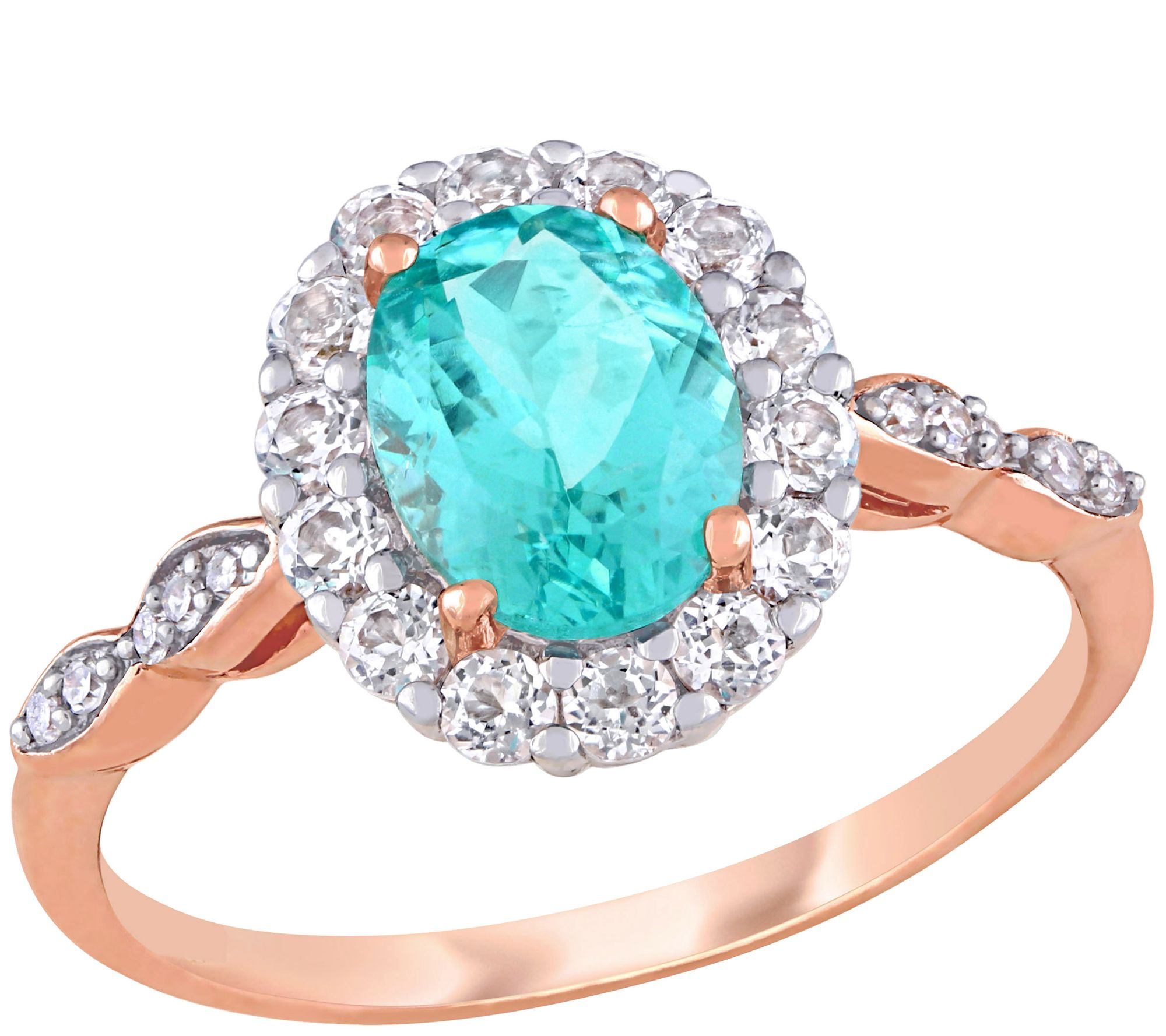 You know you're worth it--and that's why you need to pick up this 14K rose gold ring accented with an oval apatite center and white topaz halo.
