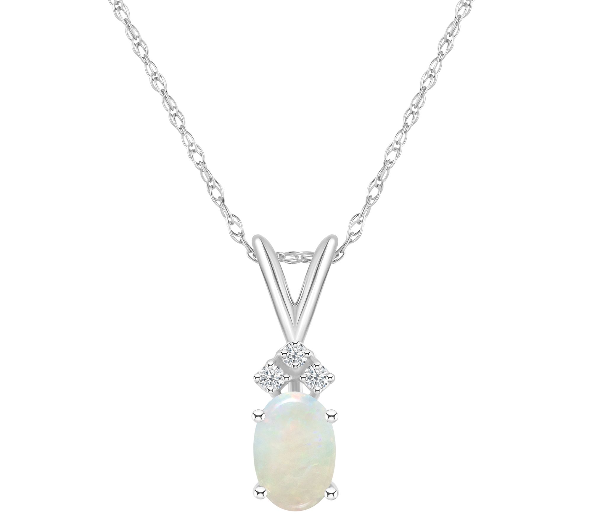 Vibrant color is back! Accessorize everything in your closet with this sparkly diamond-accented opal pendant -- and vibe with the happy hue trend while feeling classic at the same time.