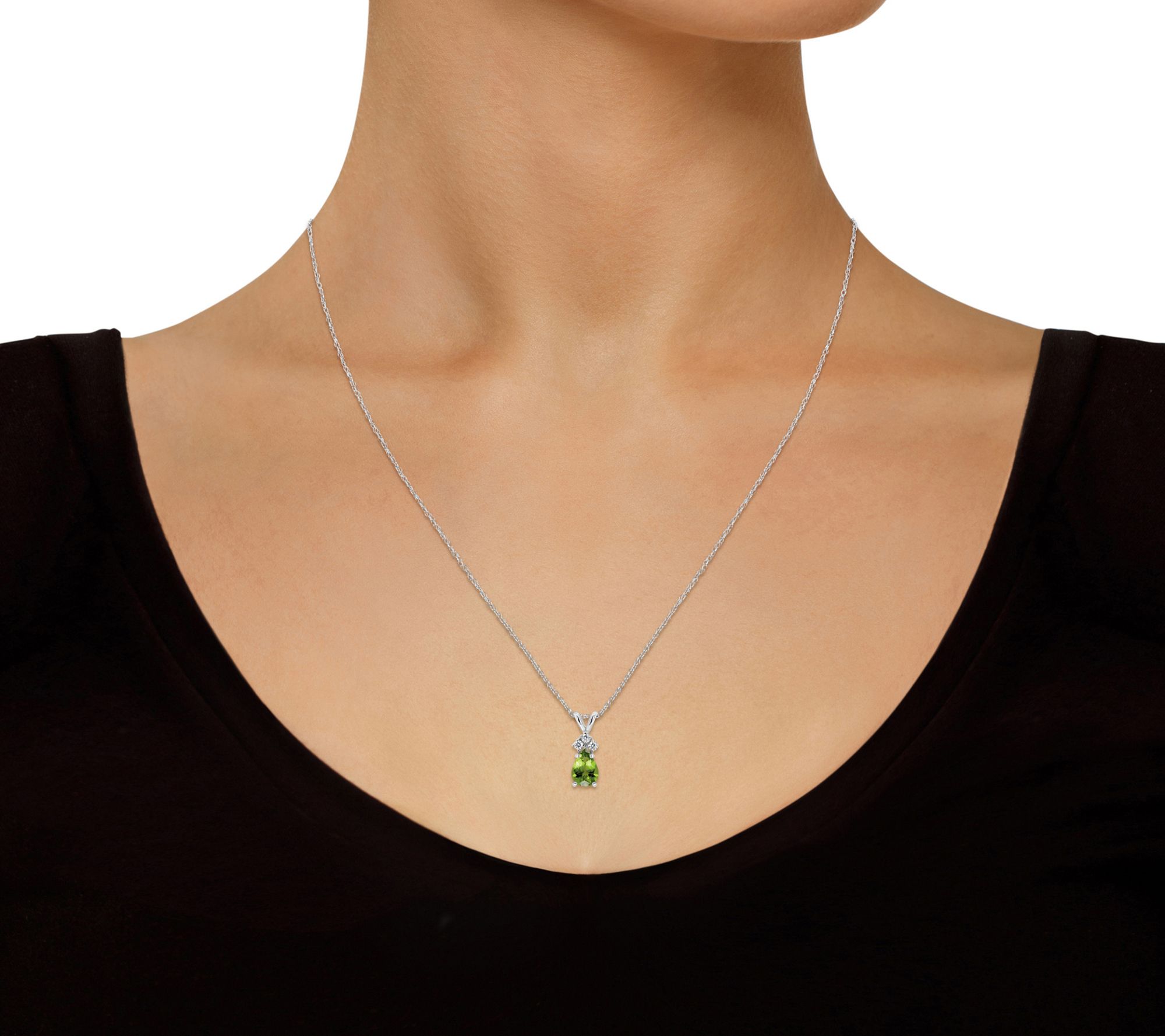 Be it your birthstone, a favorite color, or the dazzling diamond accents that catch your eye, this peridot pendant was meant to be yours. Think of it as a gift to self for a milestone celebration or for just being you.