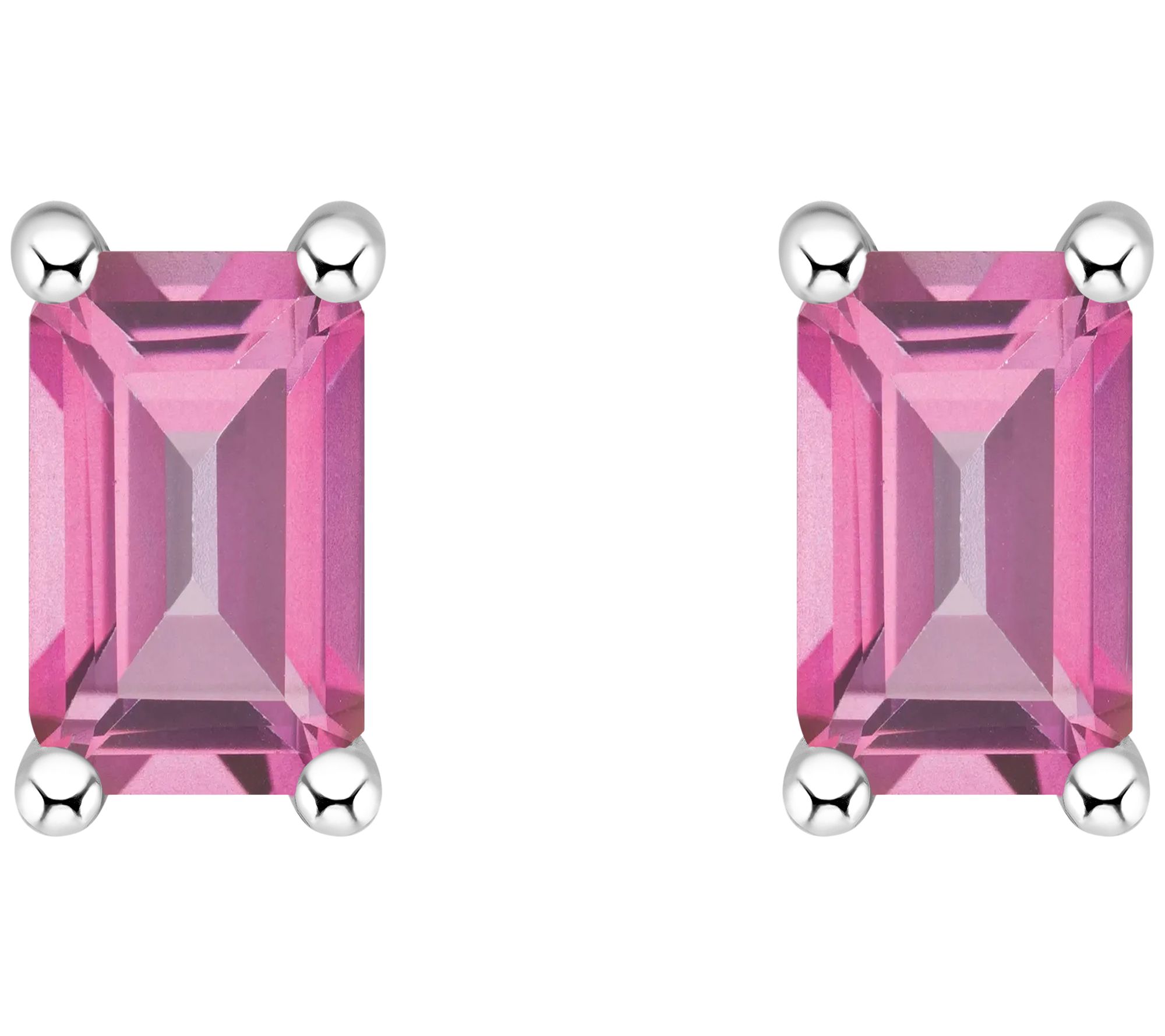 14K Gold Emerald Cut 0.80 cttw Pink Topaz StudEarrings