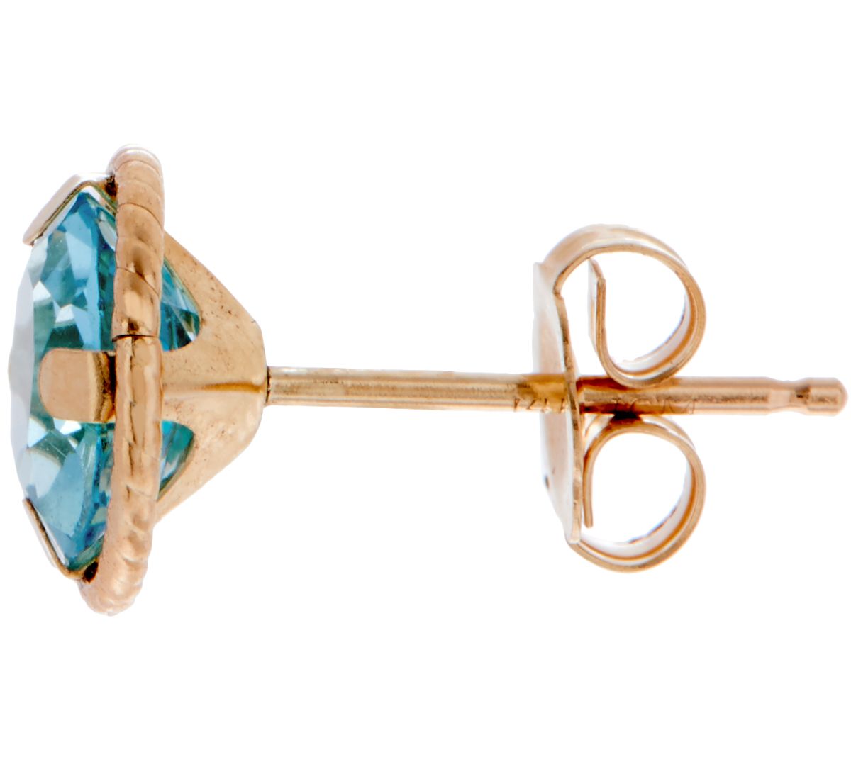 • Prong-set, martini-style studs with gemstone and rope border bezel