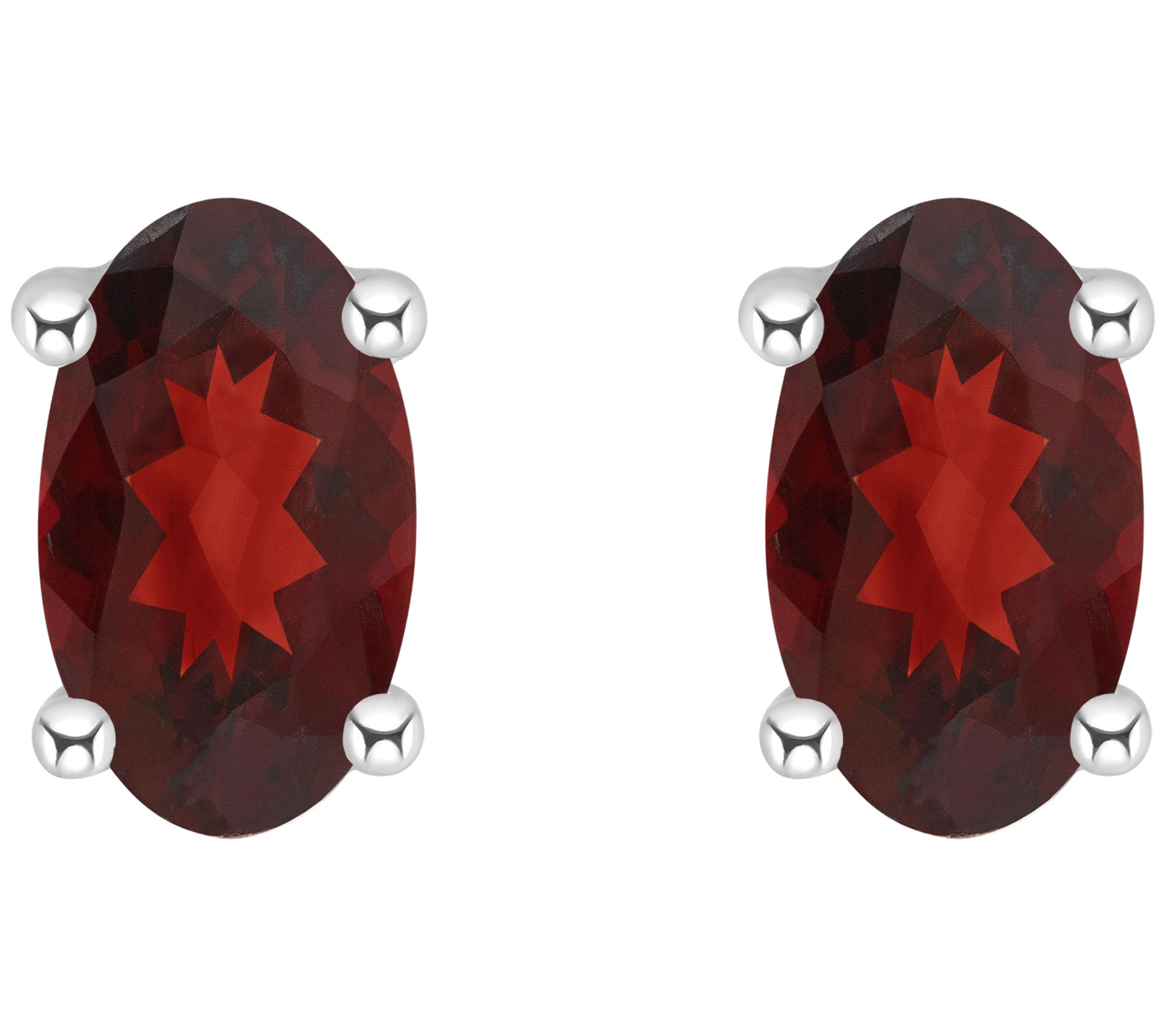 The elongated oval cut of these striking garnet stud earrings lends a simple sophistication to any look.