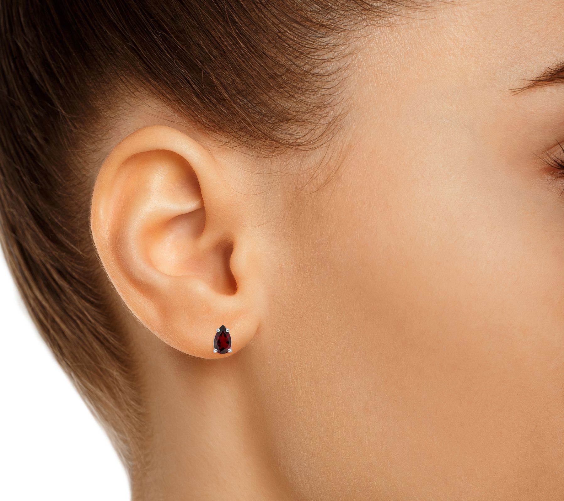 Give your look a petite pop of color with these pear-shaped garnet stud earrings.